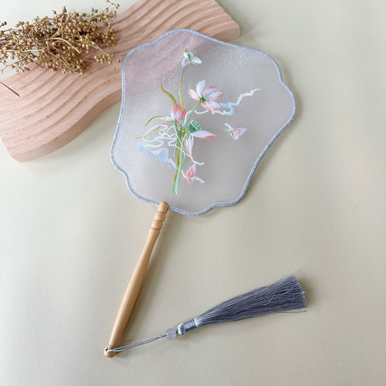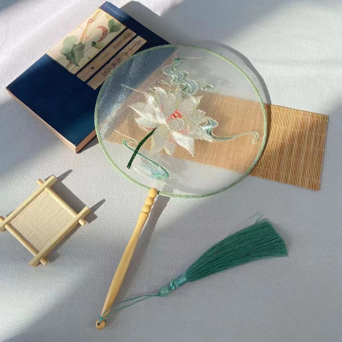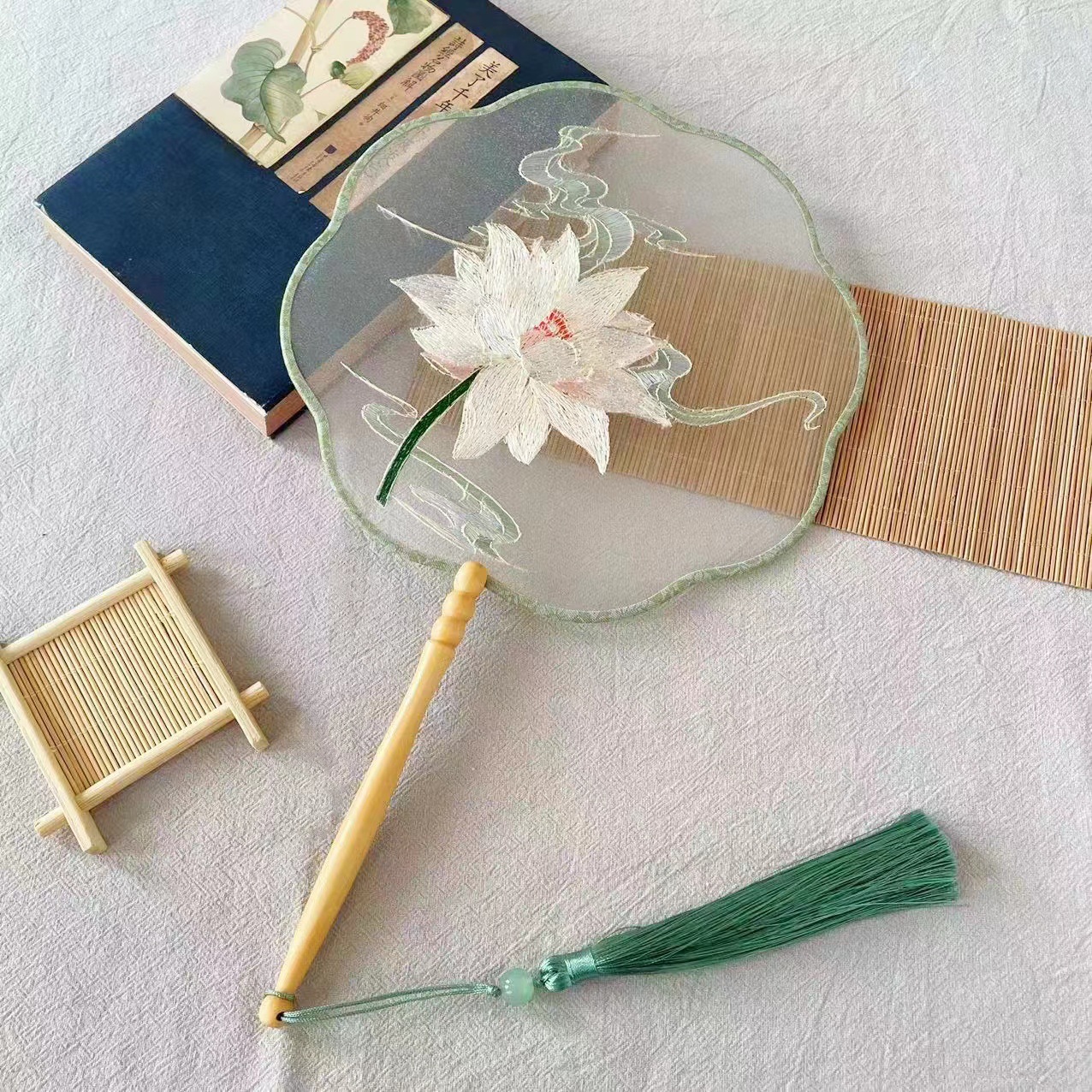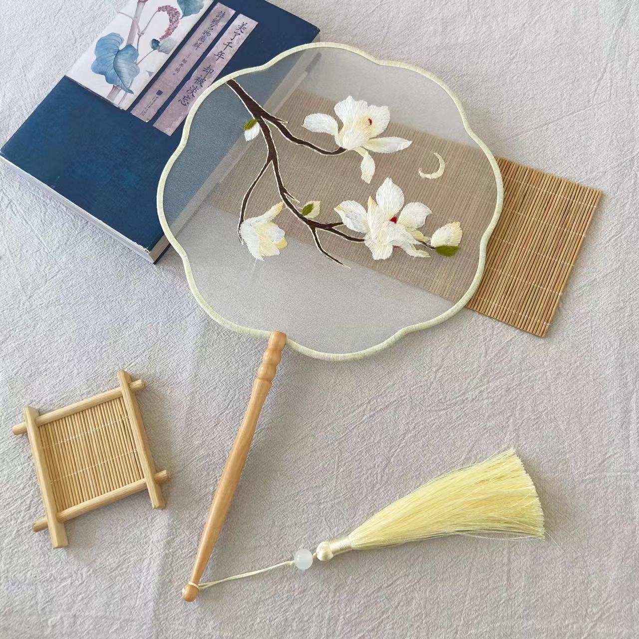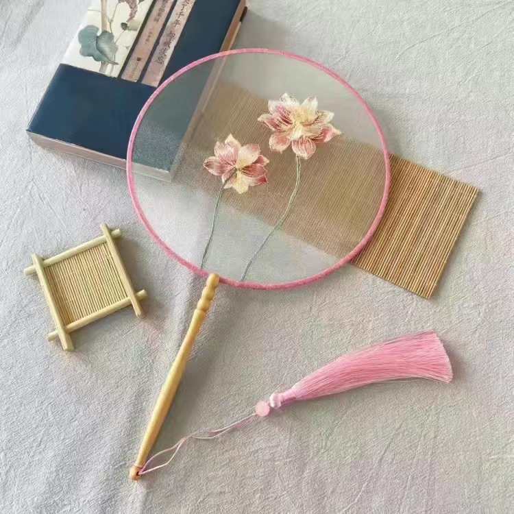 团扇刺绣古风圆扇中国风汉服古典长柄摄影扇旗袍夏季仙鹤舞蹈扇子
