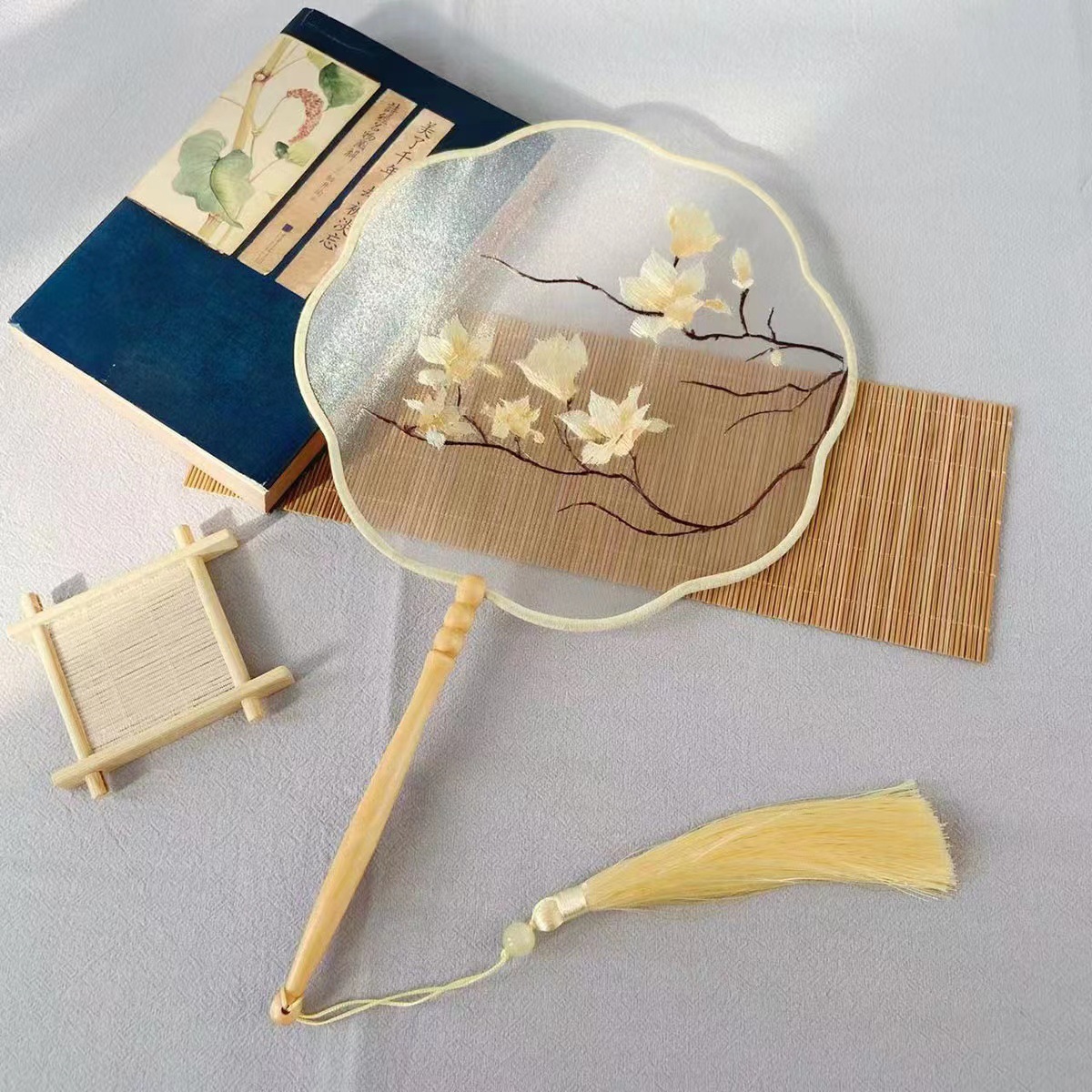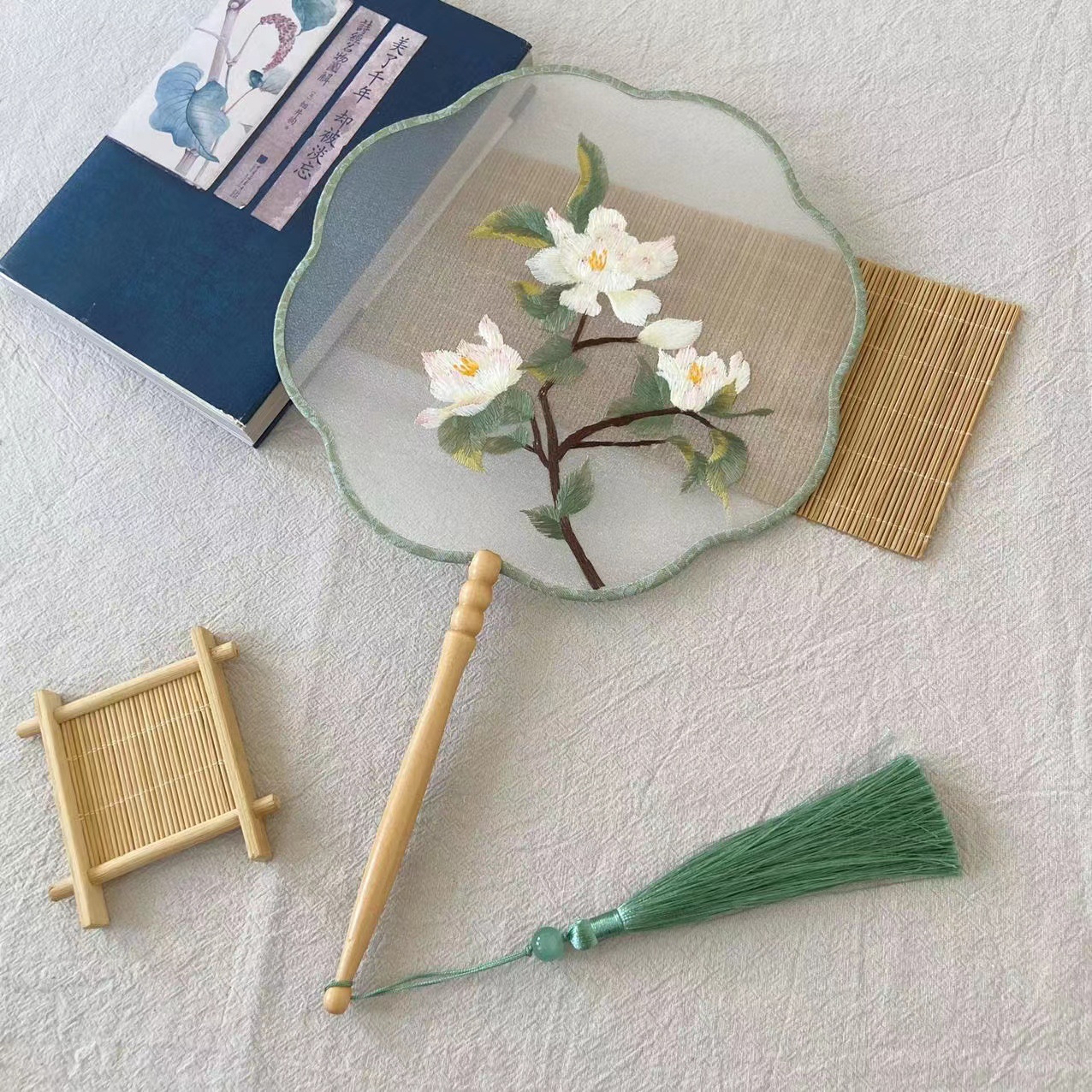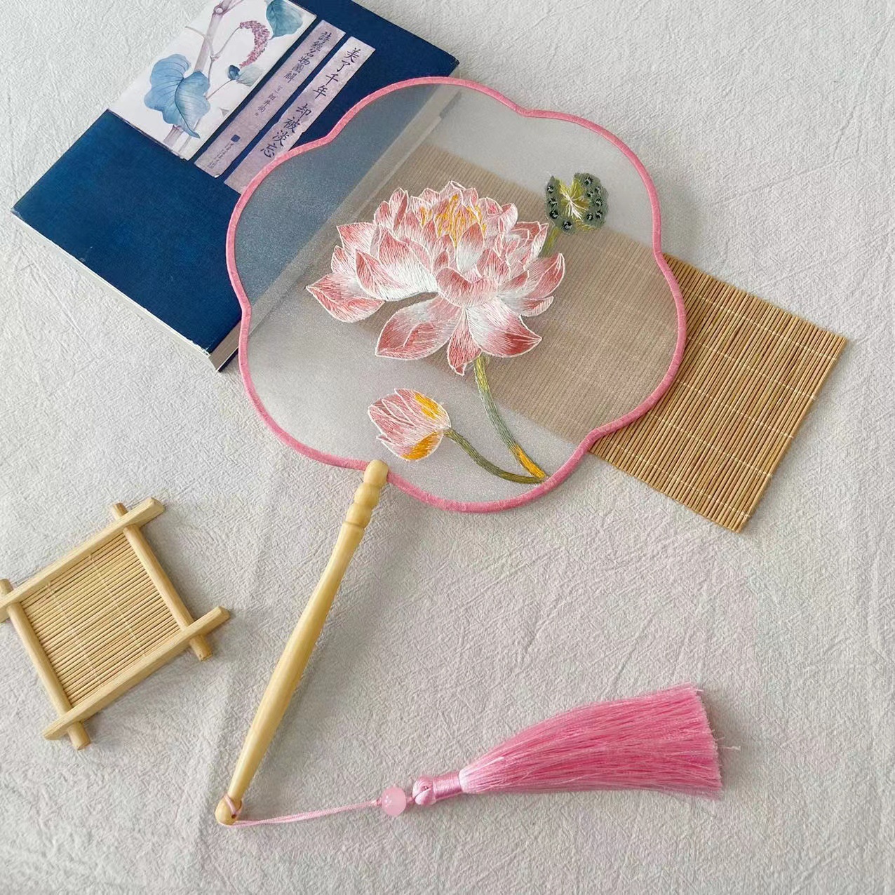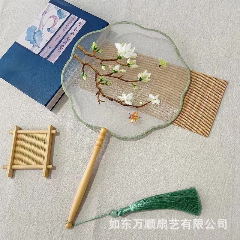 团扇刺绣古风圆扇中国风汉服古典长柄摄影扇旗袍夏季仙鹤舞蹈扇子