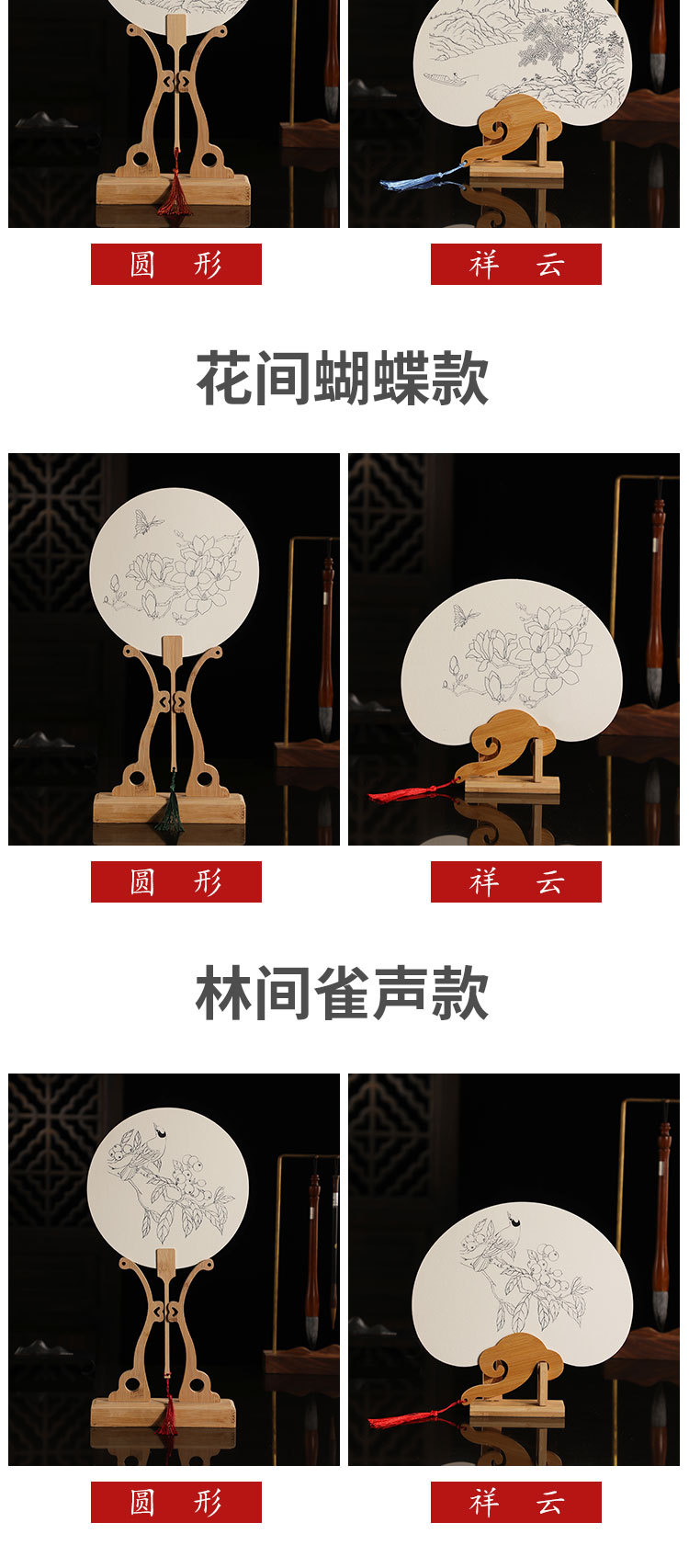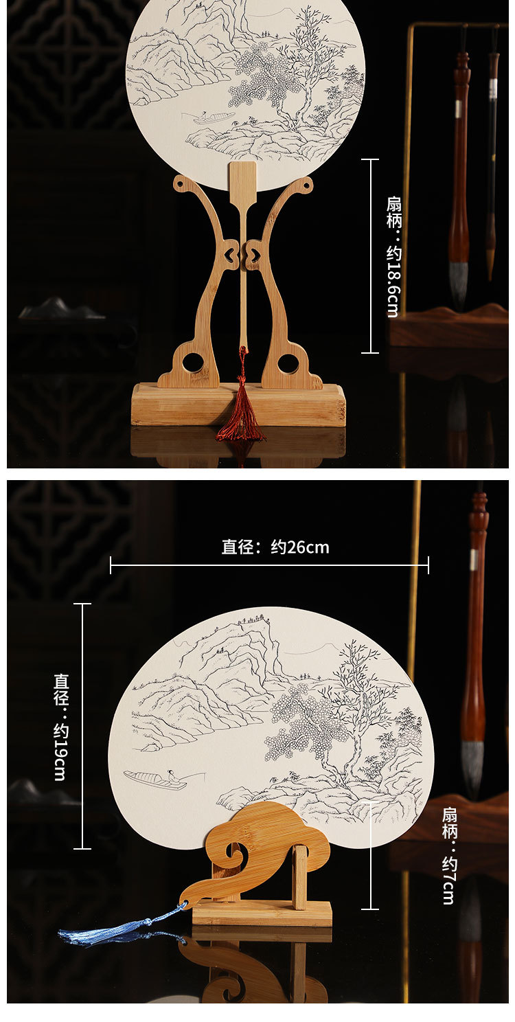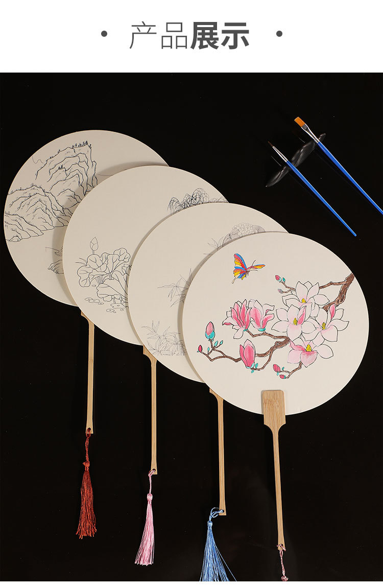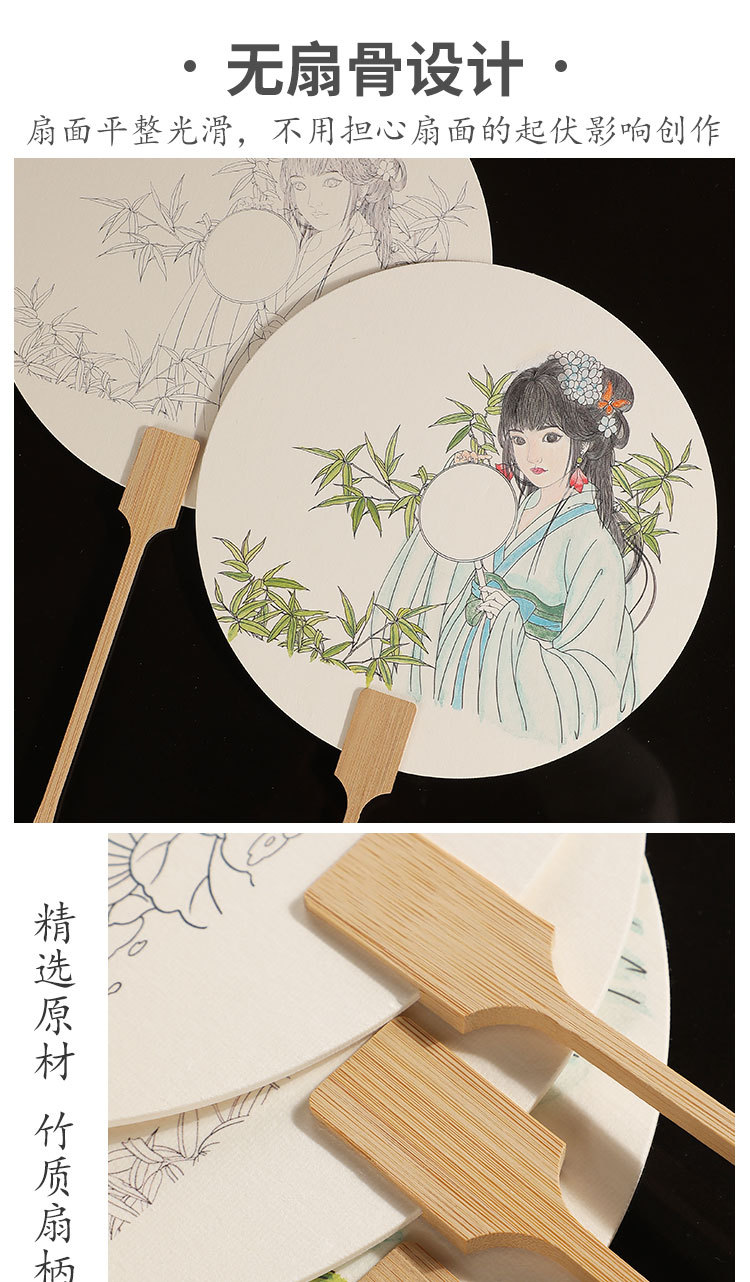 卿暮线稿填色古风团扇亲子活动diy空白手绘中国风国画纸扇子批发