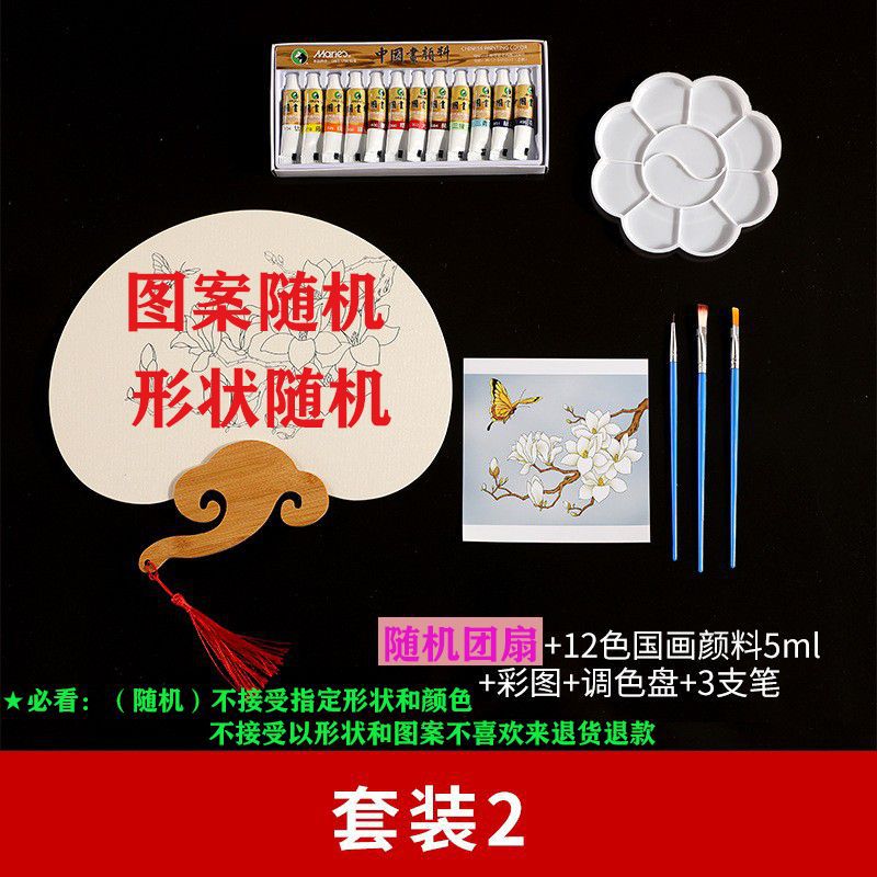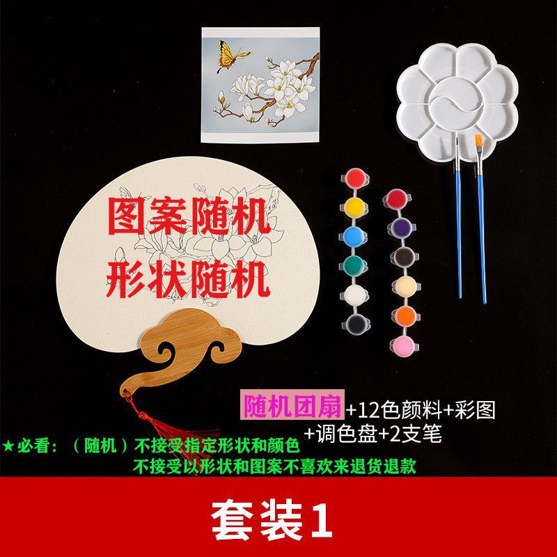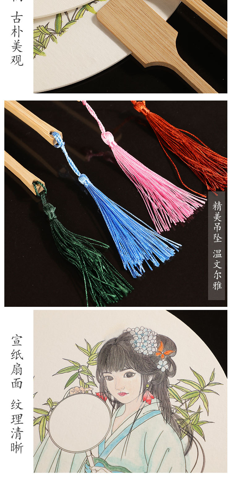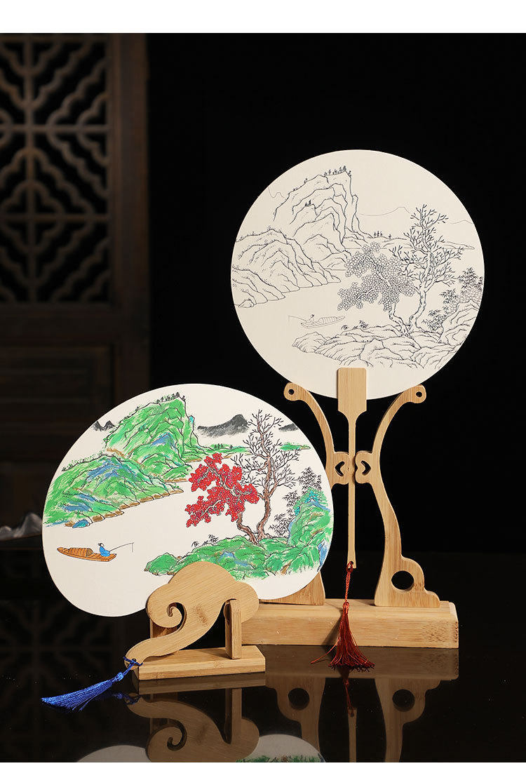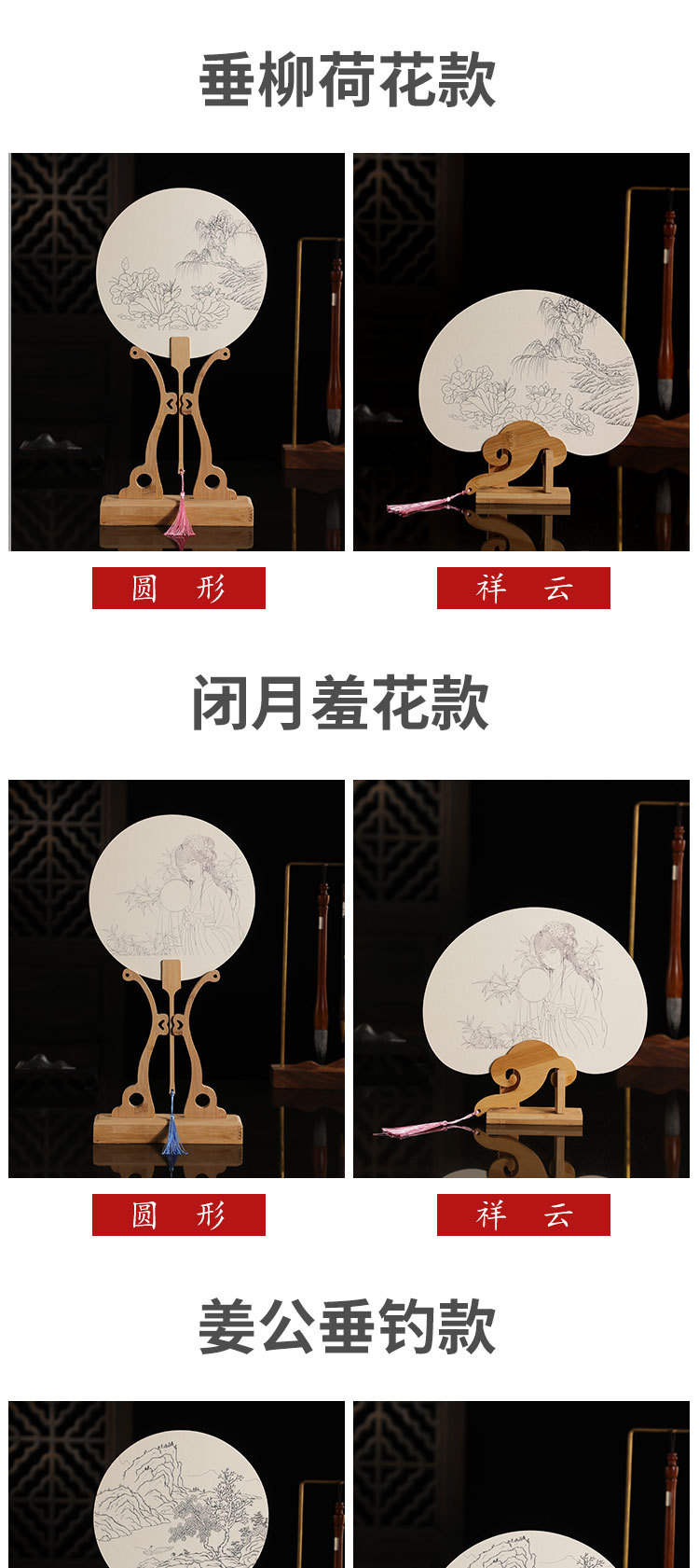 卿暮线稿填色古风团扇亲子活动diy空白手绘中国风国画纸扇子批发