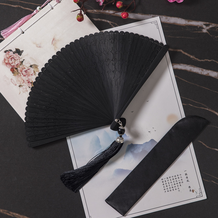 中国风全竹古典扇子女士日式古风古典黑折扇竹扇汉服舞蹈扇随身易