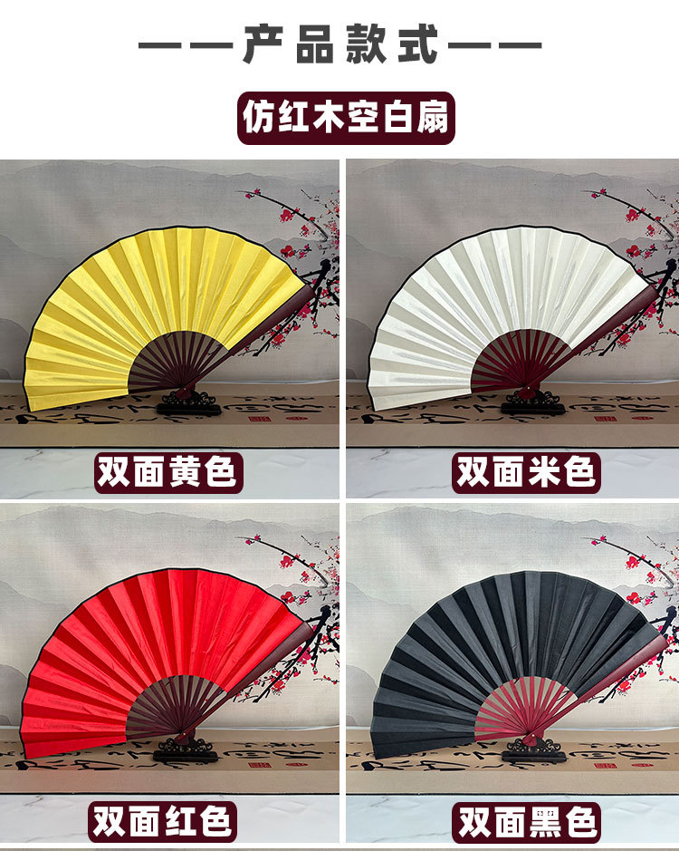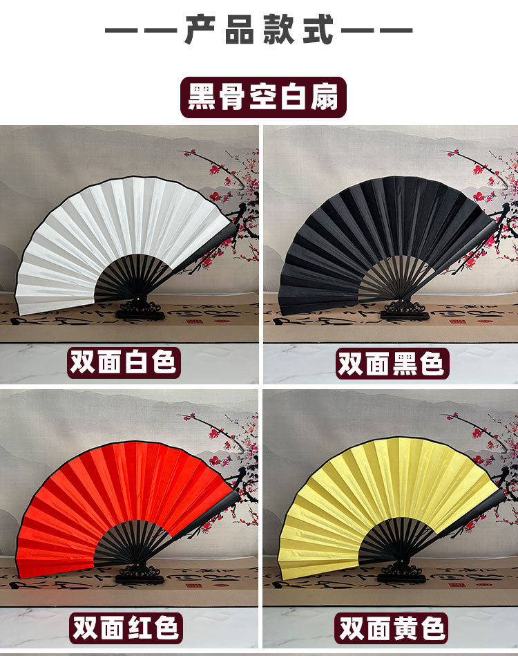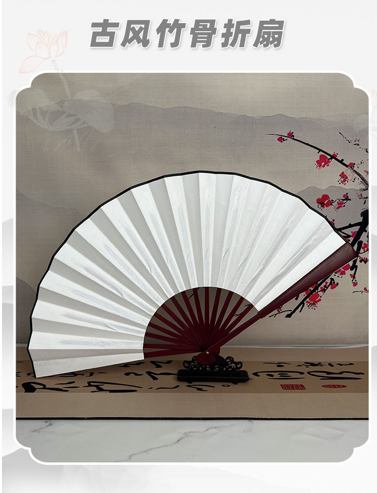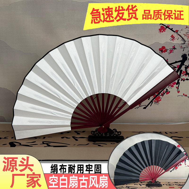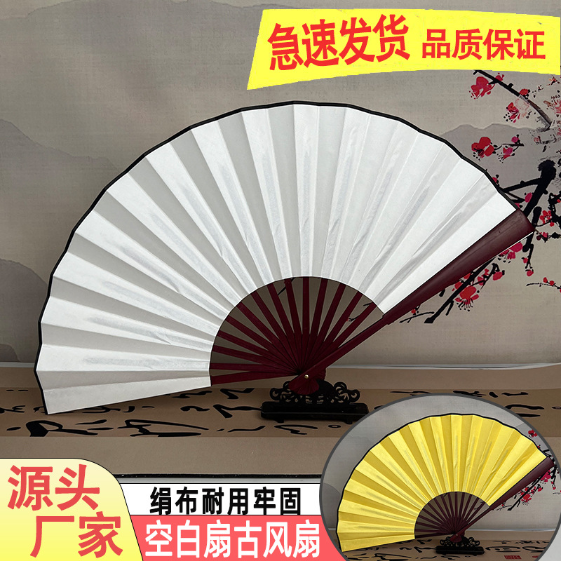 中国风古风折扇空白扇子绘画绢布可作画素面纯白手写写字扇子批发