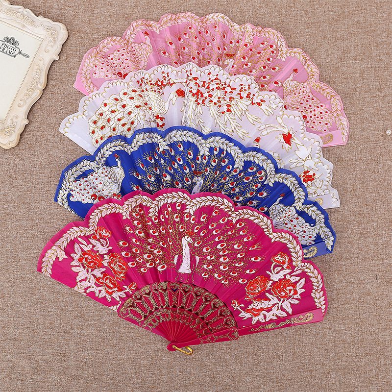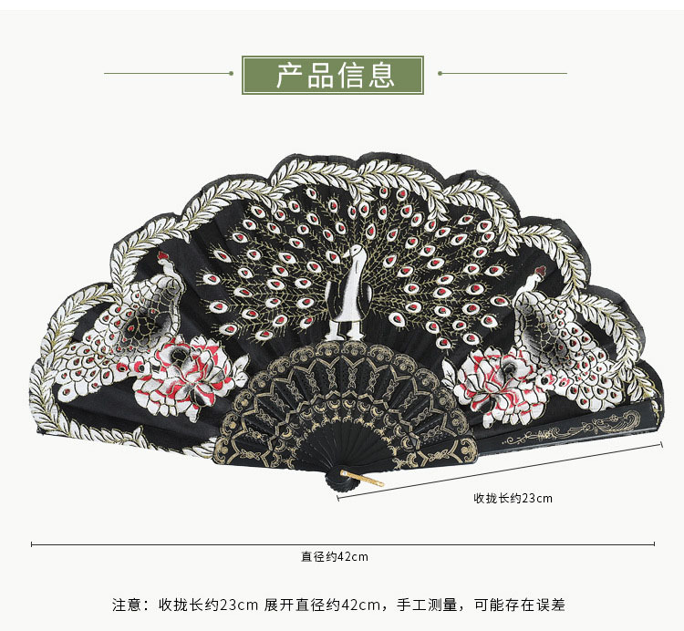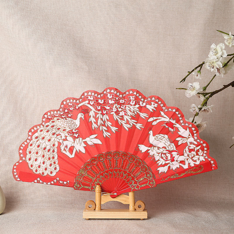 厂家直供孔雀扇子中国风工艺折叠扇古风女士旗袍舞蹈扇现货批发