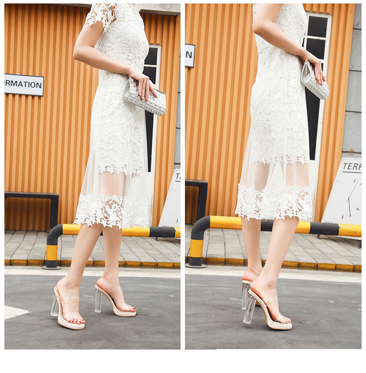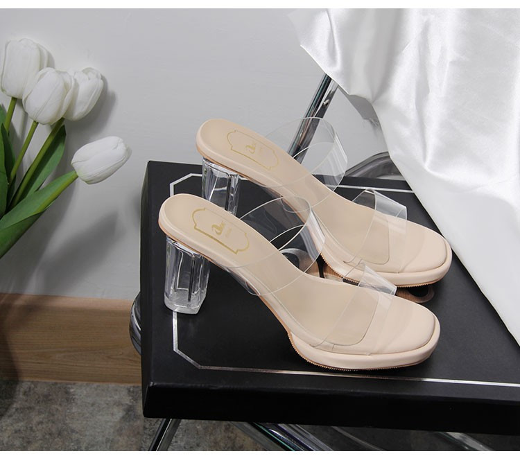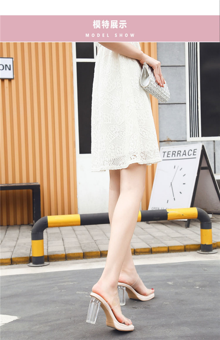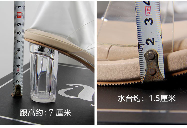 高跟鞋女2024夏季新款防水台一字带不累脚粗跟水晶拖鞋女凉鞋女鞋