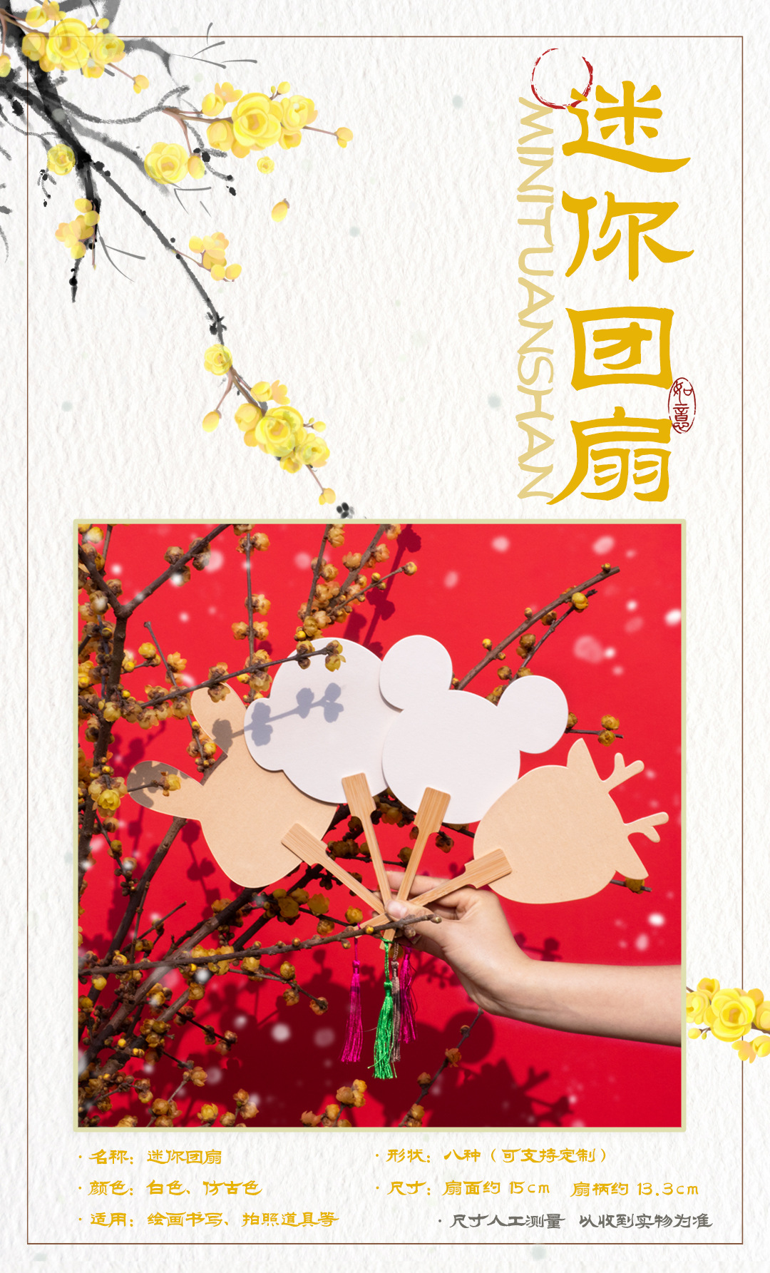 迷你团扇小号非遗漆扇diy双面空白漂漆手绘复古古风宣纸大漆扇子