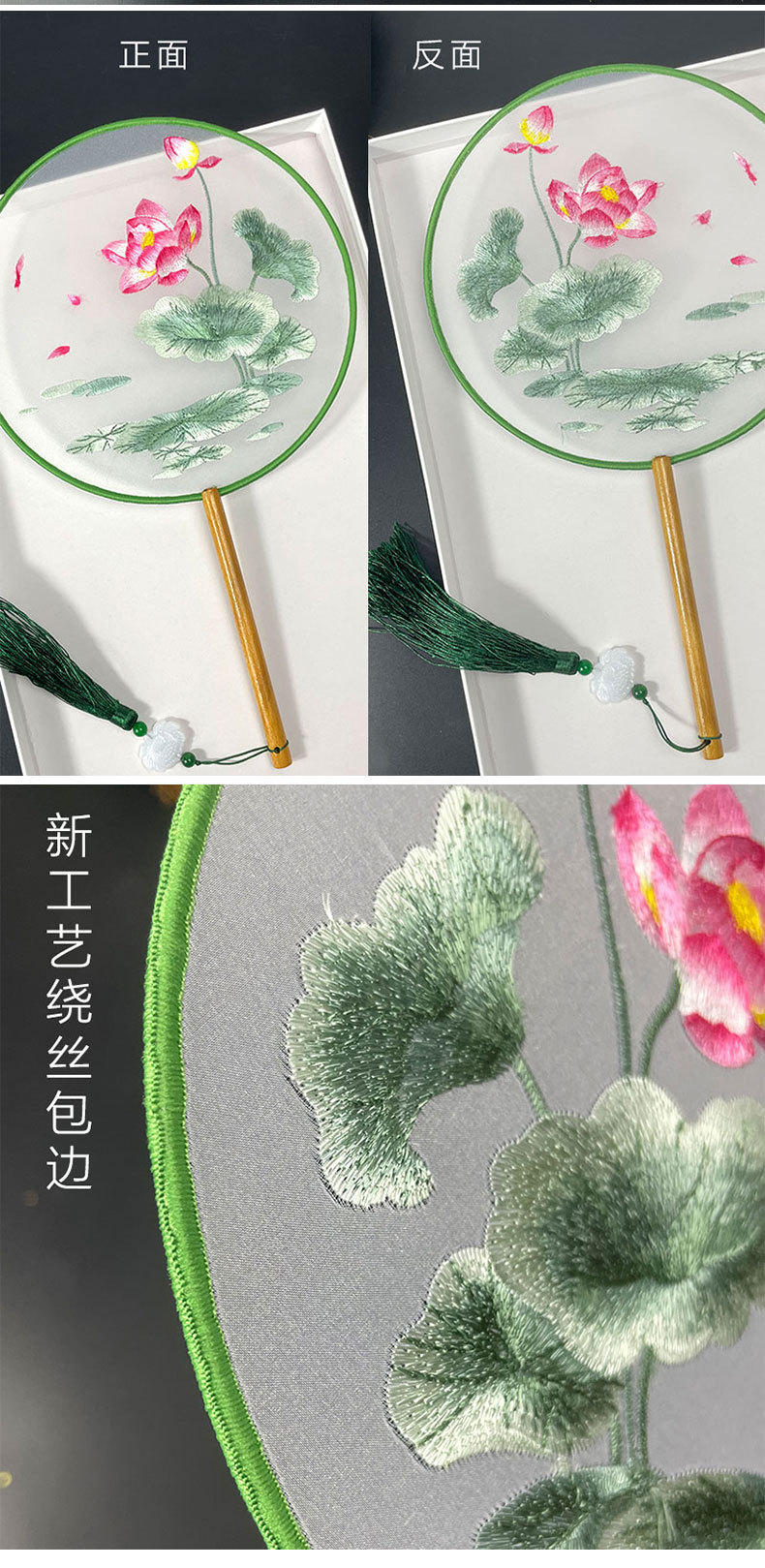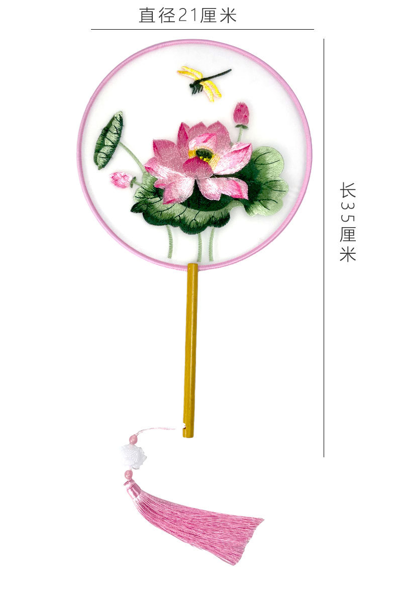 古风双面刺绣团扇仿真丝半透绣花宫廷扇子旗袍汉服拍照舞蹈扇宫扇