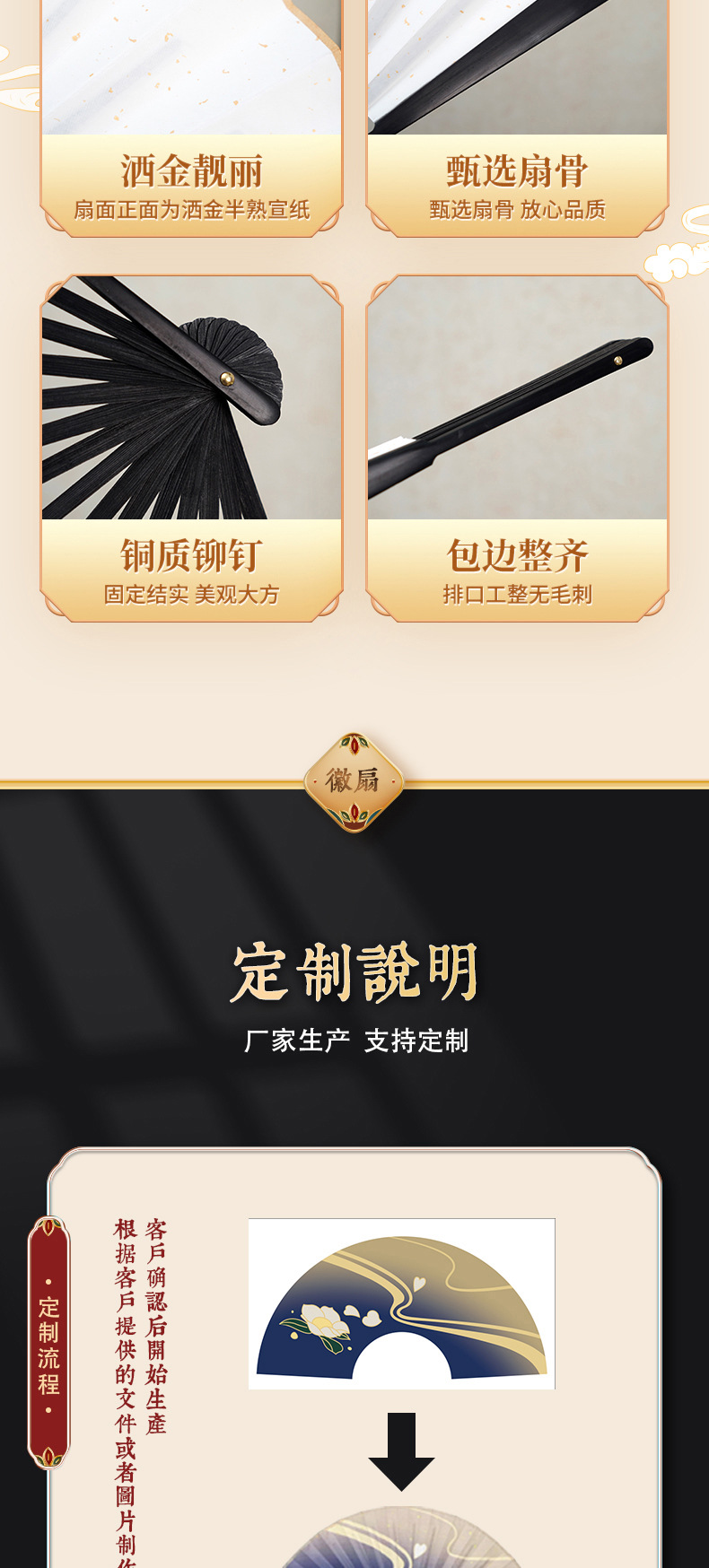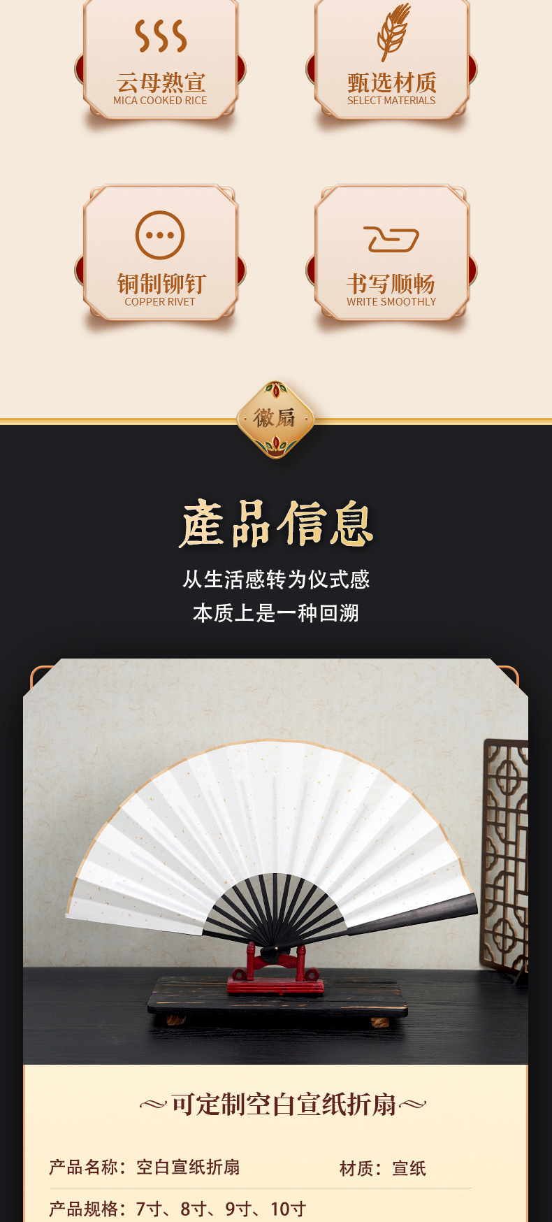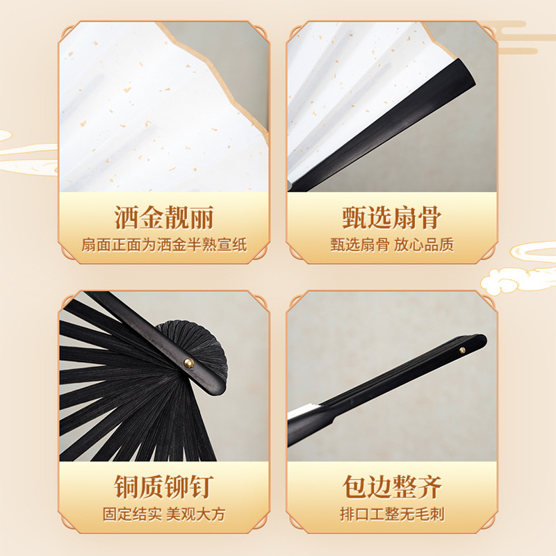 8寸9寸10寸宣纸折扇定制空白宣纸洒金广告扇子题字绘画古风折扇
