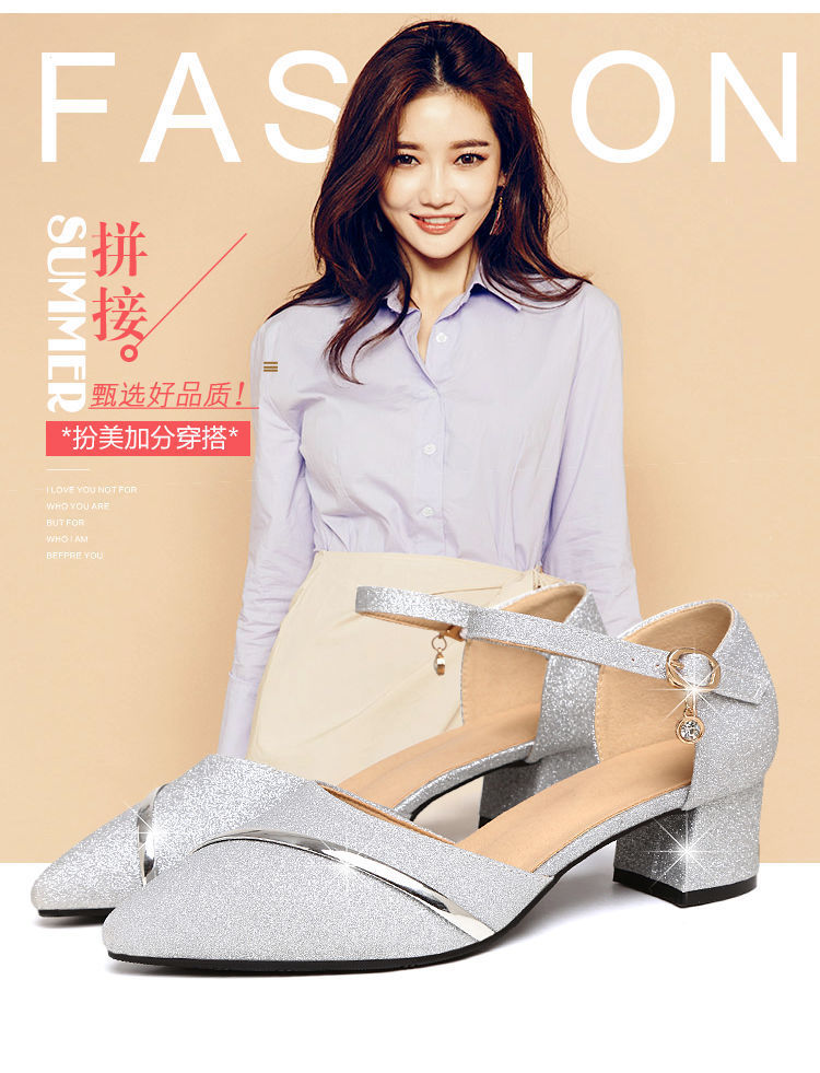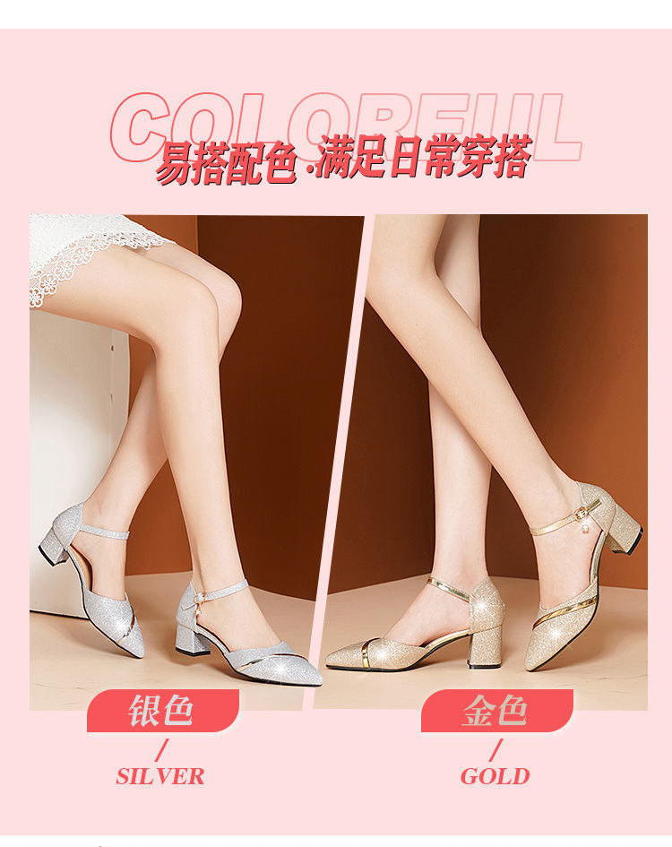边贸高跟单鞋女2023新款夏季包头中空粗跟一字扣带高跟凉鞋女批发