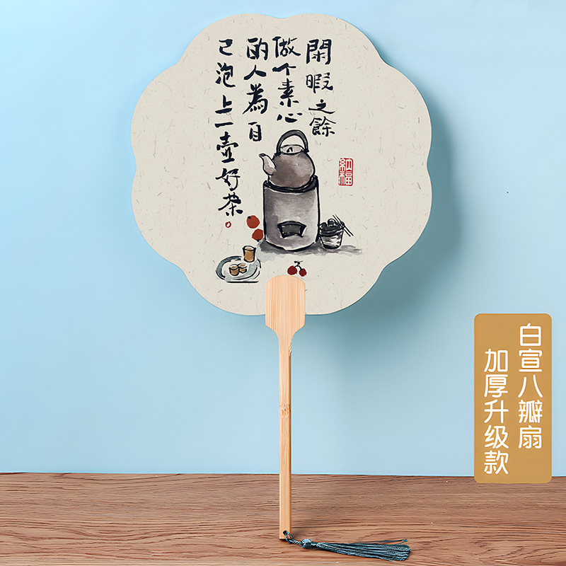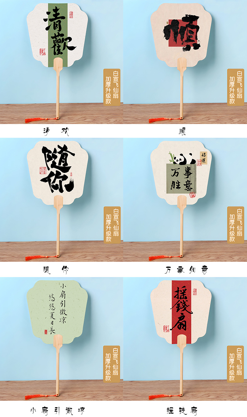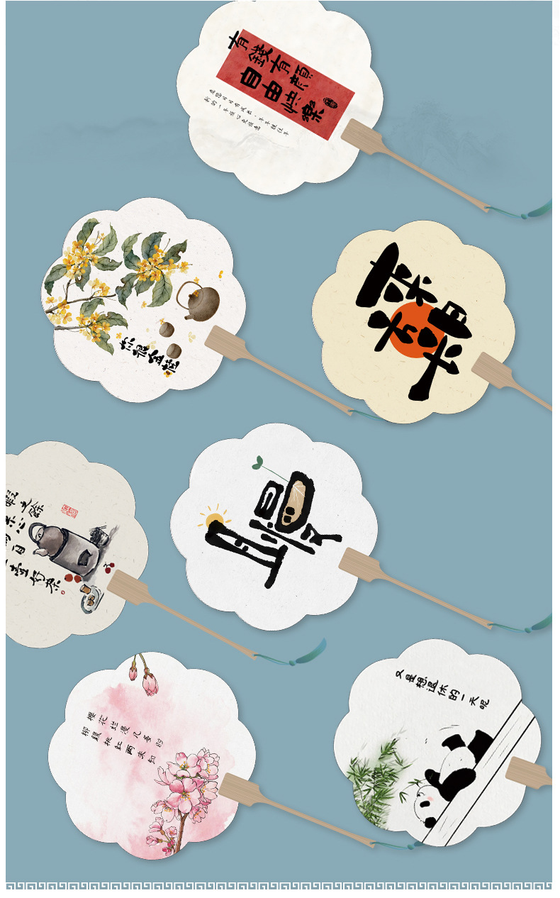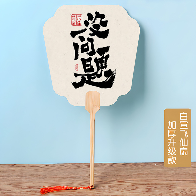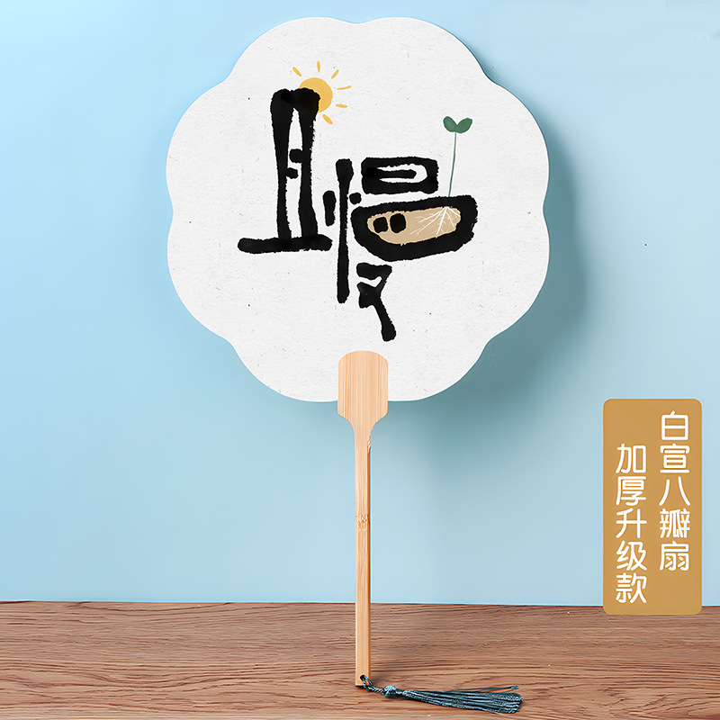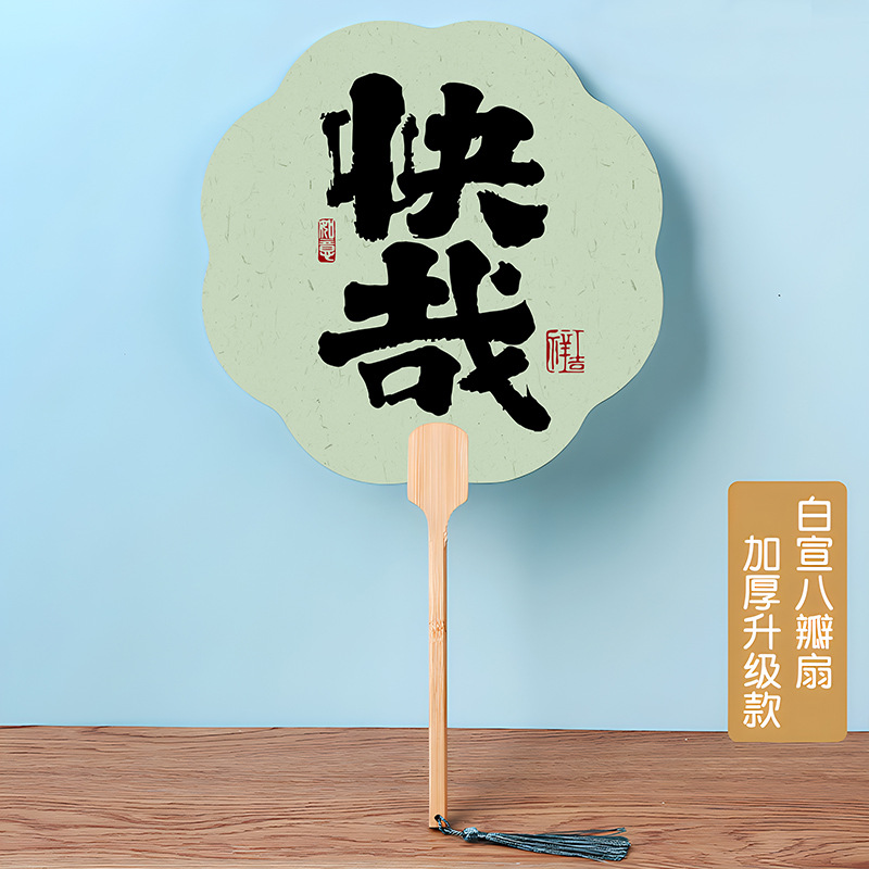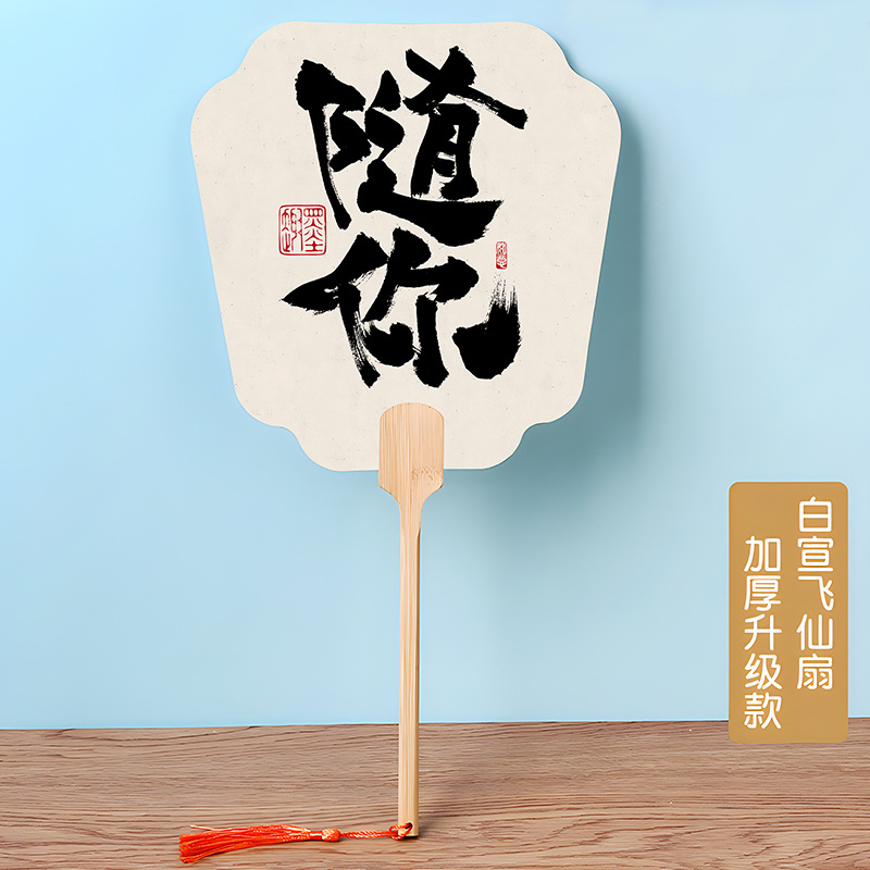 国潮创意书法古风团扇 毛笔文艺扇子中国风楠竹文创宣纸团扇定 制