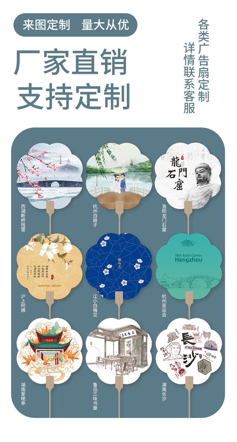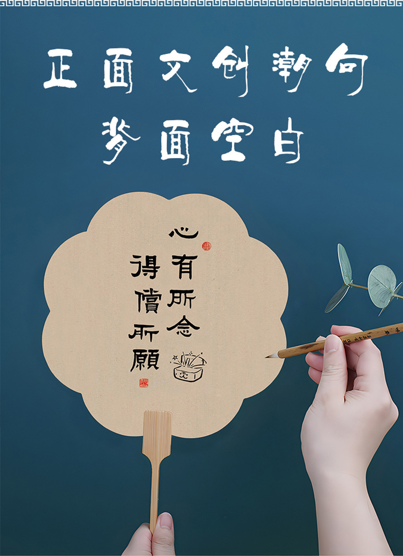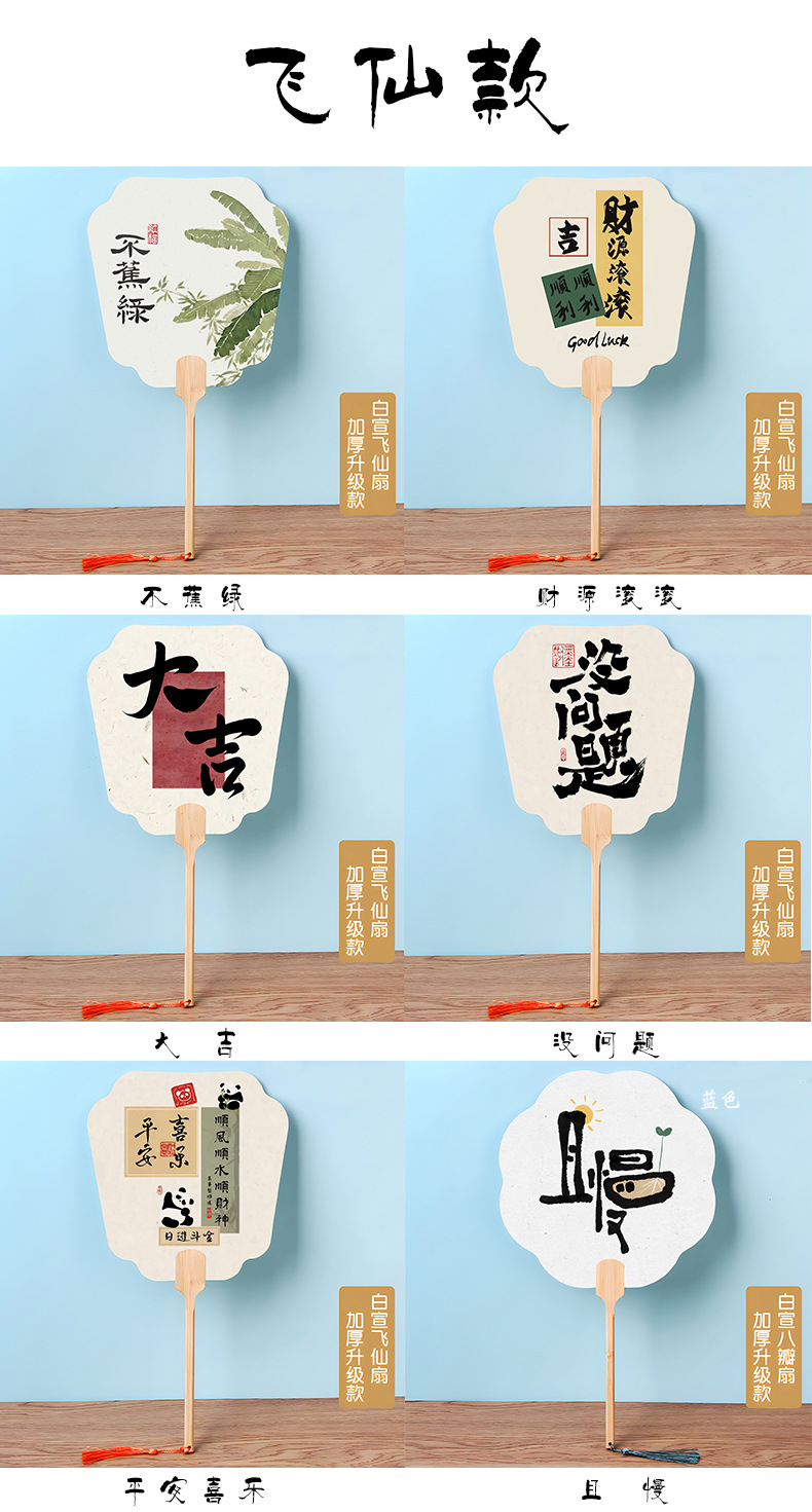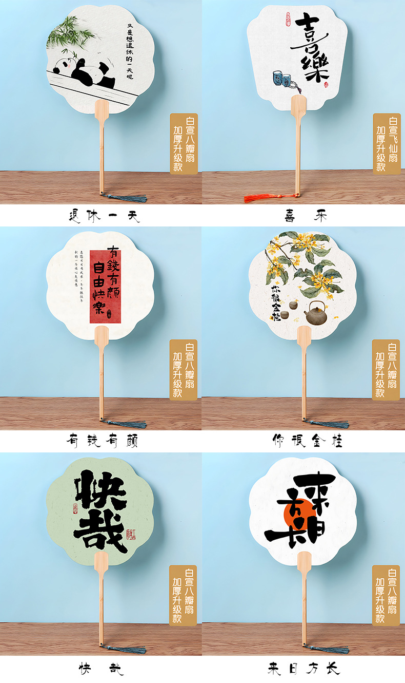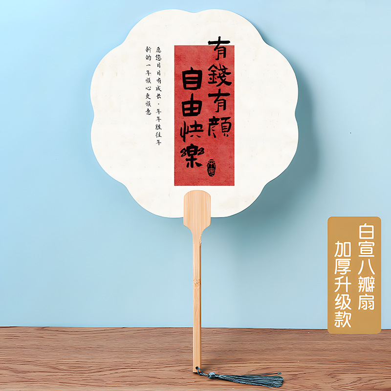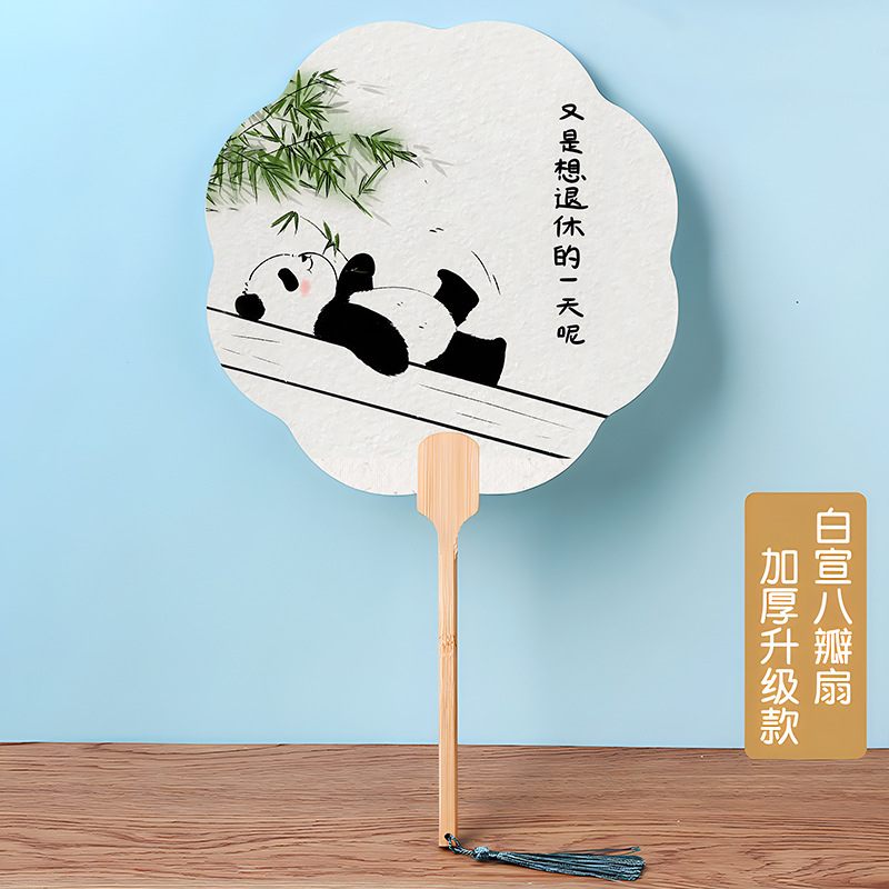国潮创意书法古风团扇 毛笔文艺扇子中国风楠竹文创宣纸团扇定 制