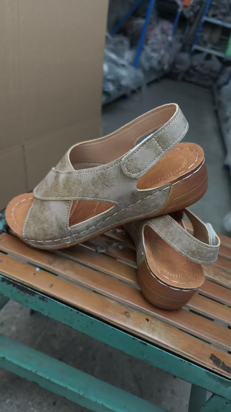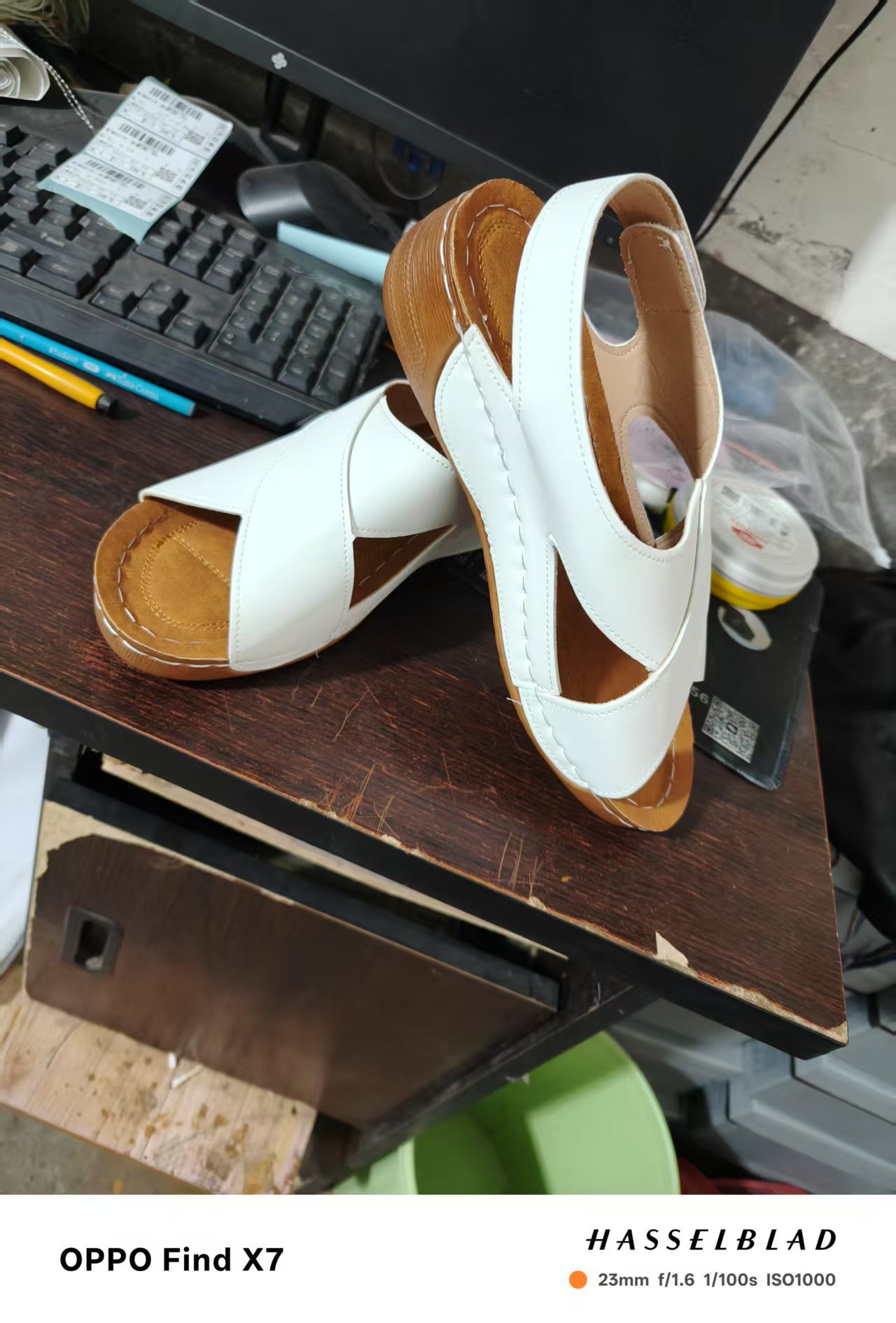 2024夏季新款厚底鱼嘴拼色外贸女鞋大码魔术贴镂空沙滩鞋