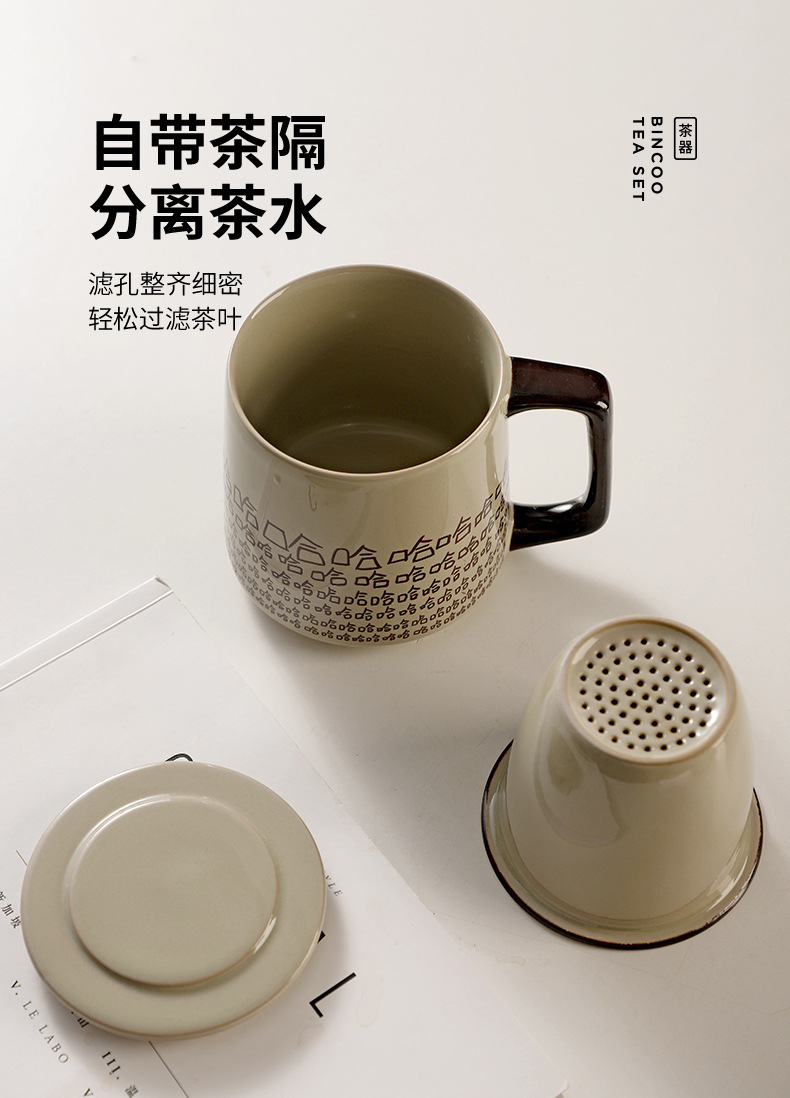 茶水分离泡茶杯子创意个人专用高档陶瓷带盖过滤办公室家用马克杯