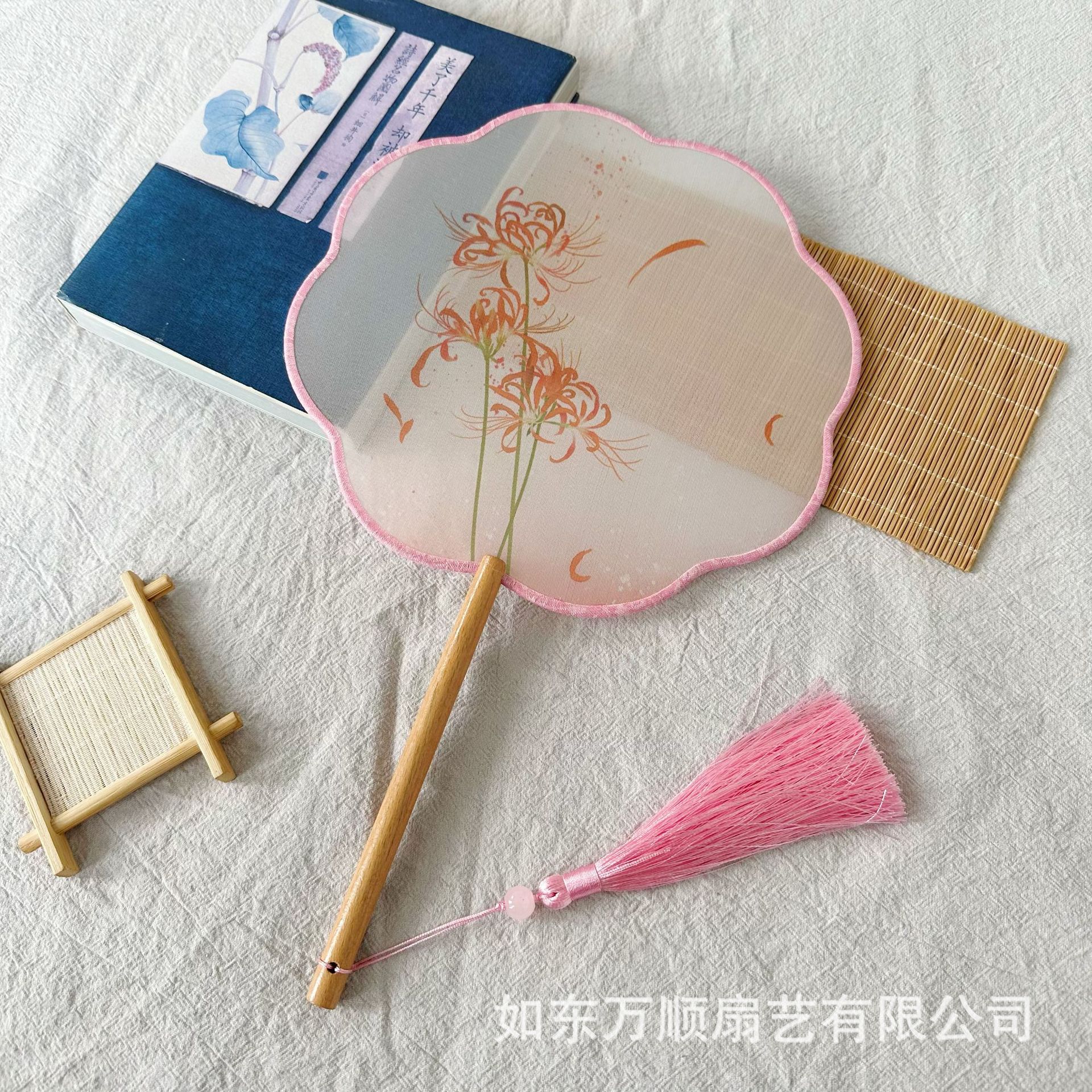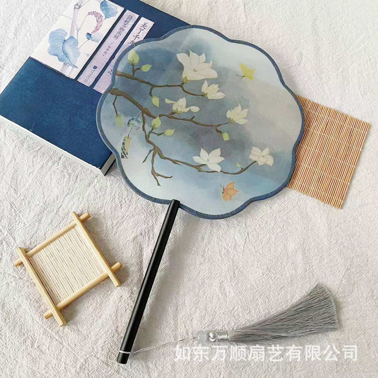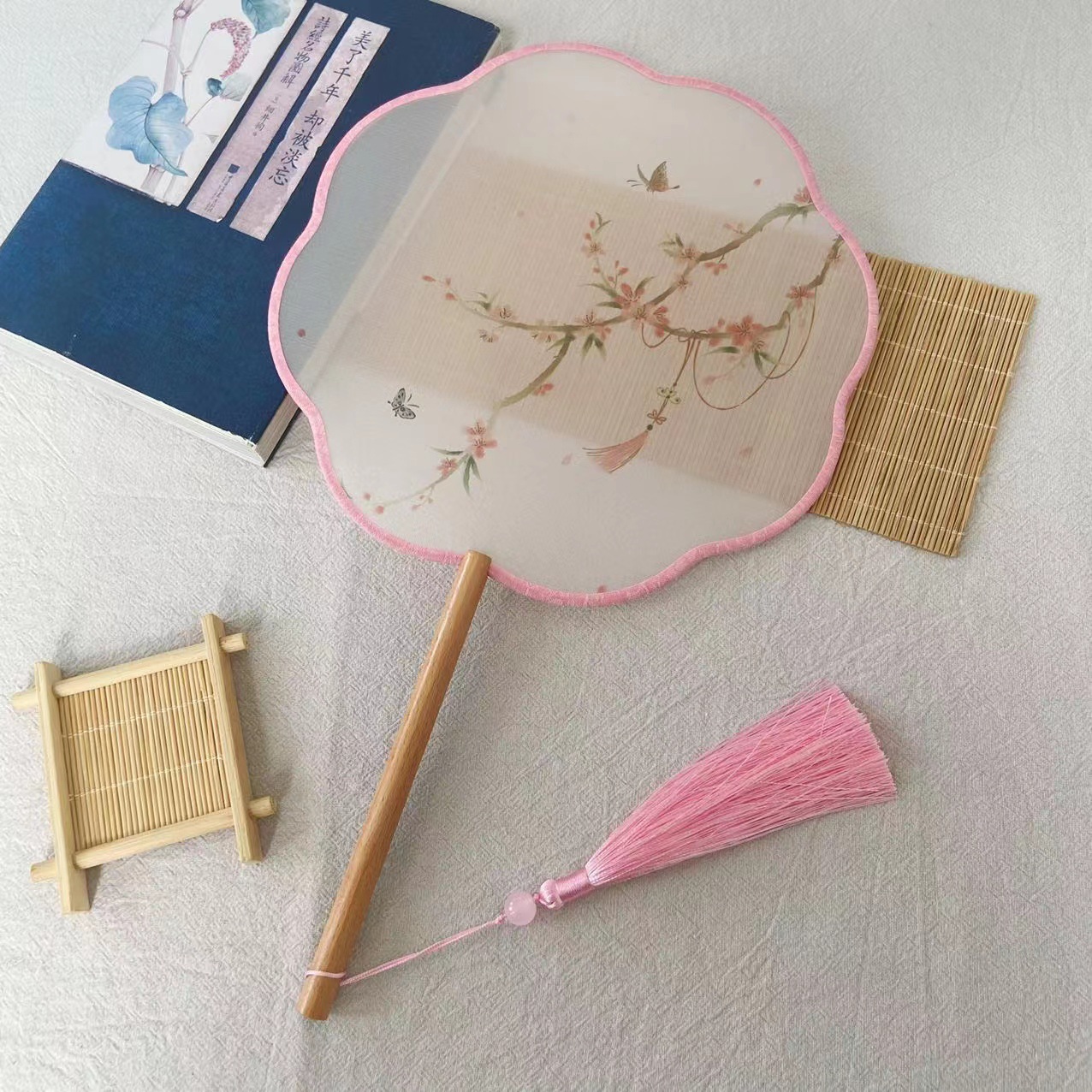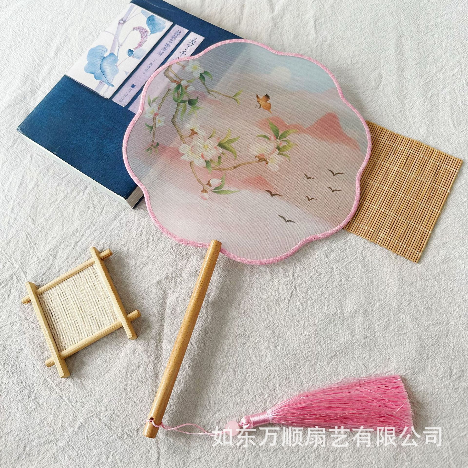 扇子古风半透明长柄团扇汉服古装舞蹈扇超仙中国风礼品异形广告扇