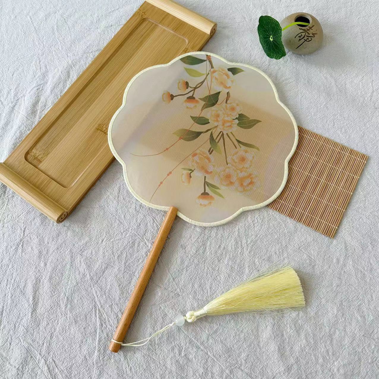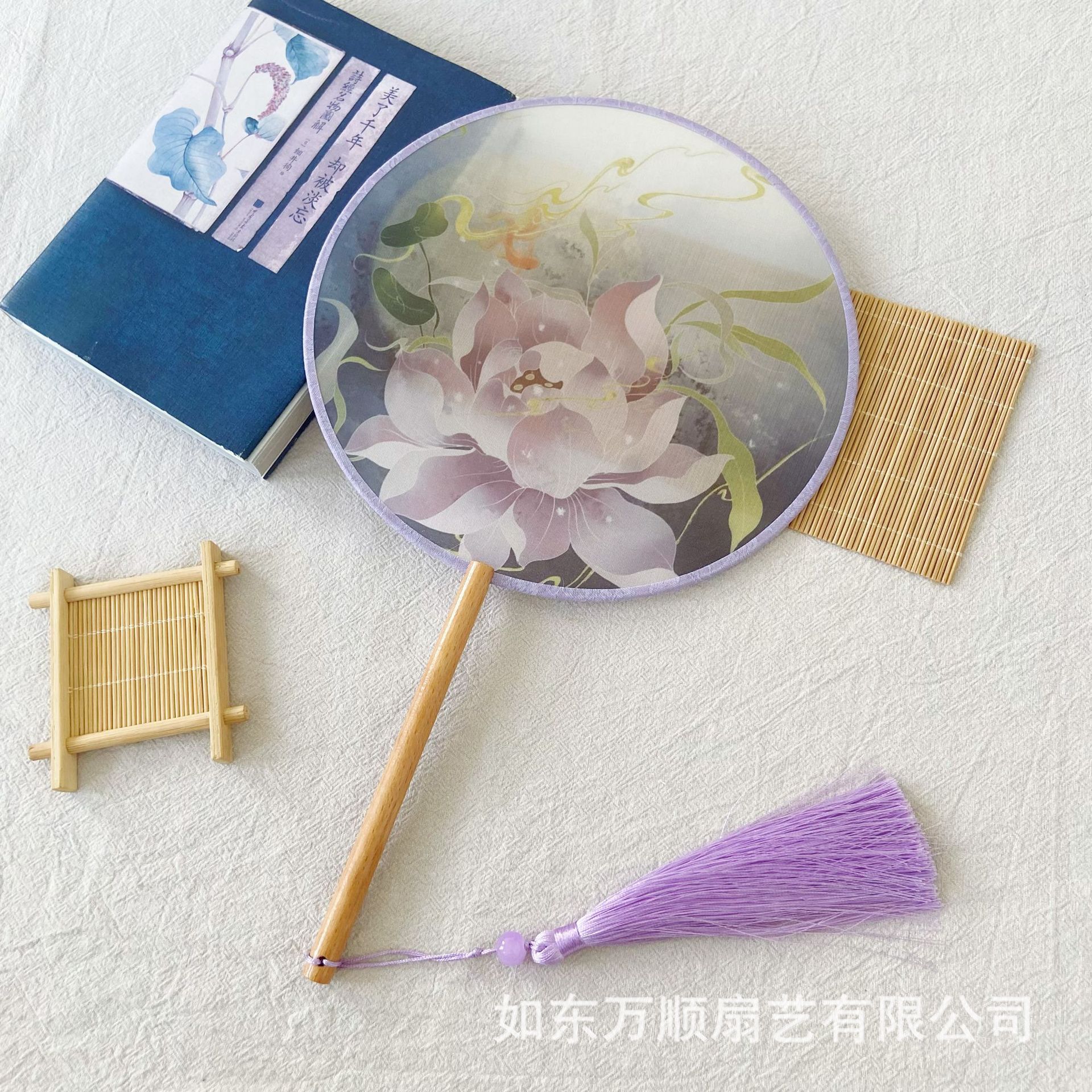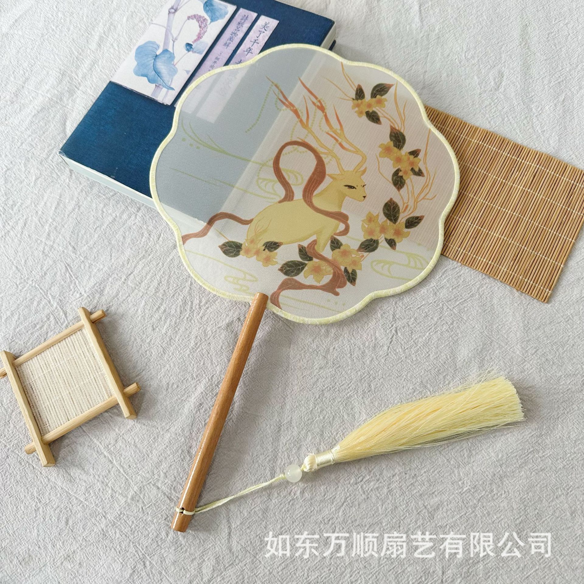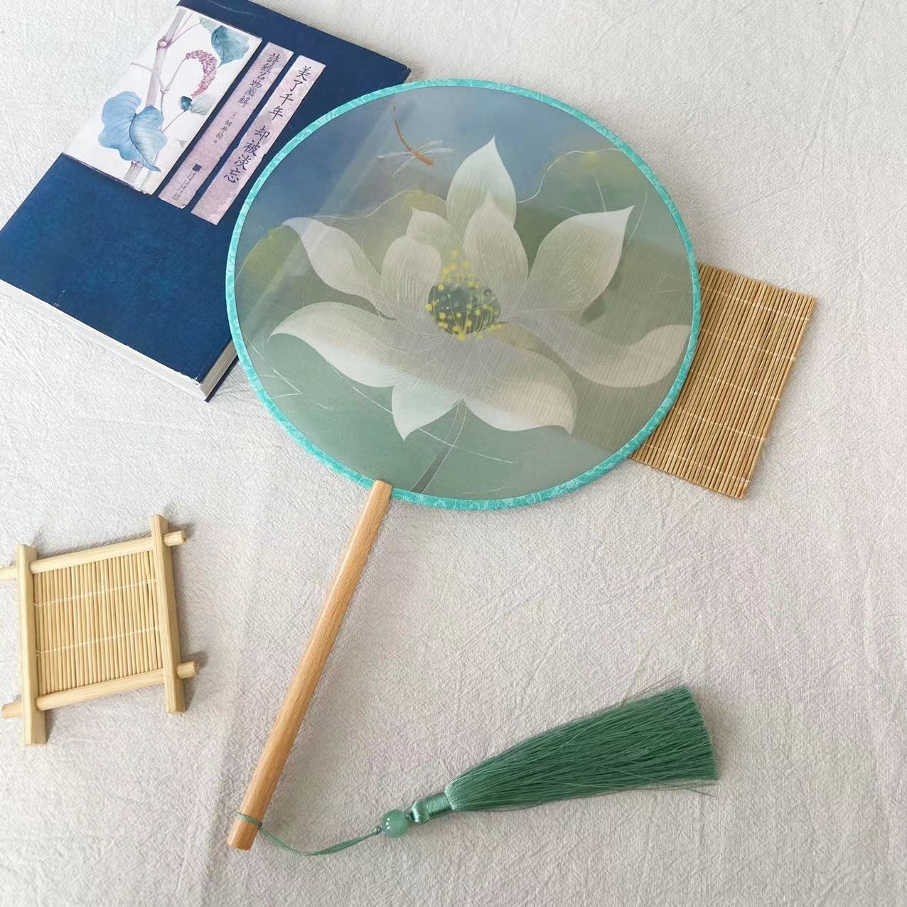 扇子古风半透明长柄团扇汉服古装舞蹈扇超仙中国风礼品异形广告扇