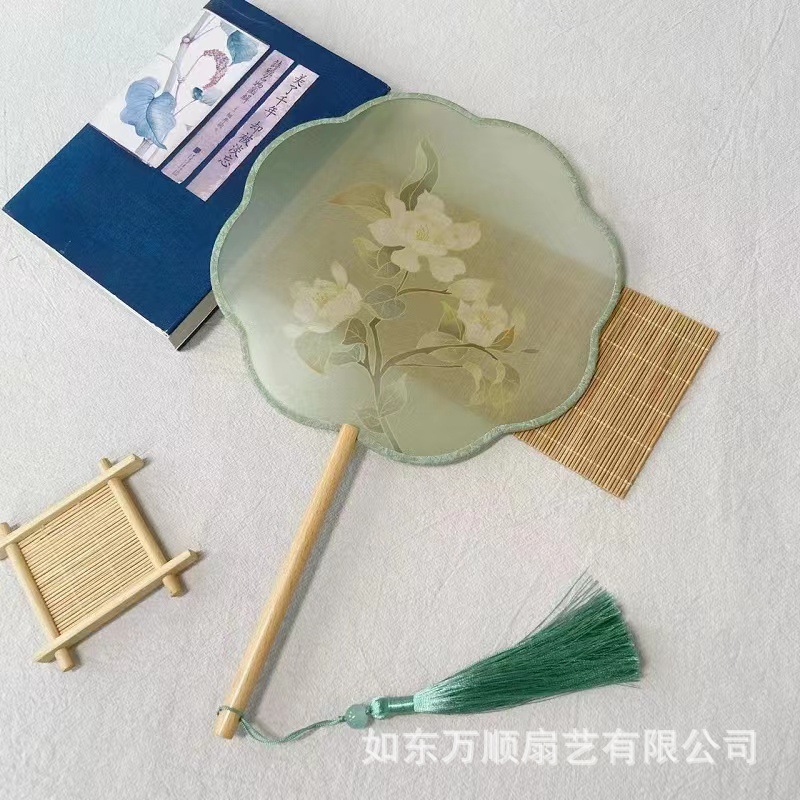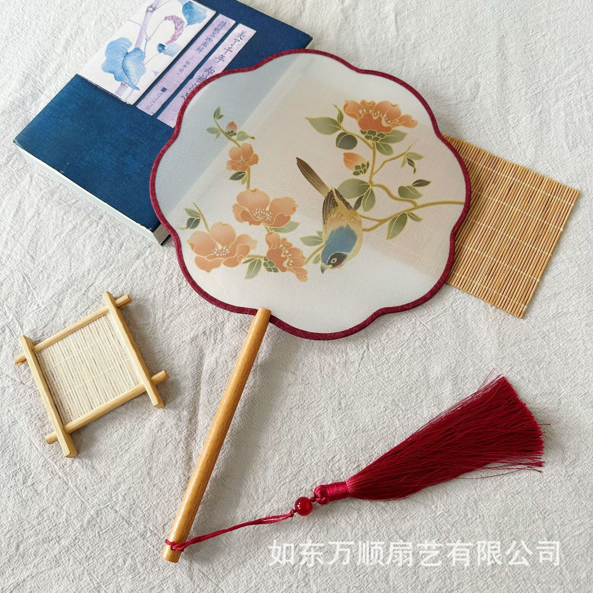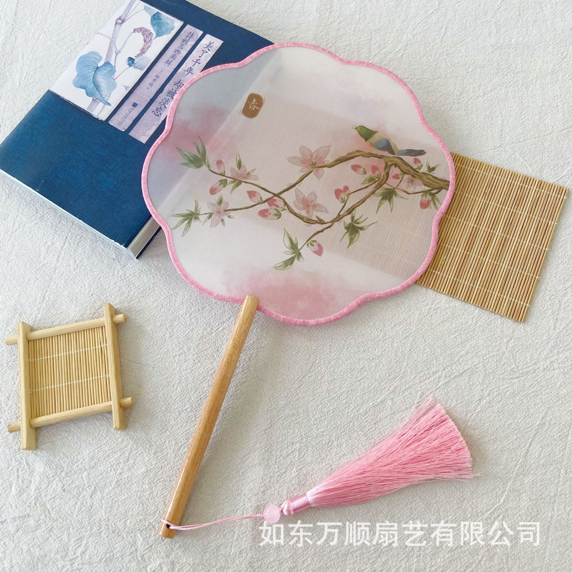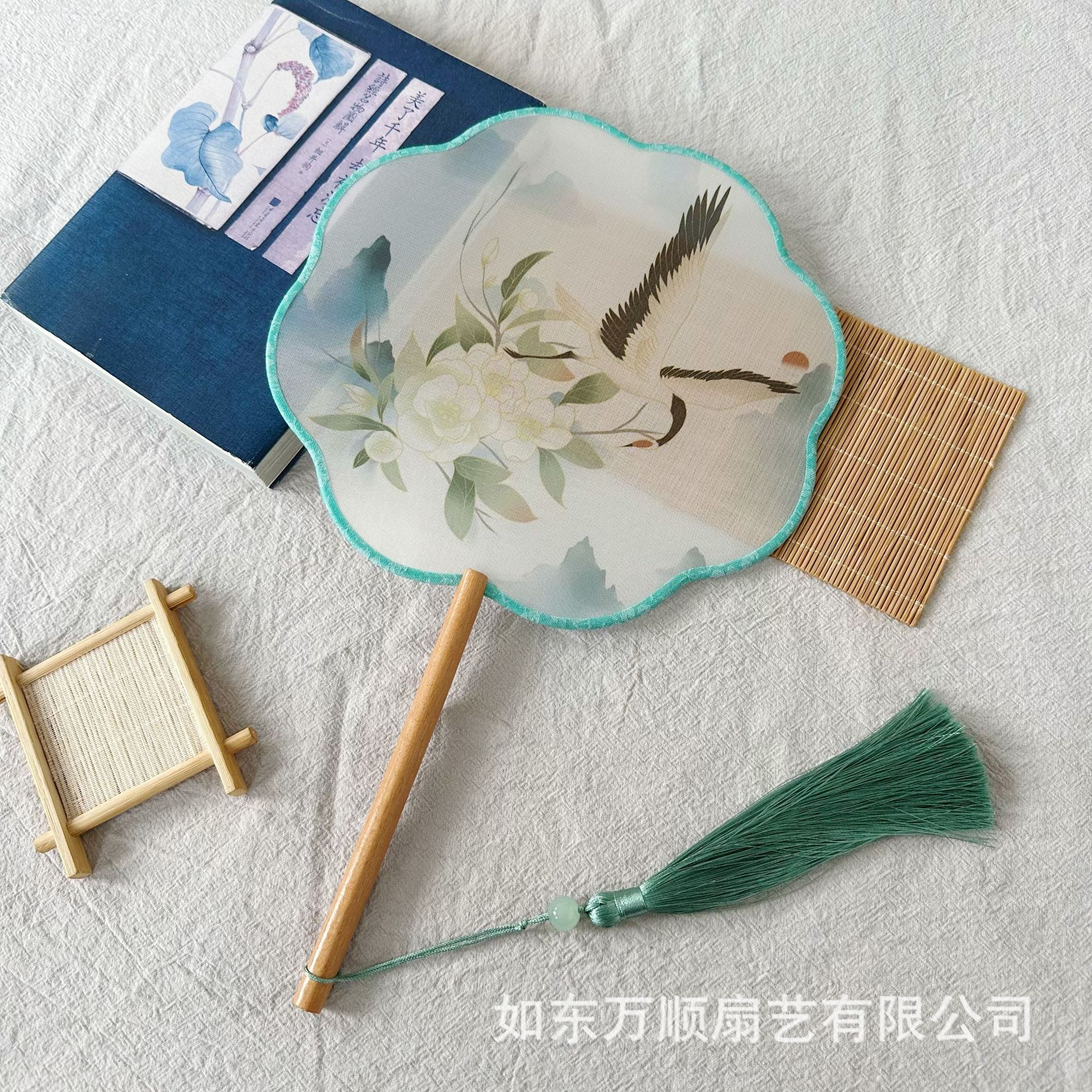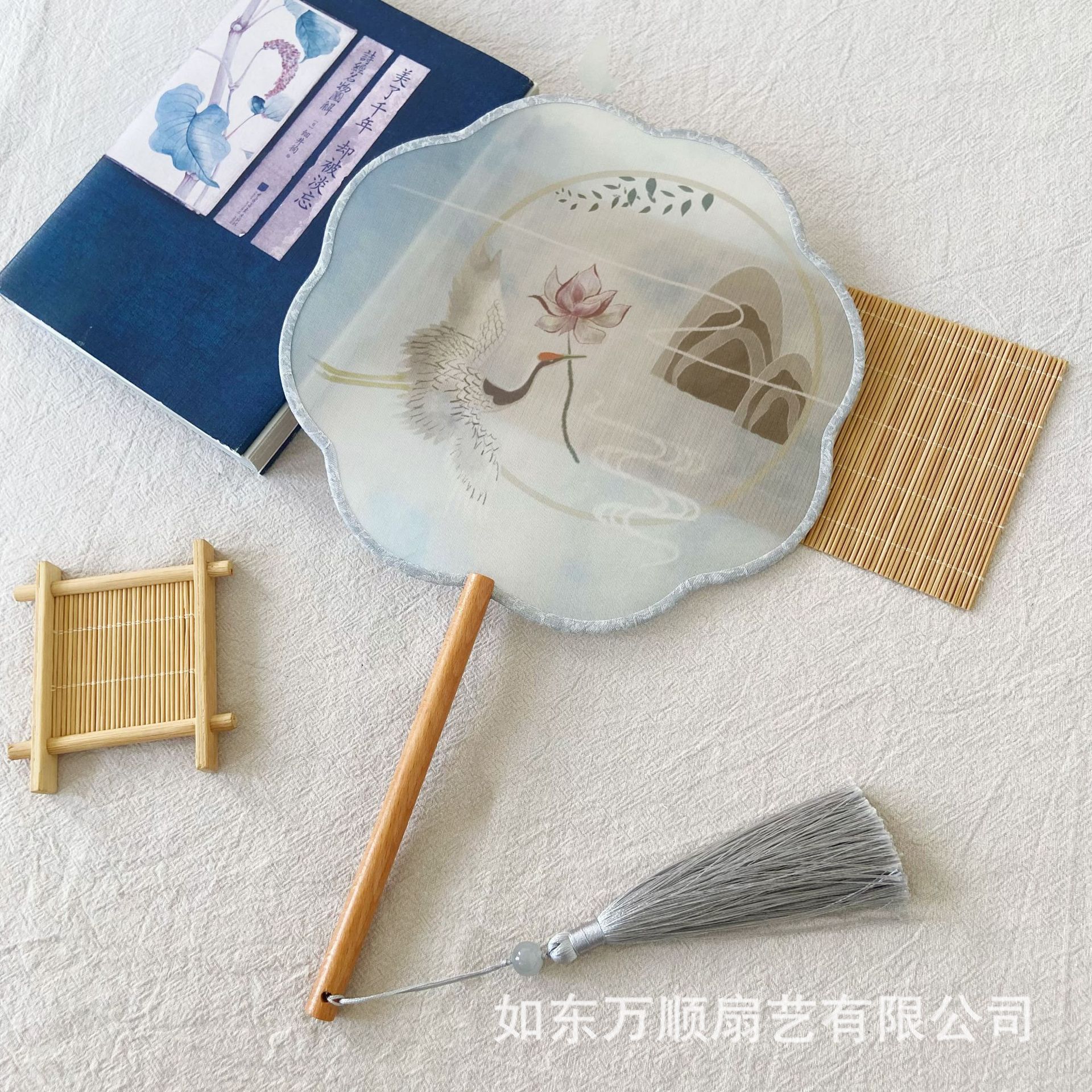 扇子古风半透明长柄团扇汉服古装舞蹈扇超仙中国风礼品异形广告扇