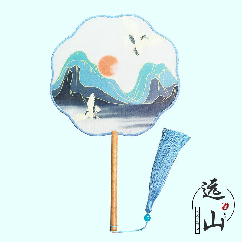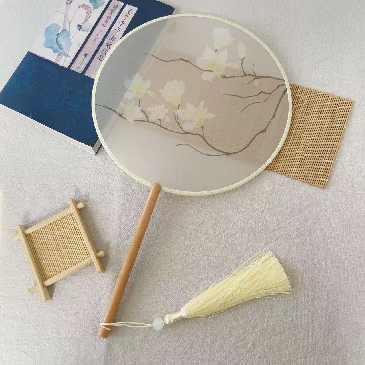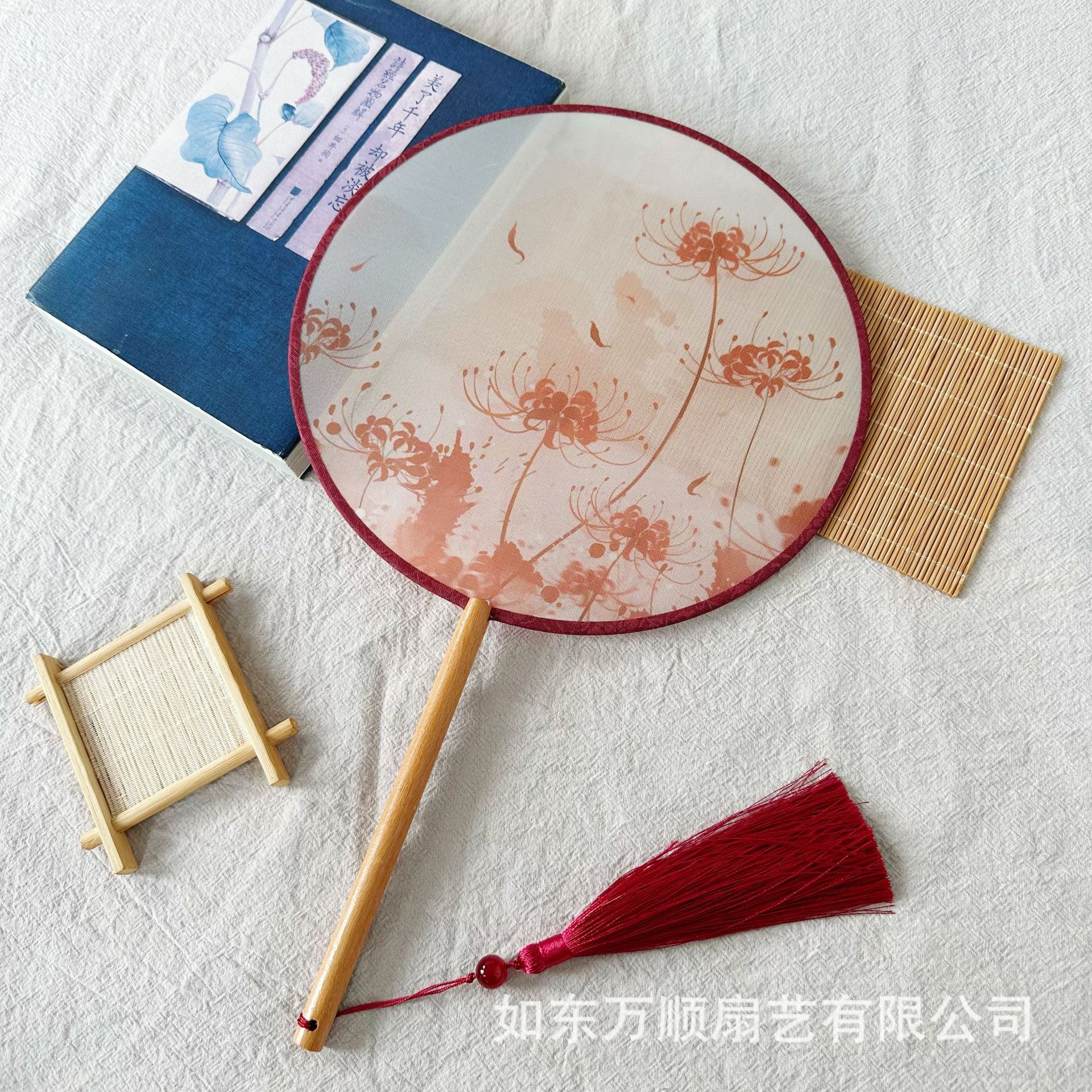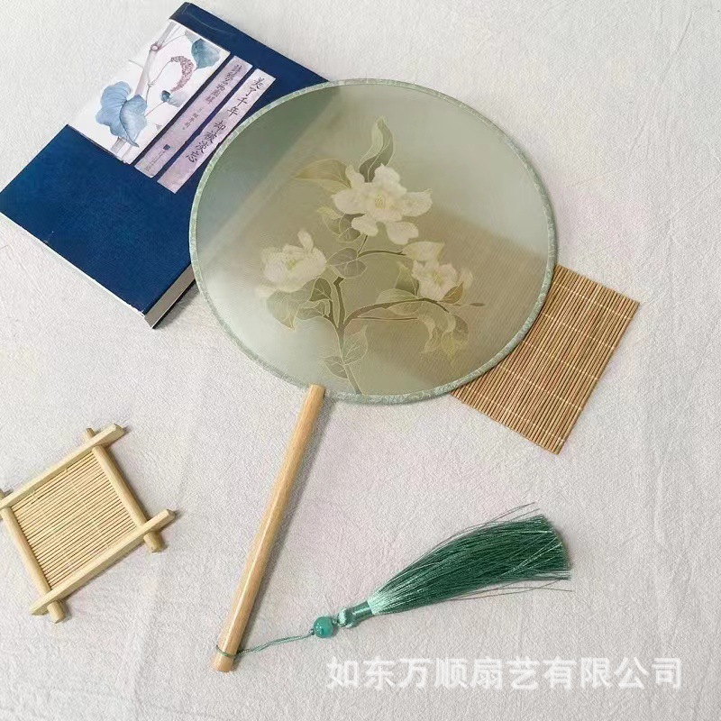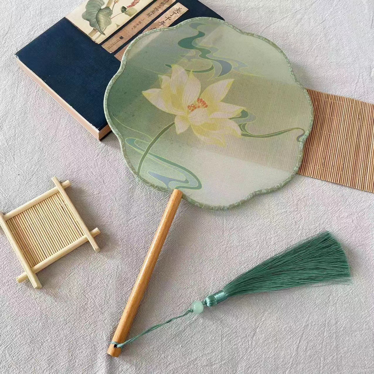 扇子古风半透明长柄团扇汉服古装舞蹈扇超仙中国风礼品异形广告扇