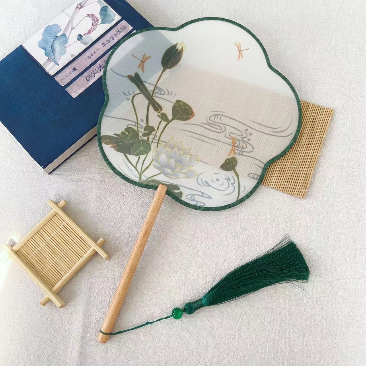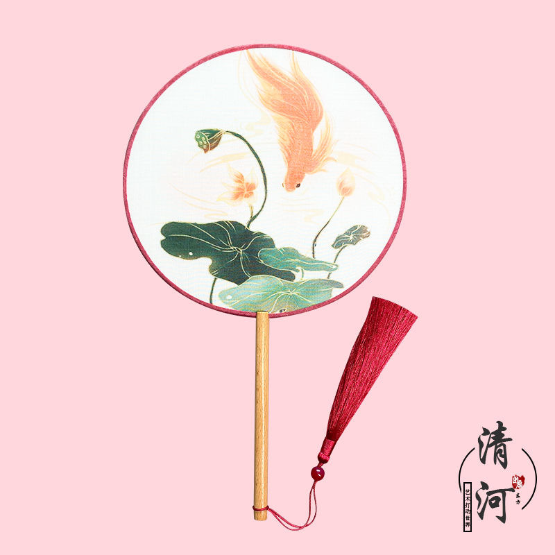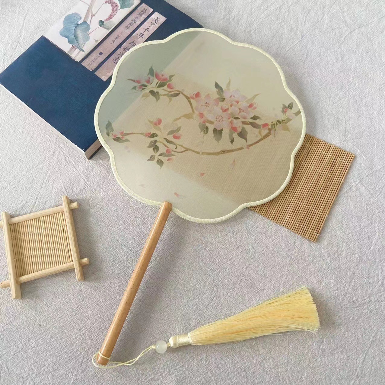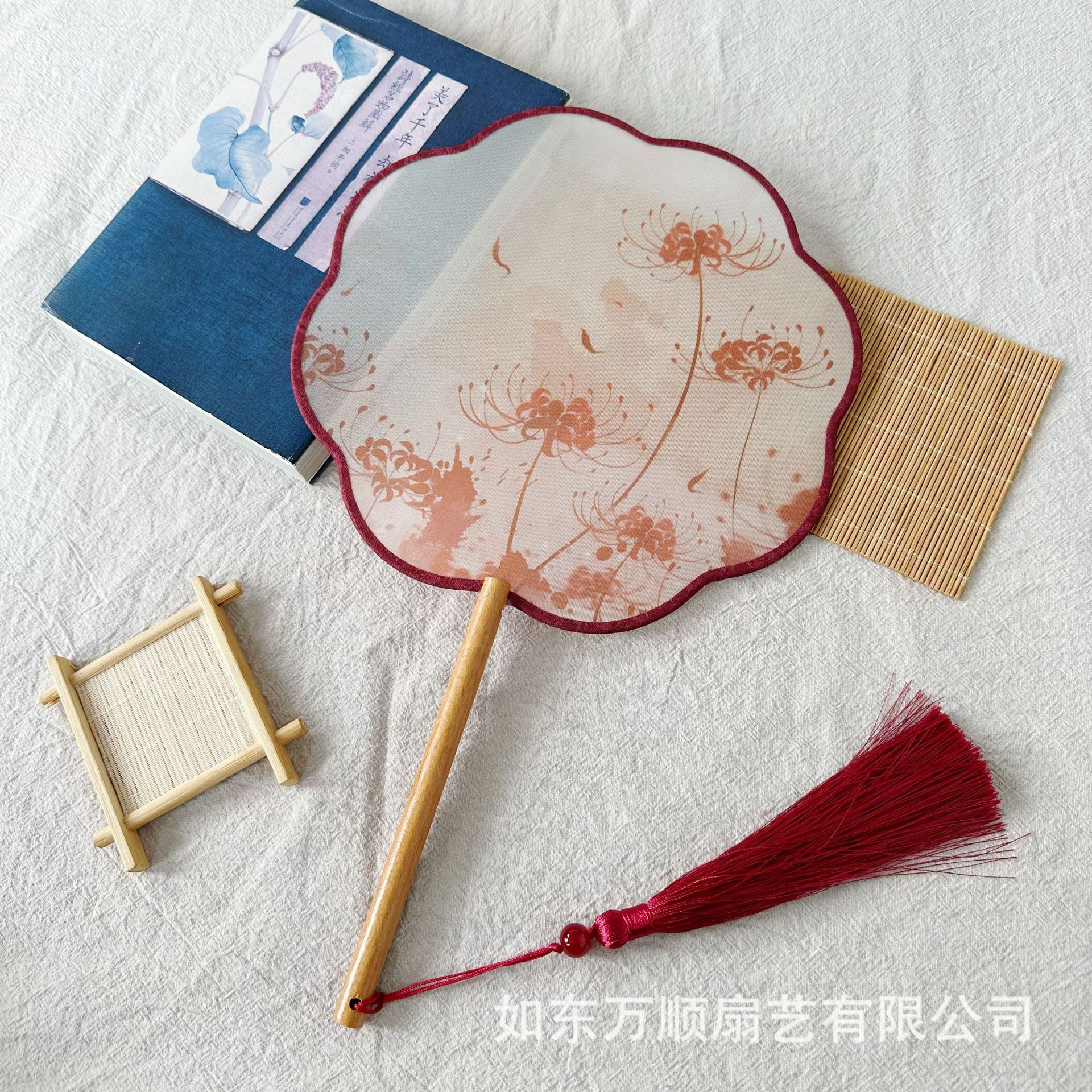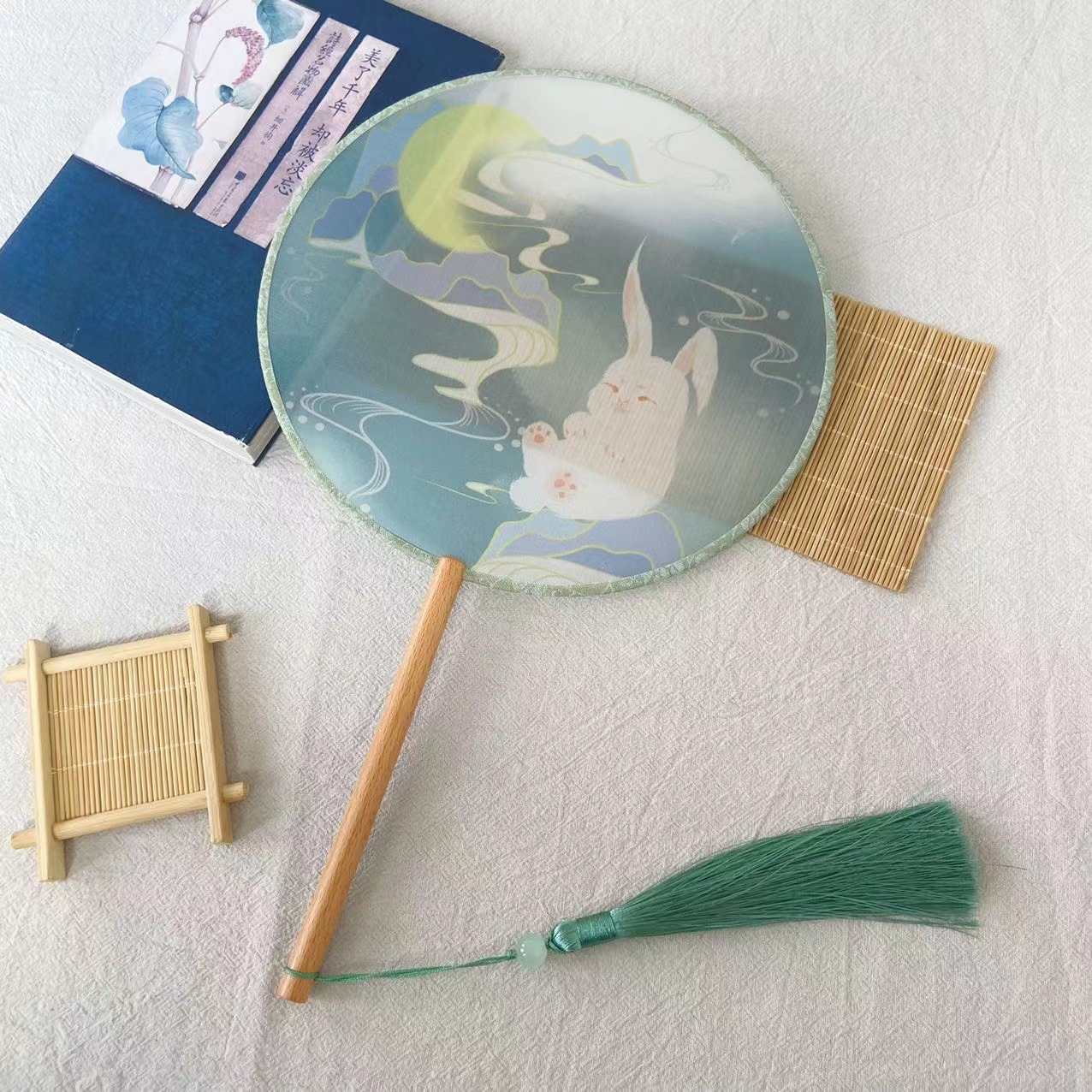 扇子古风半透明长柄团扇汉服古装舞蹈扇超仙中国风礼品异形广告扇