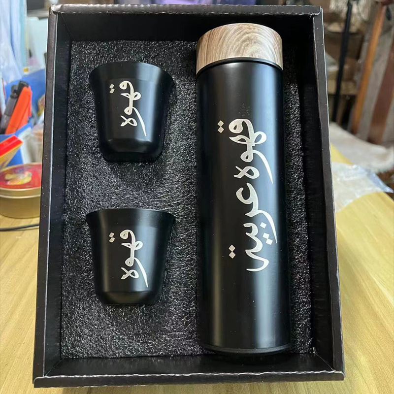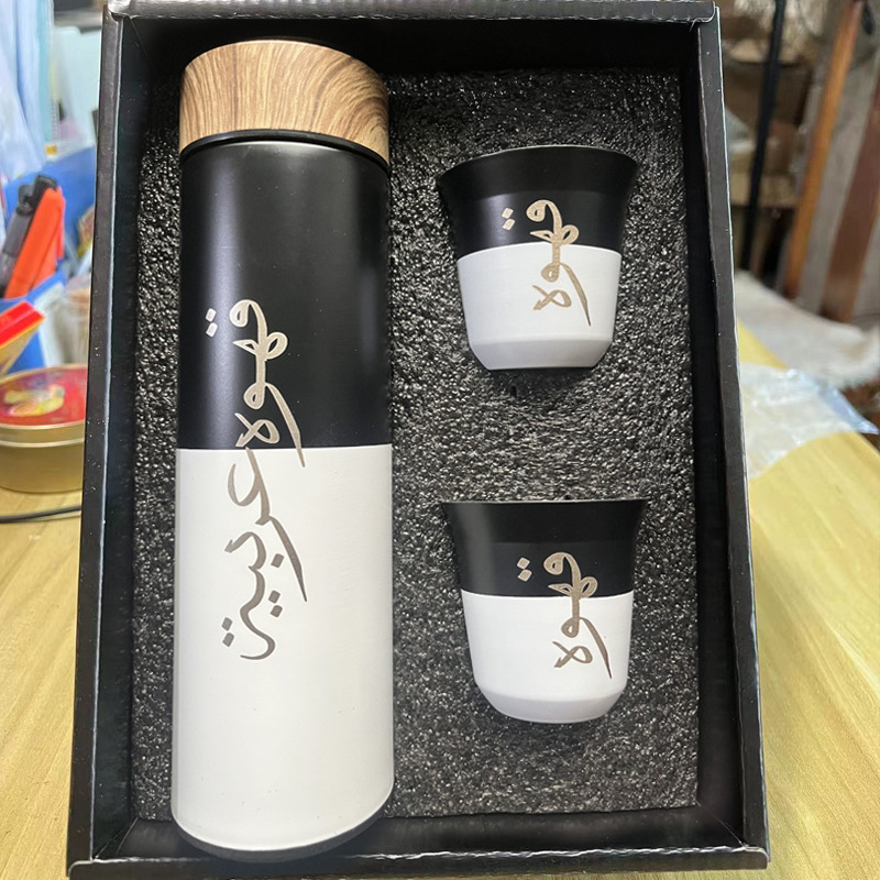 中东阿拉伯文跨境木纹盖不锈钢保温杯套装车载随行杯汽车杯可批发