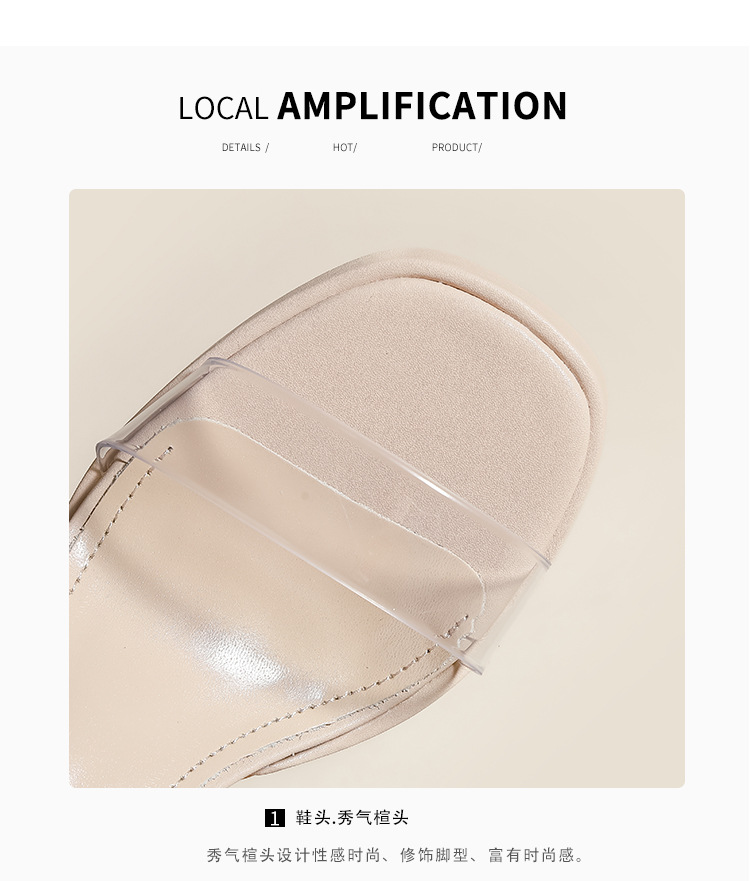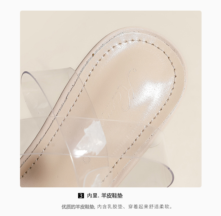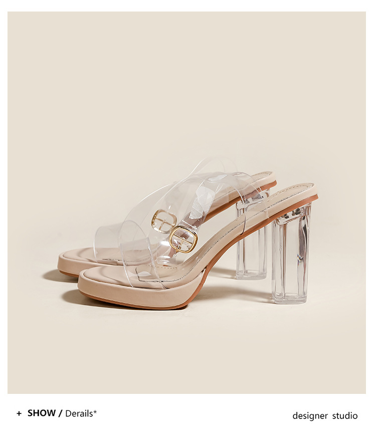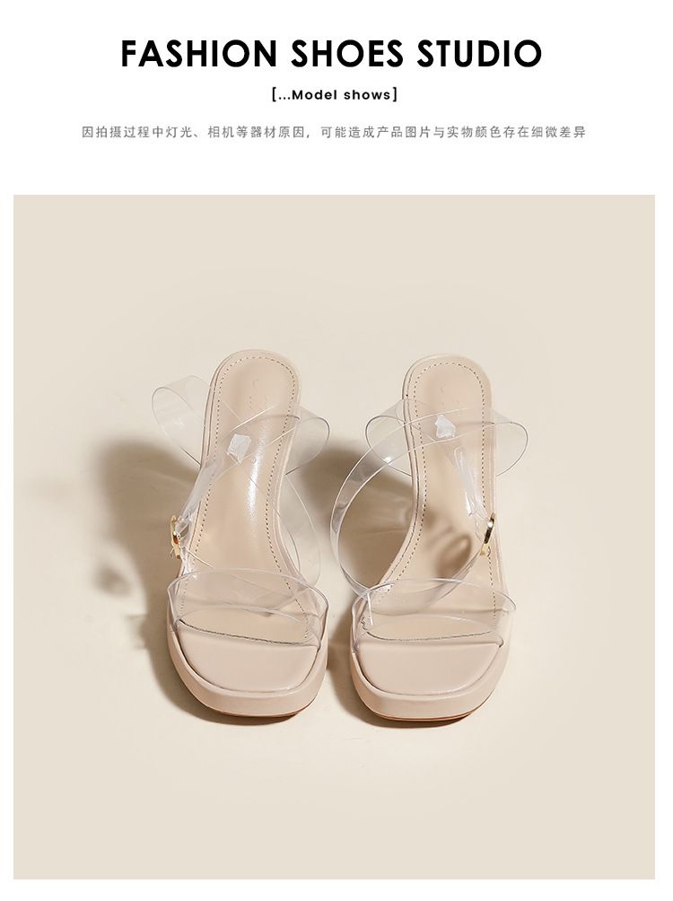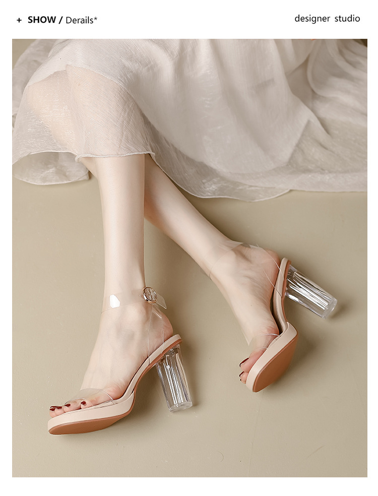 真皮网红透明露趾一字带粗跟防水台高跟凉鞋2025年新款女夏仙女风