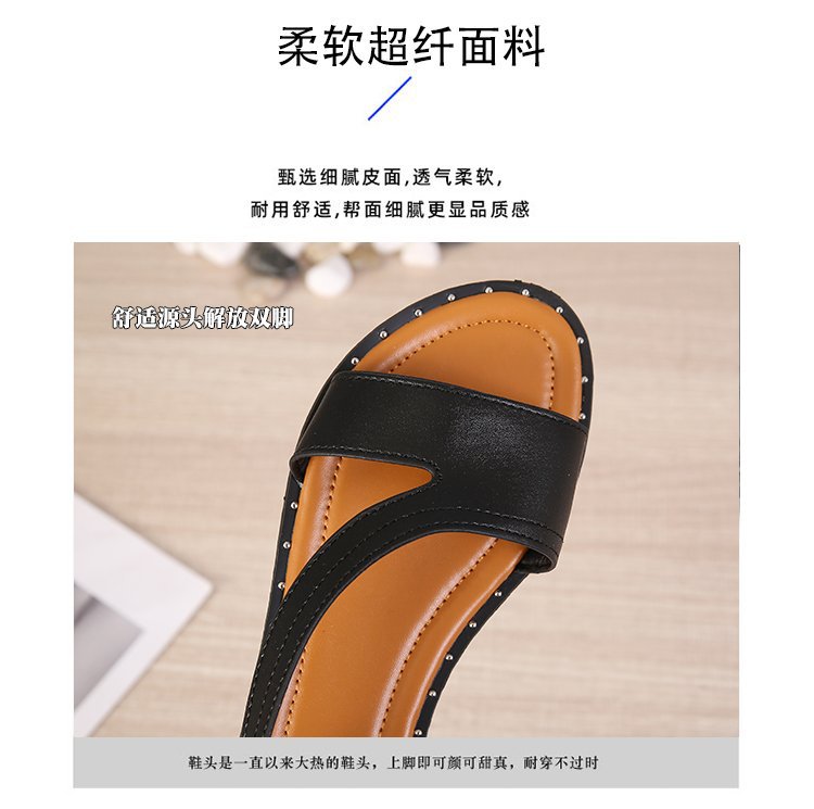 罗马风外贸大码鱼嘴一字型平底凉鞋2022新款露趾跨境女鞋欧美