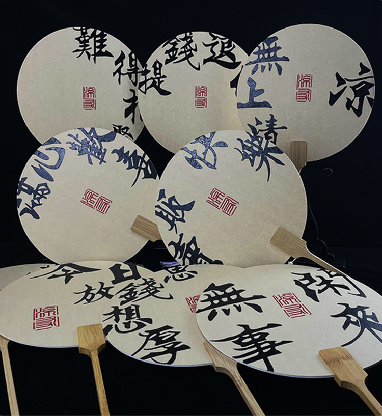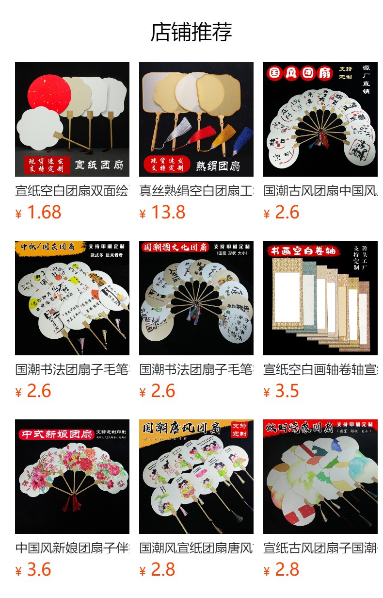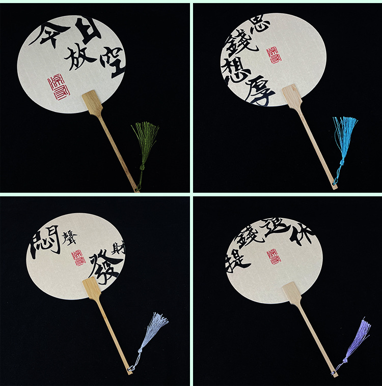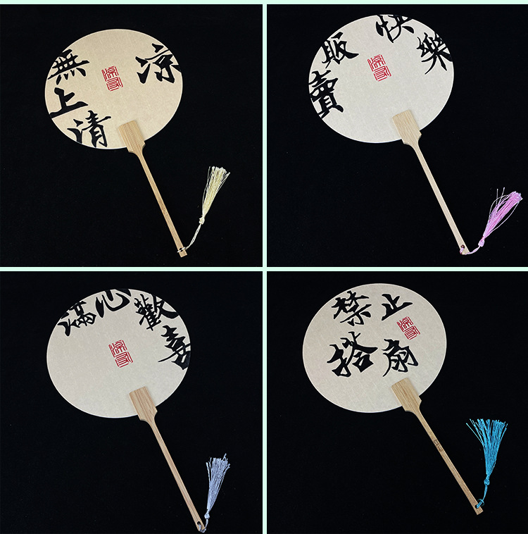 宣纸古风书法团扇子国潮风印刷旅游景点夏季热卖中国风毛笔字扇面
