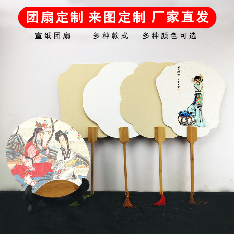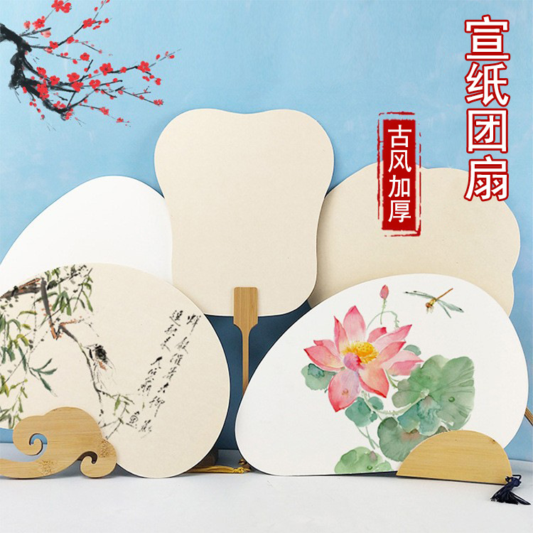 团扇加厚环保卡纸宣纸半生熟宣纸空白手绘DIY毛笔字古风扇面批发