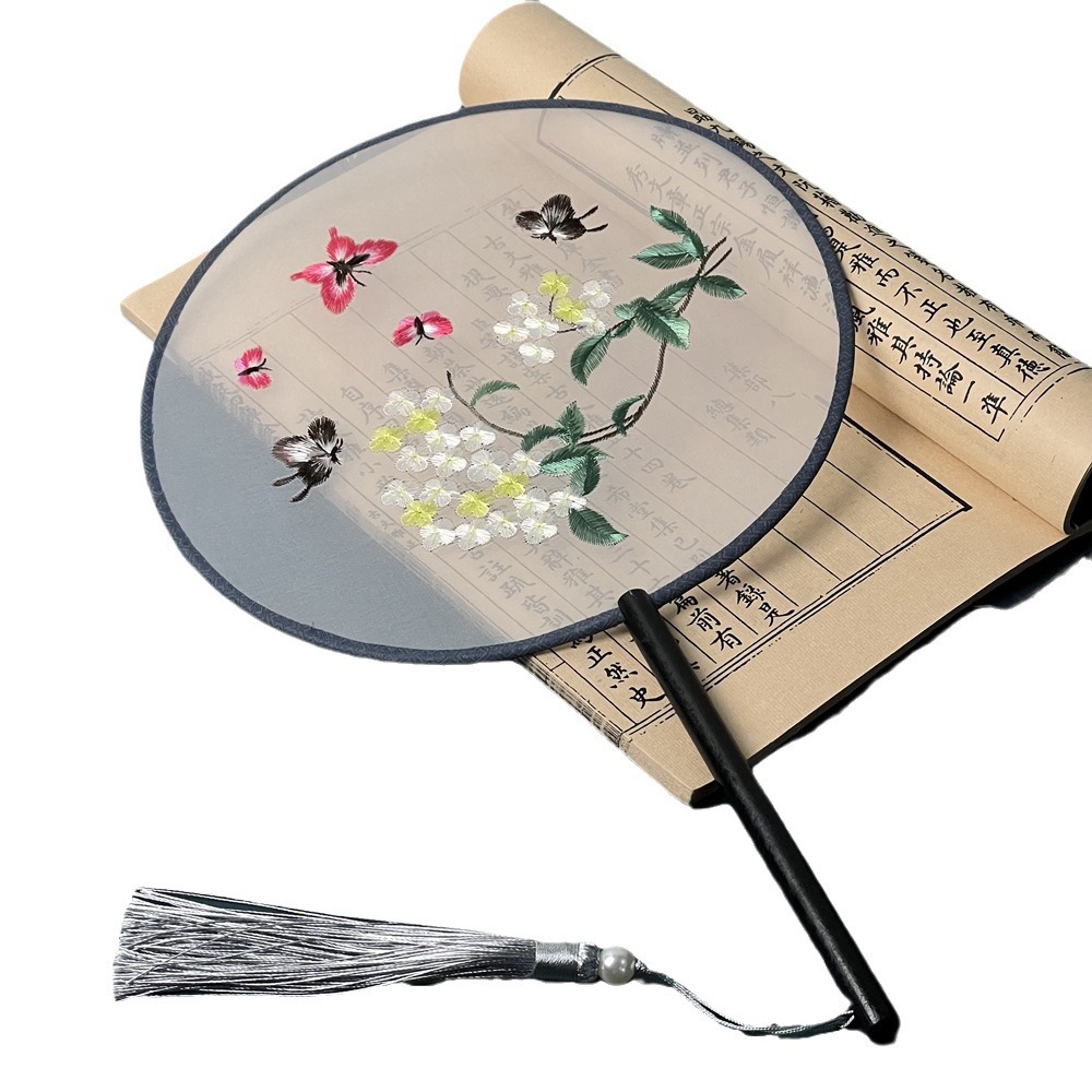 单面刺绣团扇*刺绣扇*汉服动漫配饰*中国风旗袍*莲花仙鹤扇古风