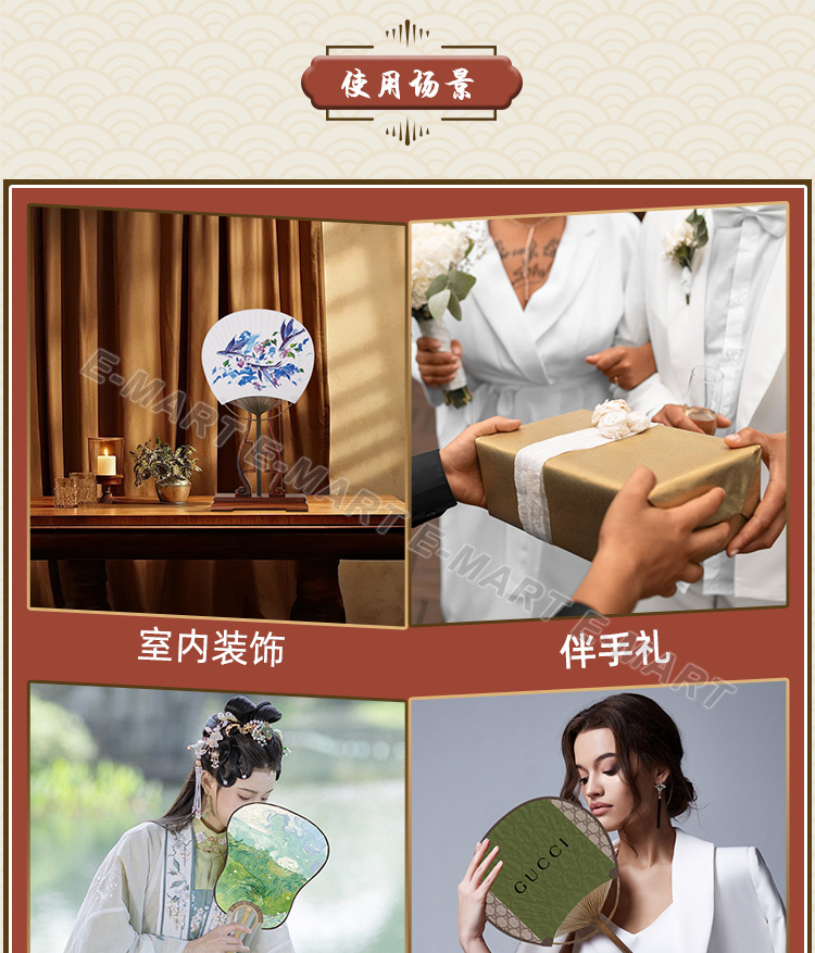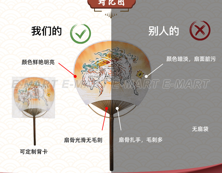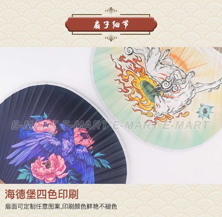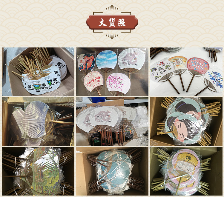 中国风扇子高档日式团扇宣纸古风蒲扇广告促销扇礼品工艺品竹扇