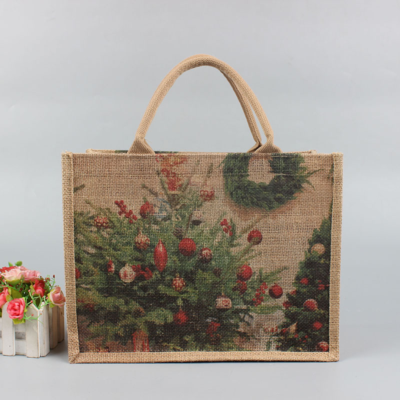 厂家供应新款黄麻布手提袋卡通动物精品黄麻手提袋简约购物袋