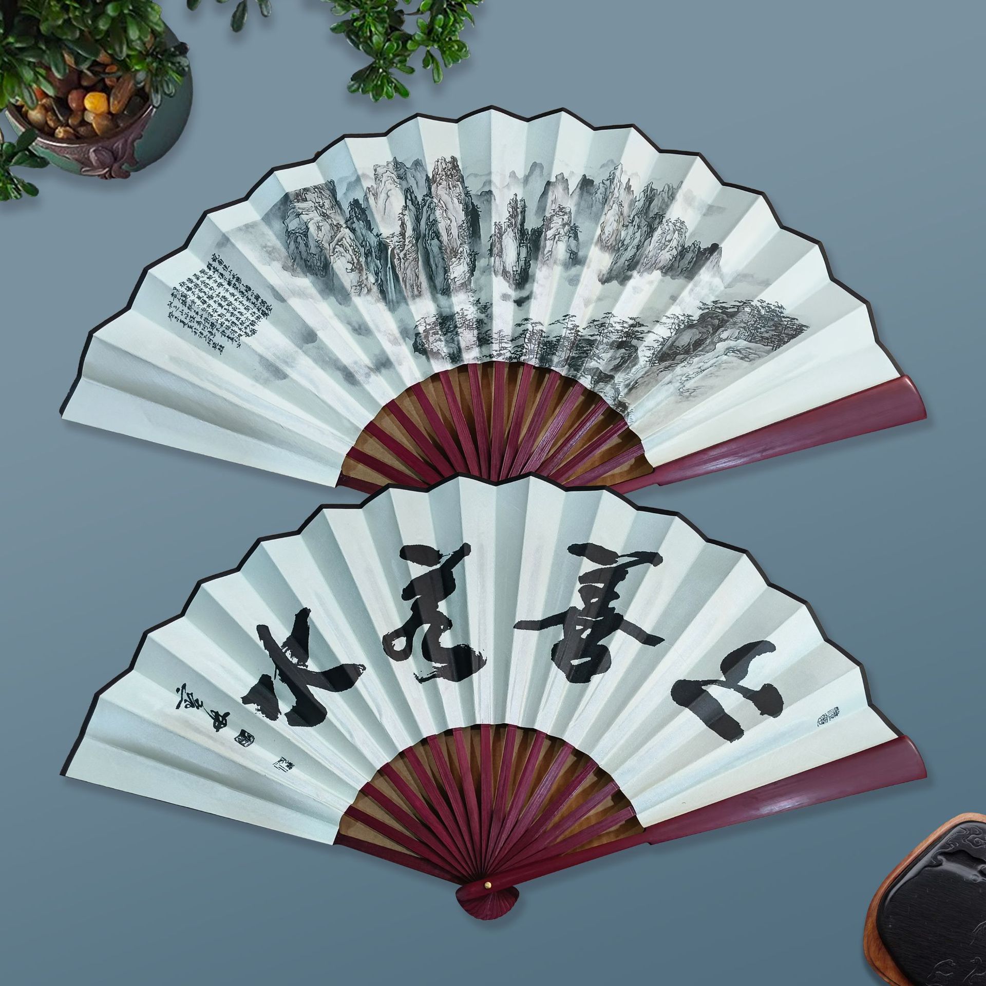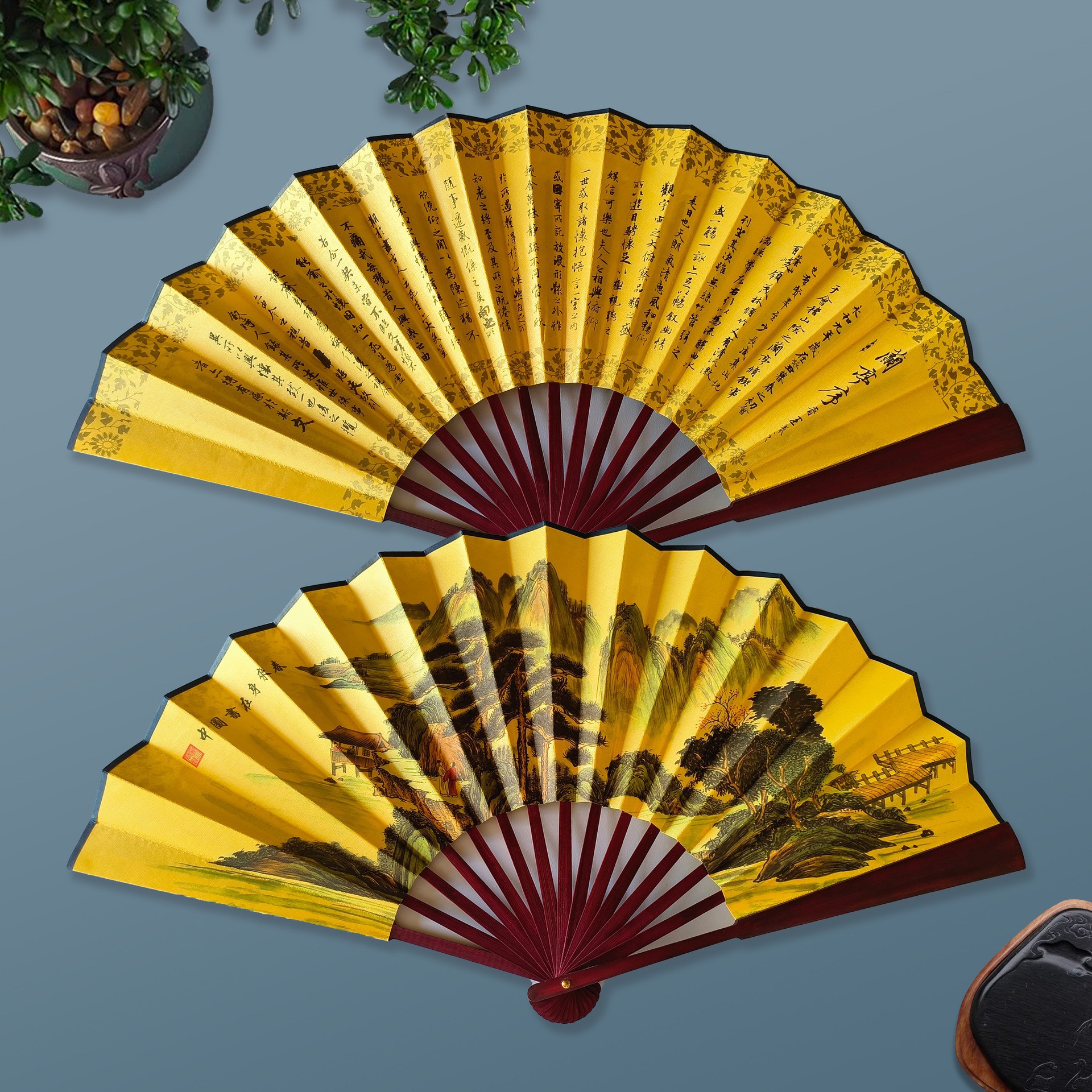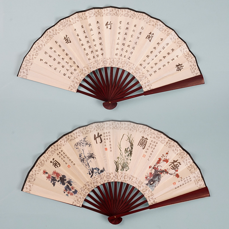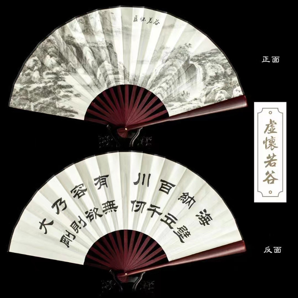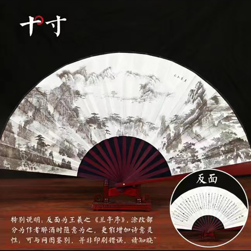 十寸男扇书法文艺扇子仿红木古风印刷竹质绢布中国风扇子