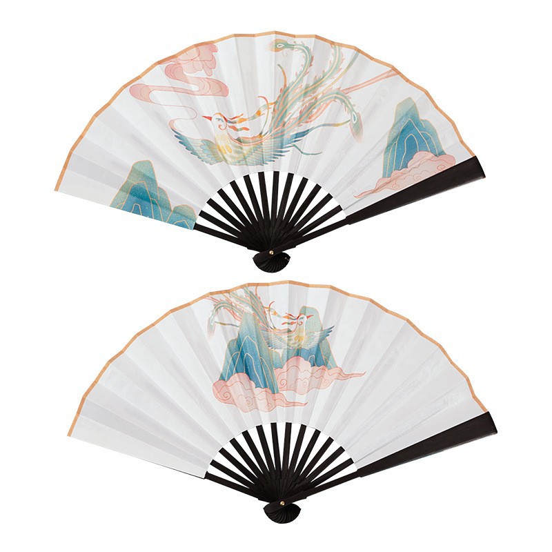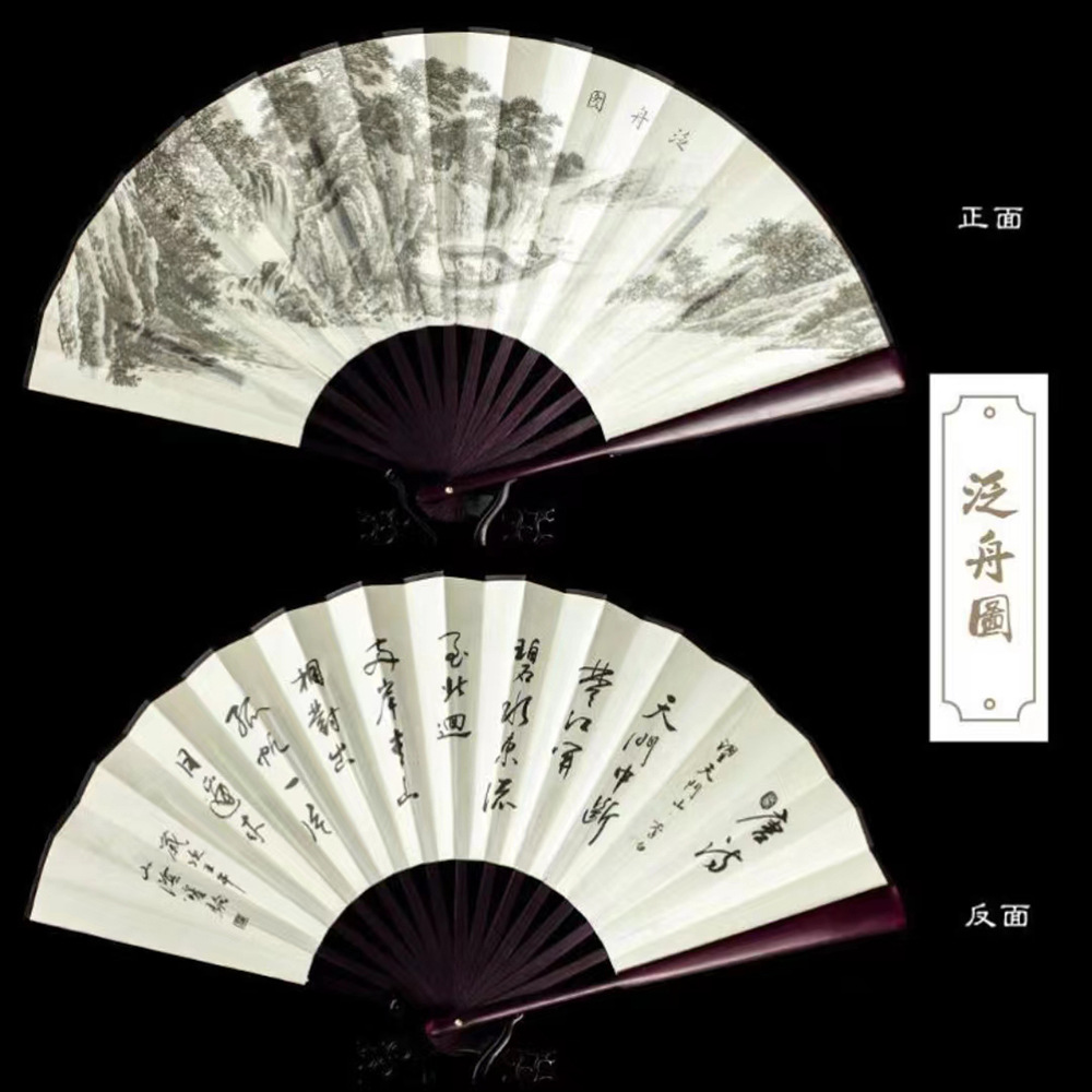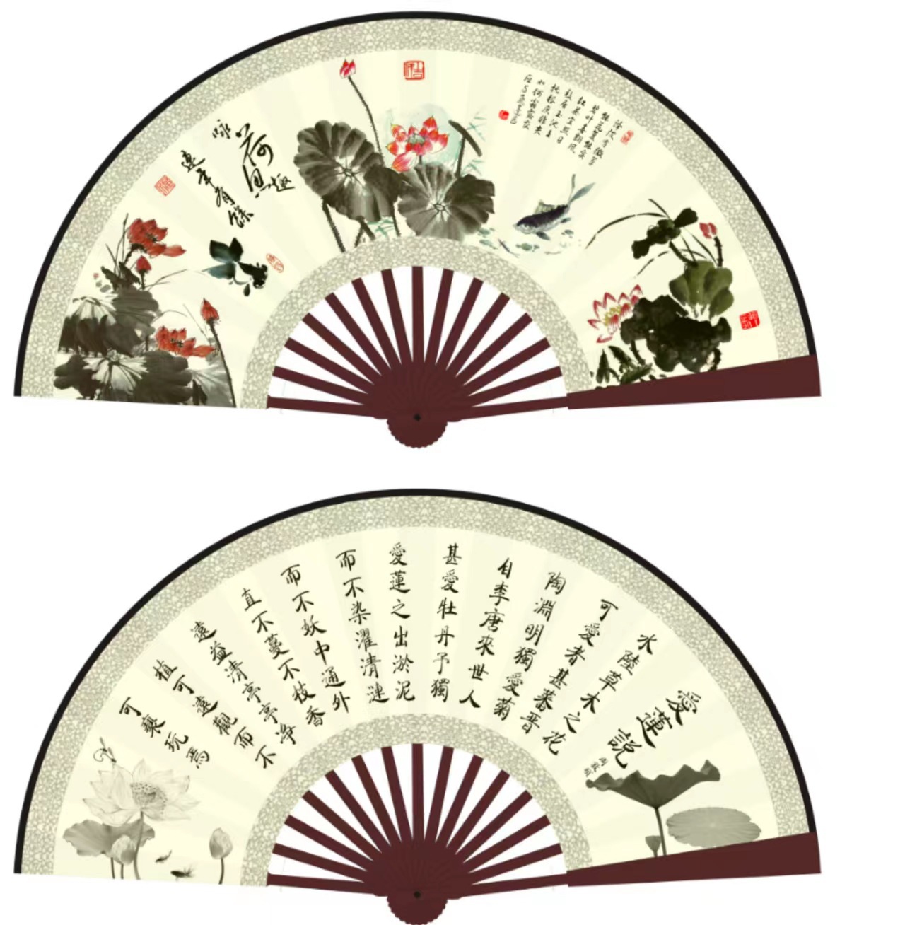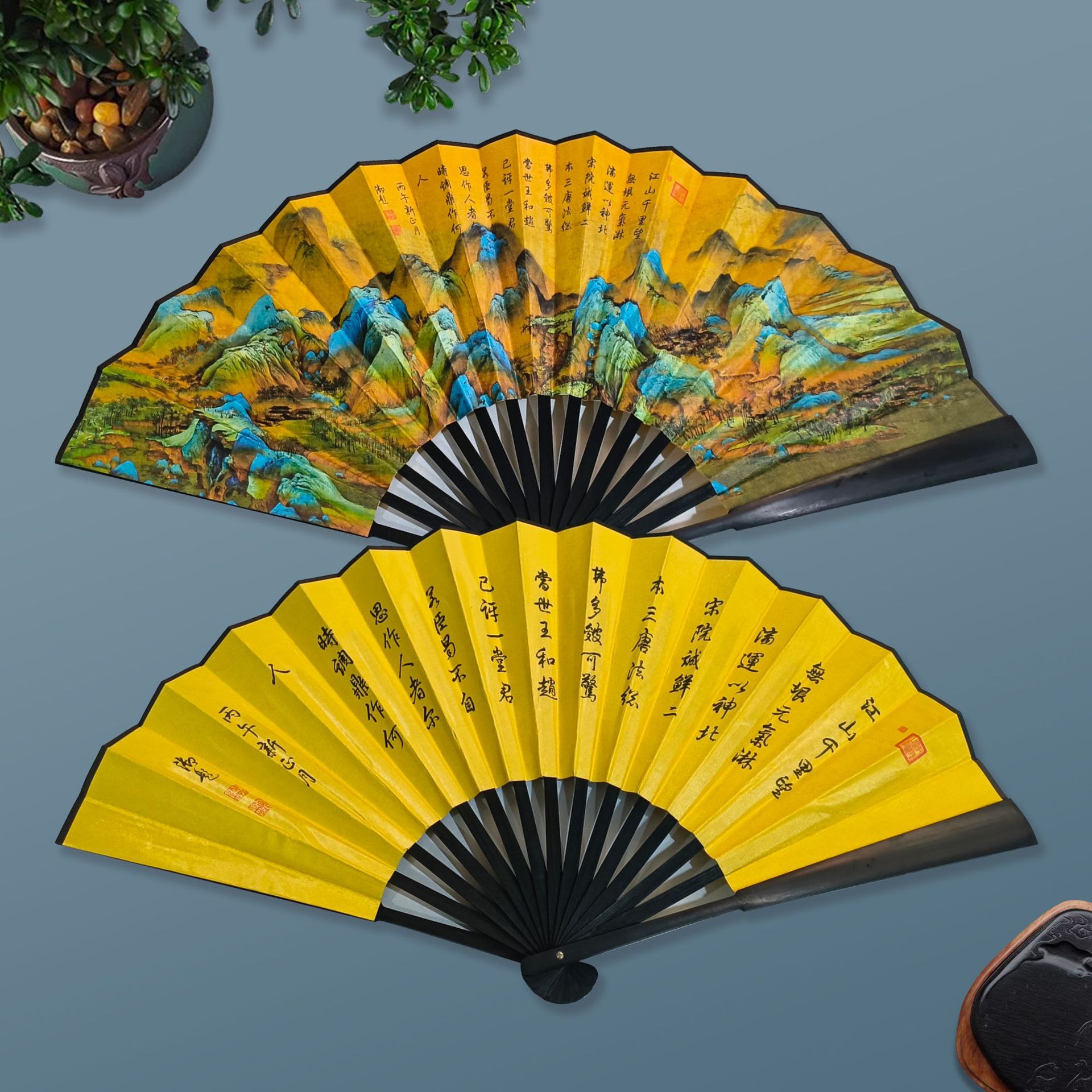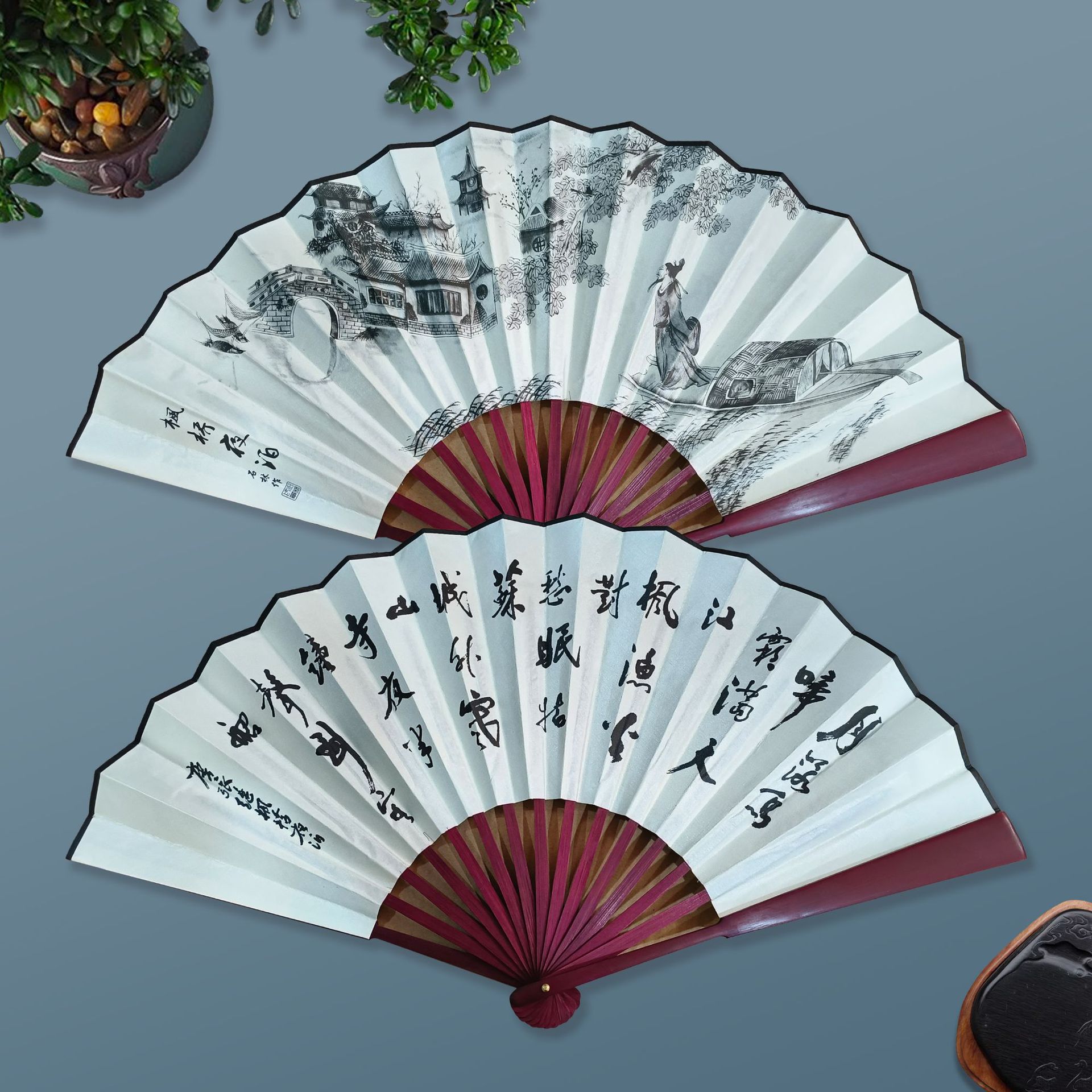 十寸男扇书法文艺扇子仿红木古风印刷竹质绢布中国风扇子
