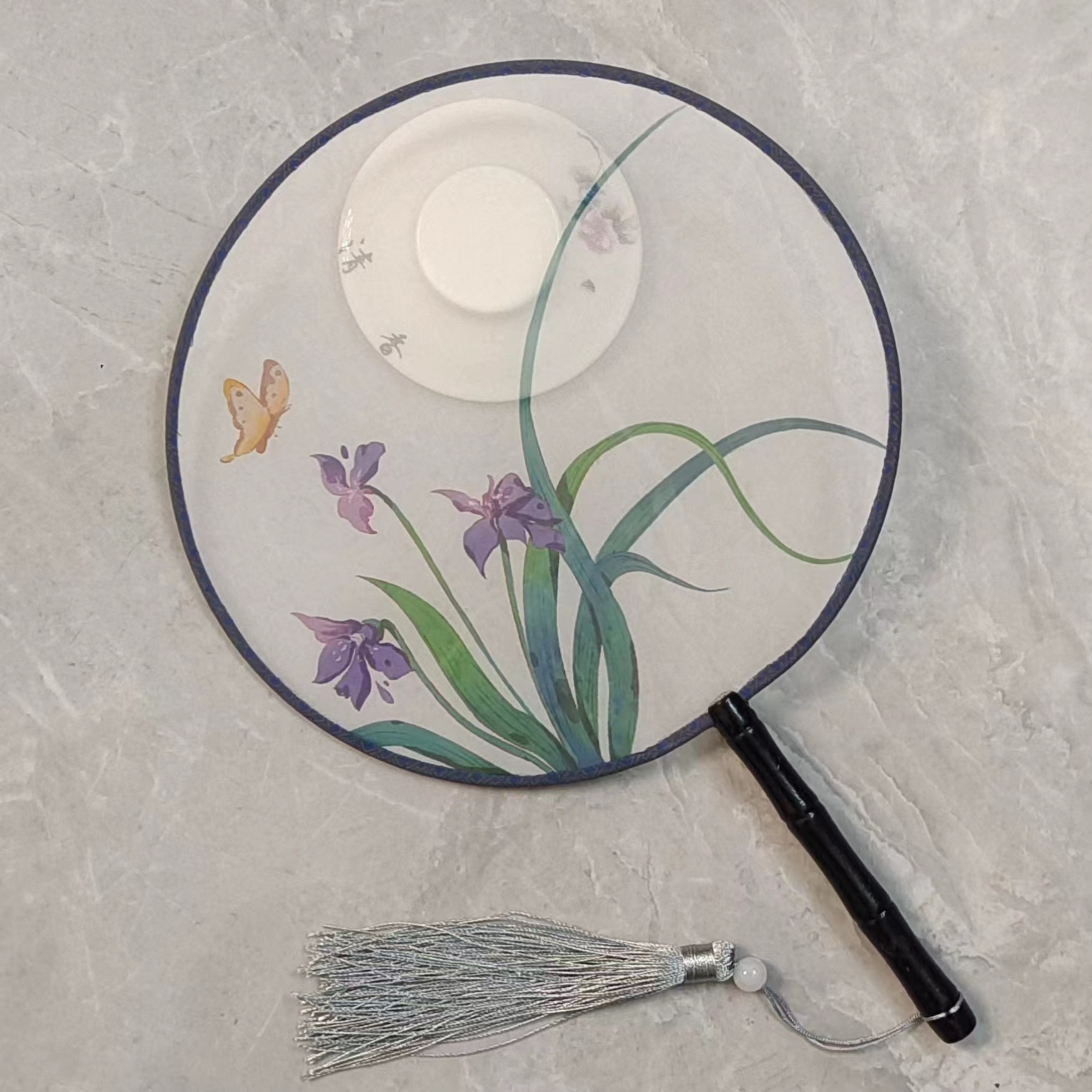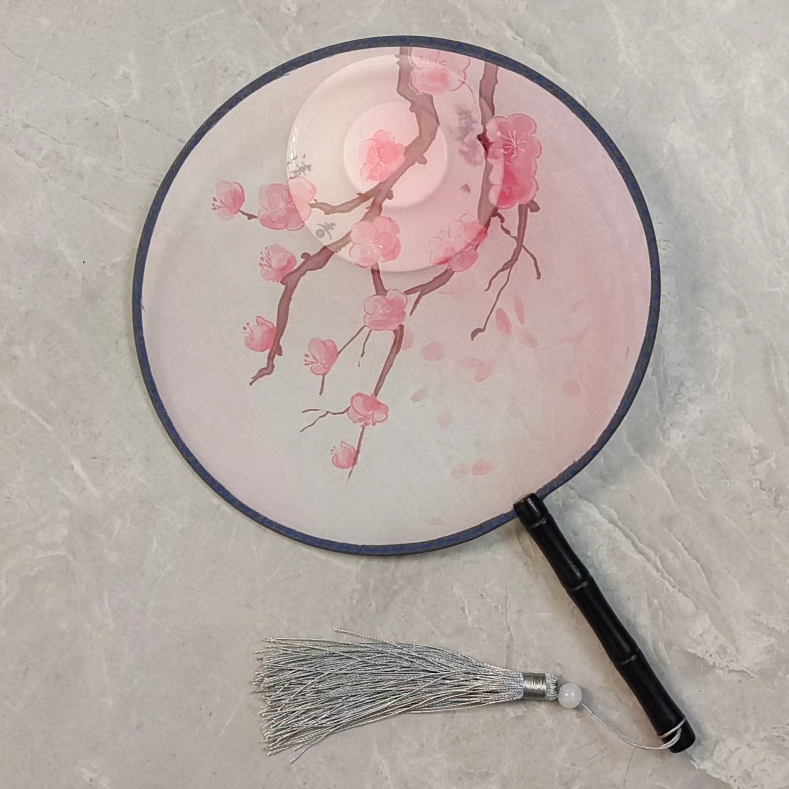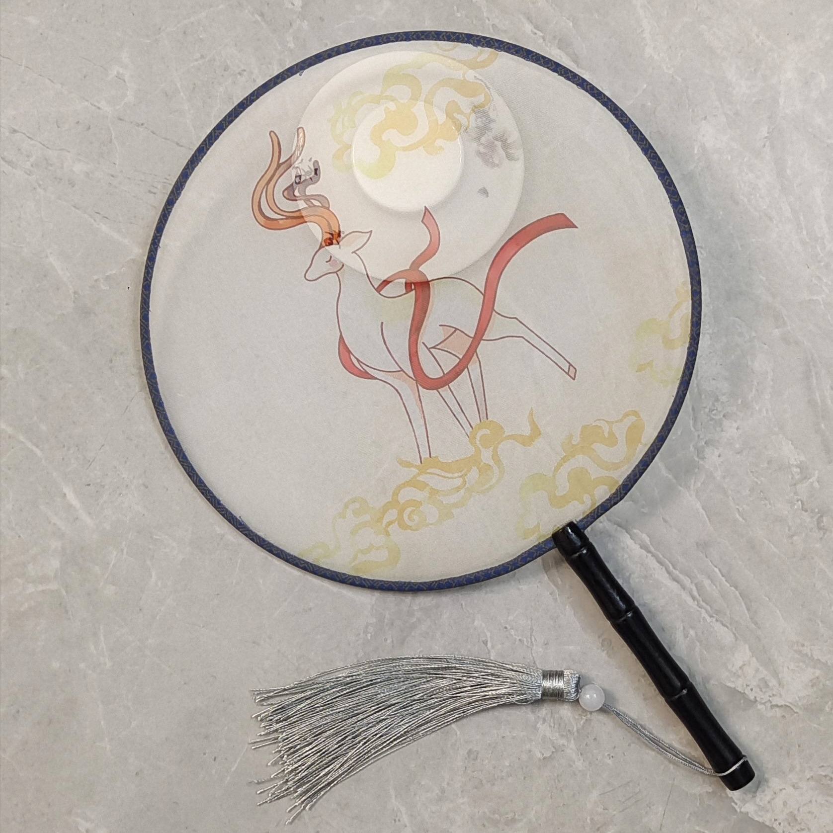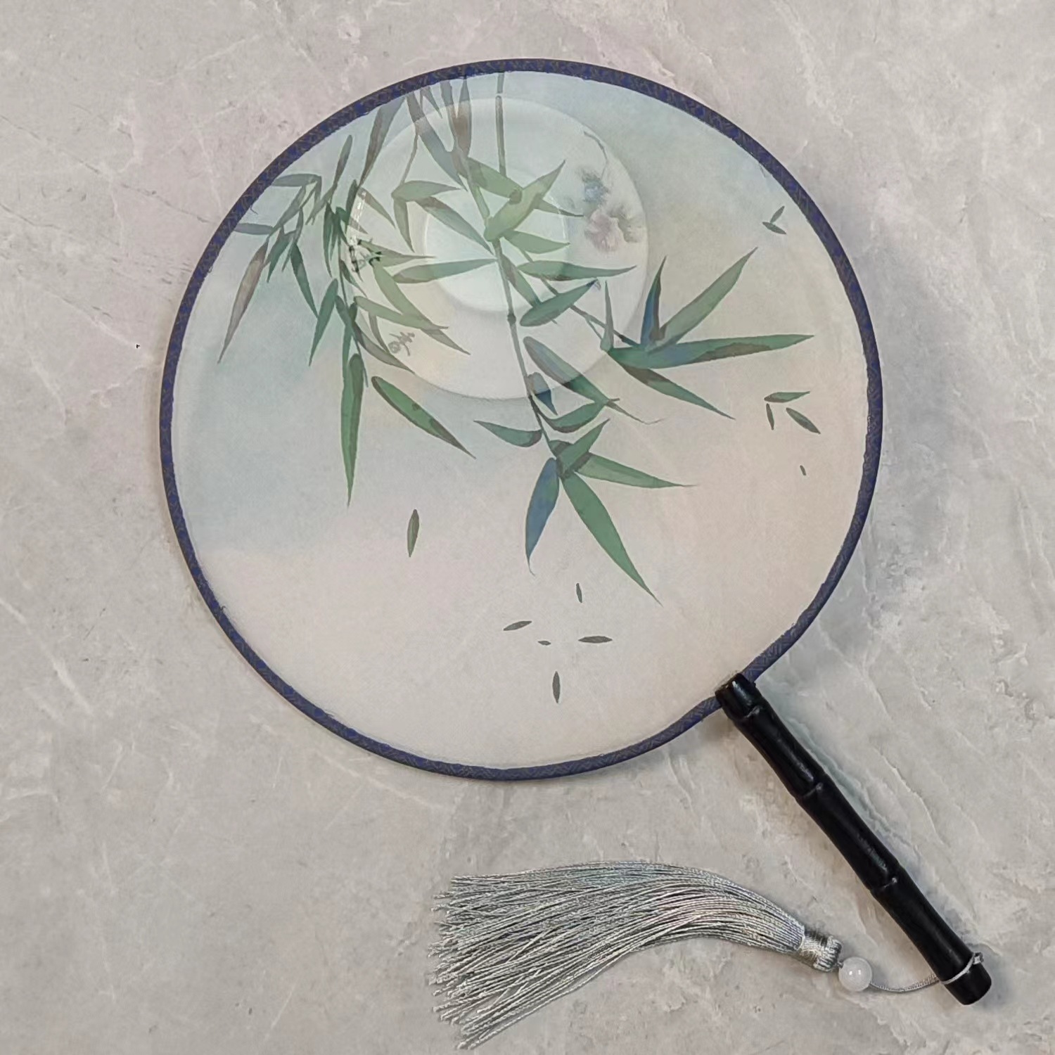 半透明古风团扇竹节柄汉服女式国风扇子中国风舞蹈扇圆形团扇