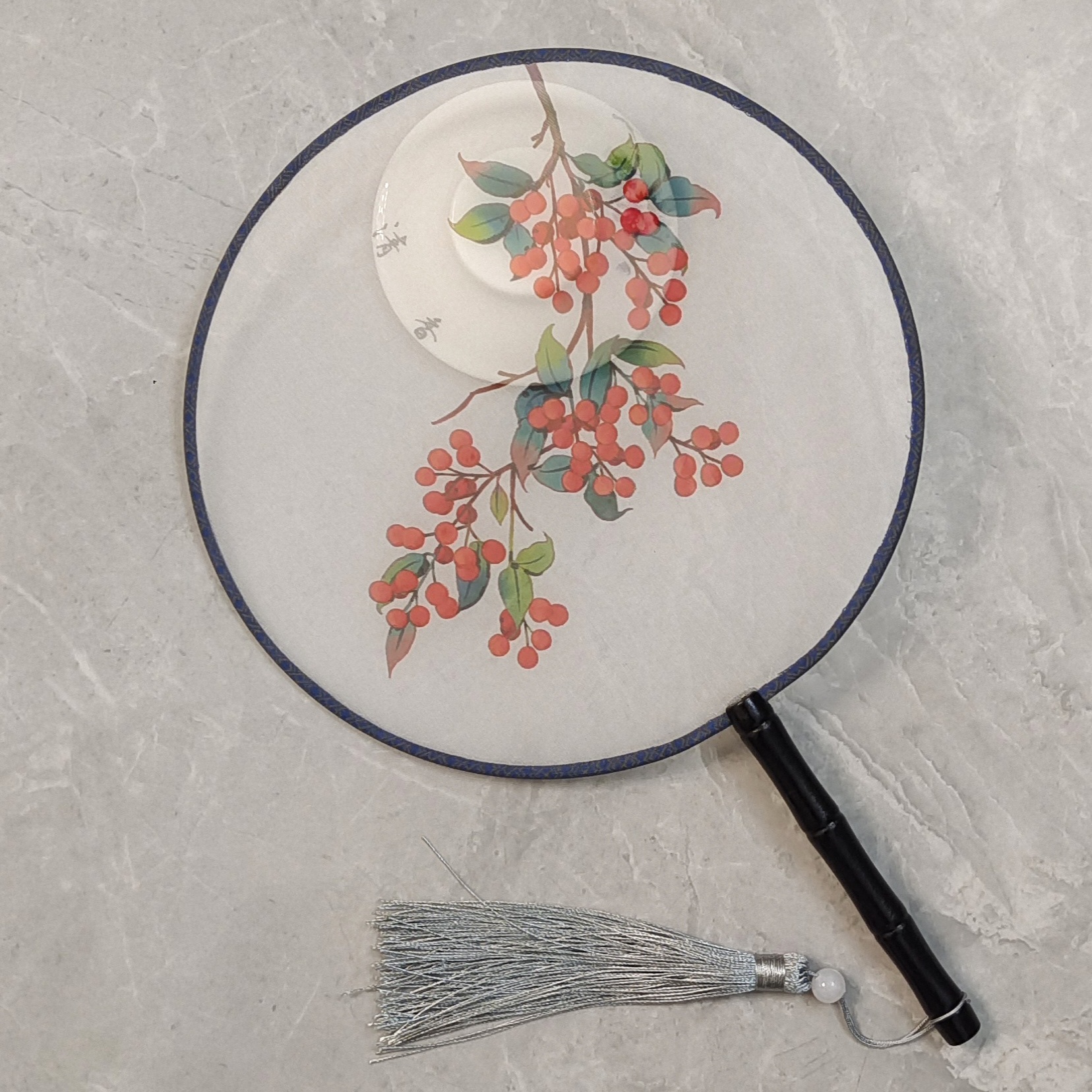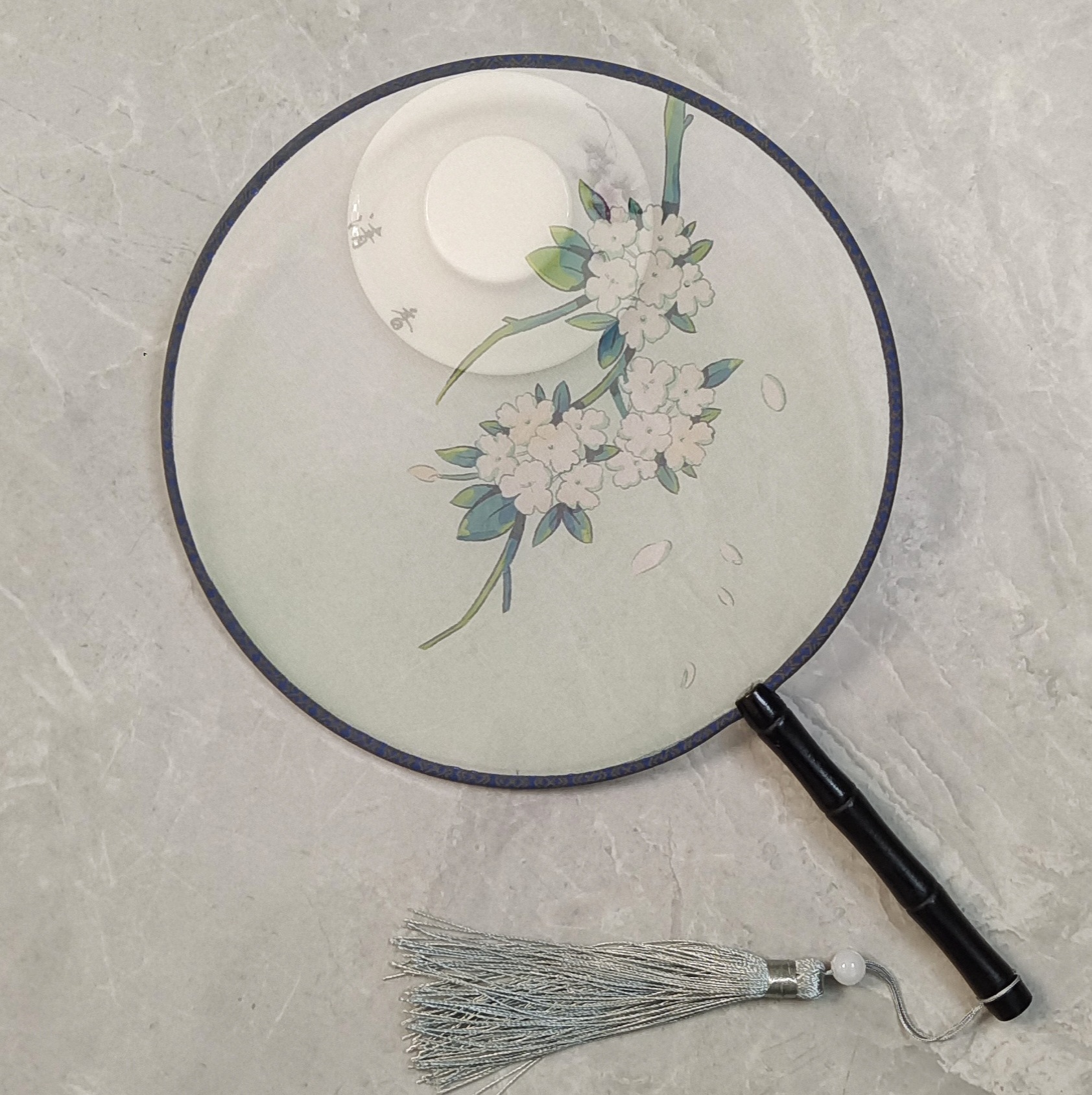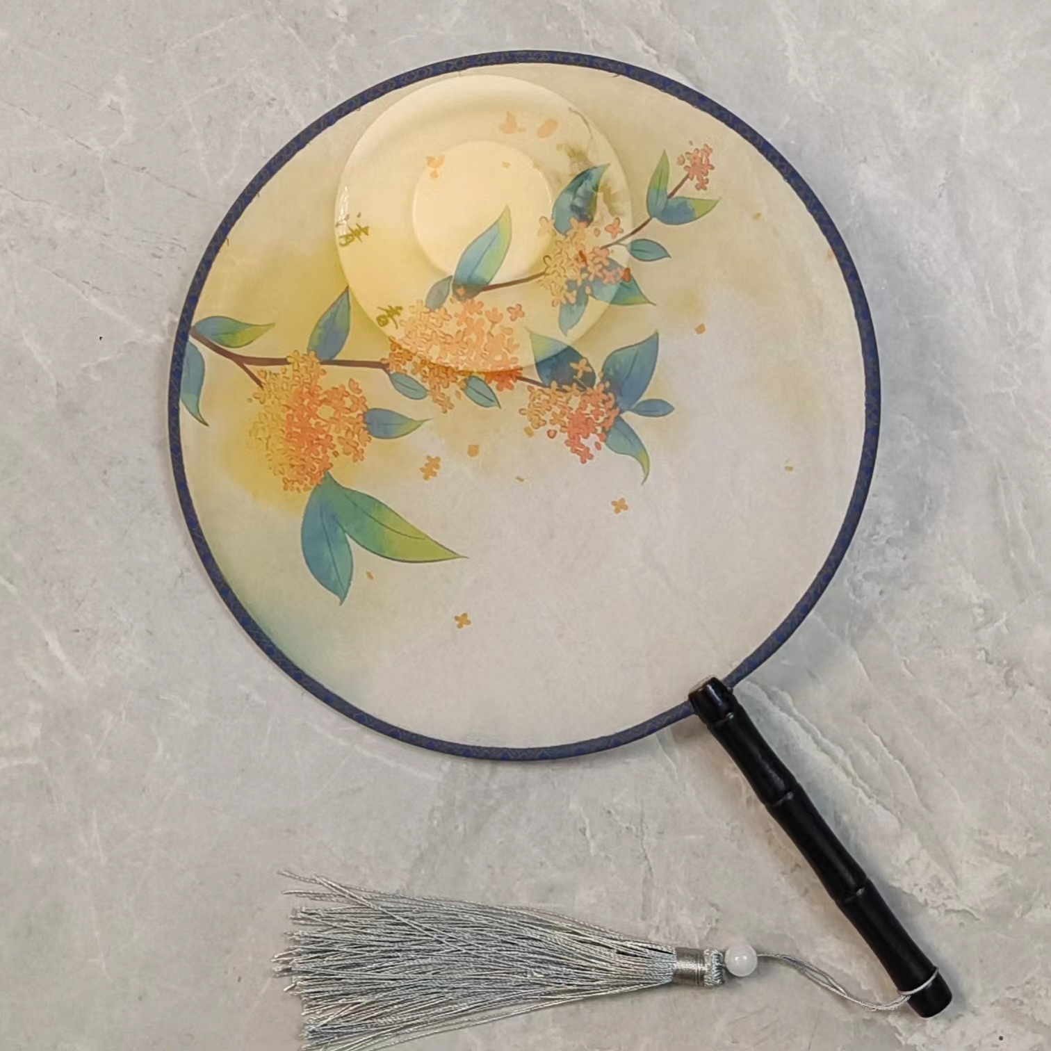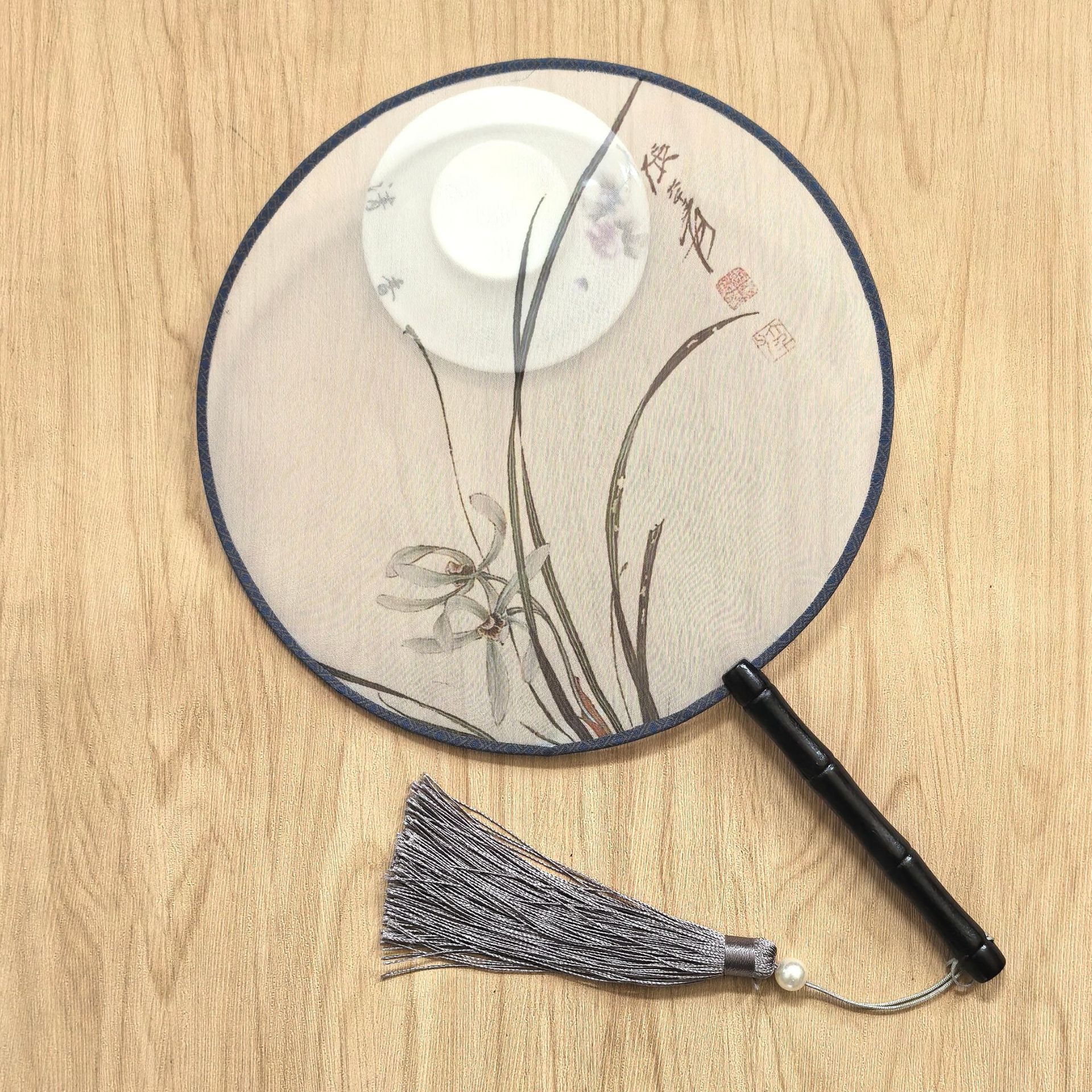 半透明古风团扇竹节柄汉服女式国风扇子中国风舞蹈扇圆形团扇