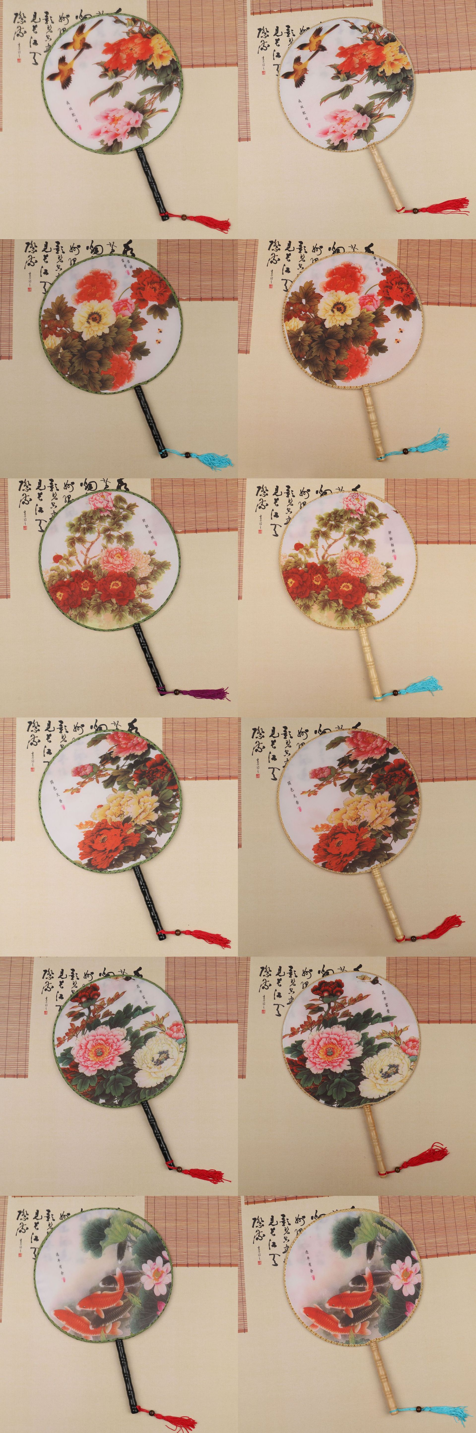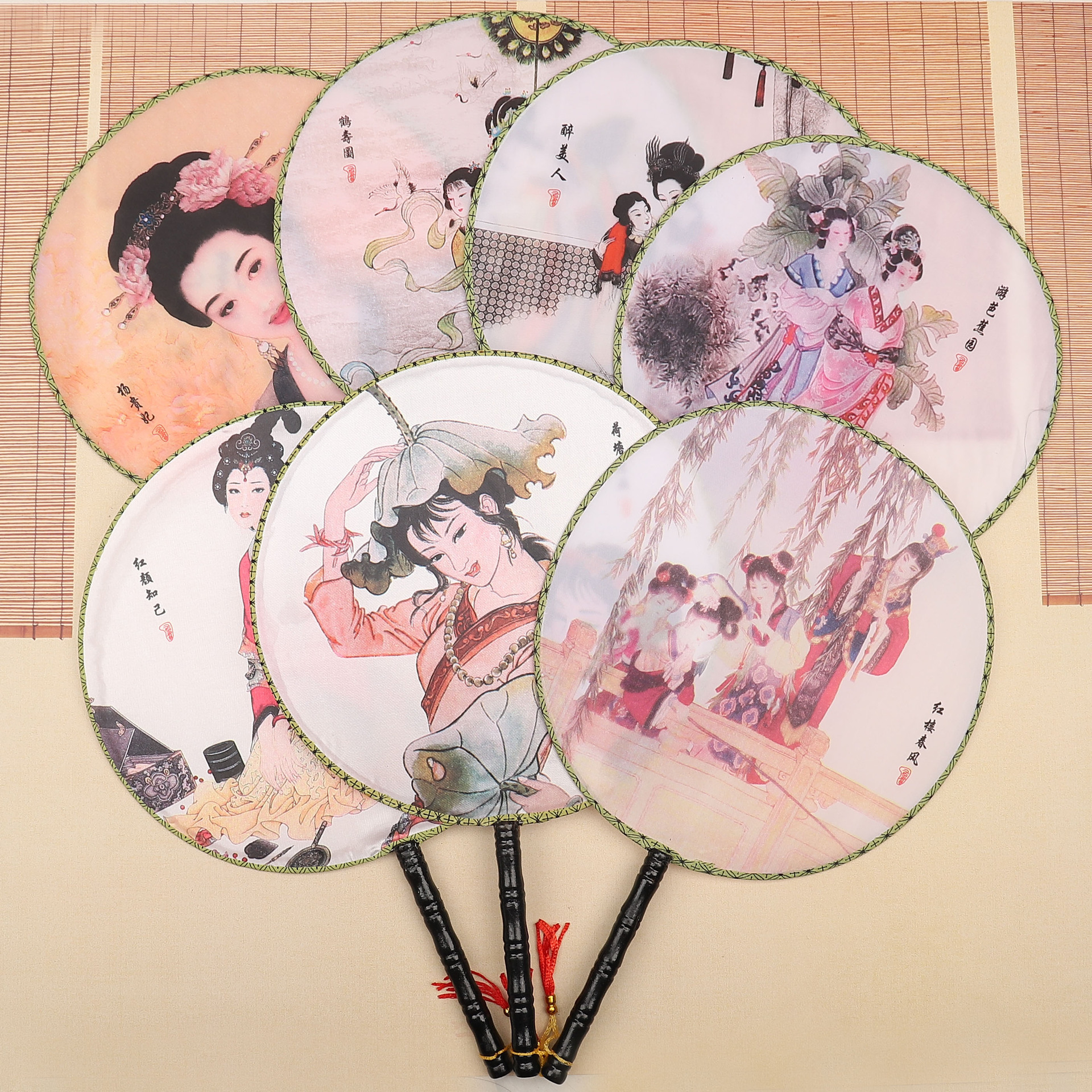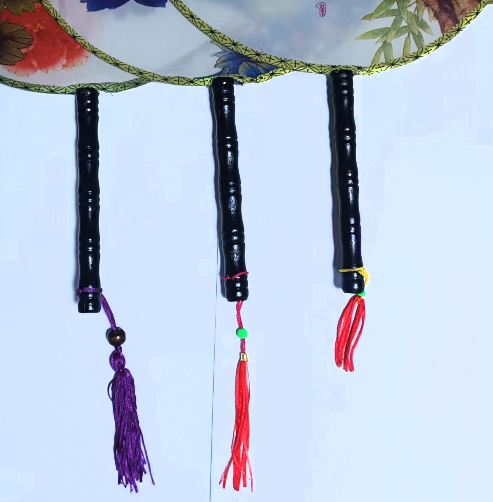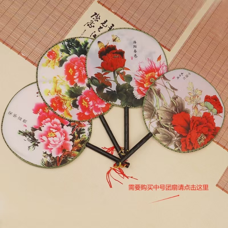 团扇批发 古典圆形印花扇子 古风汉服团扇 古装长柄舞蹈表演宫扇