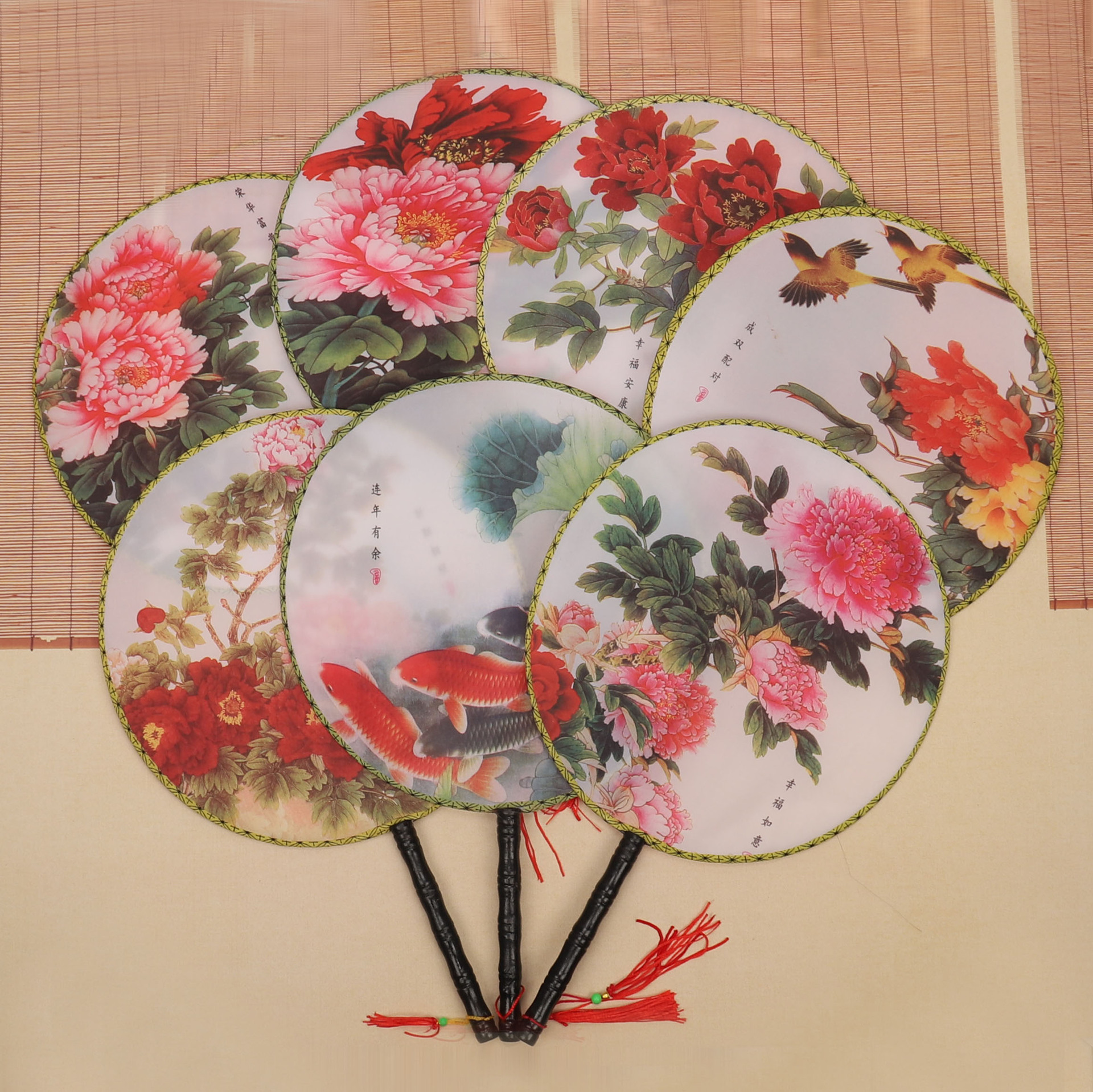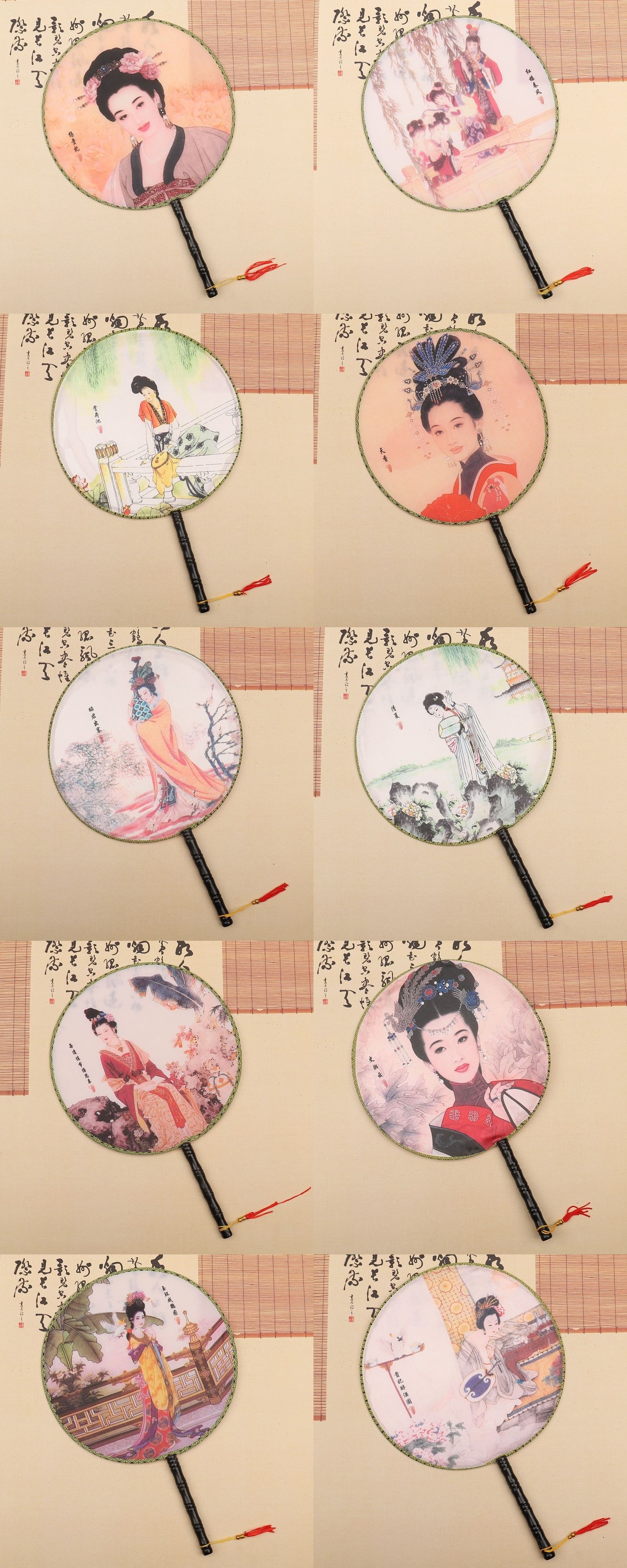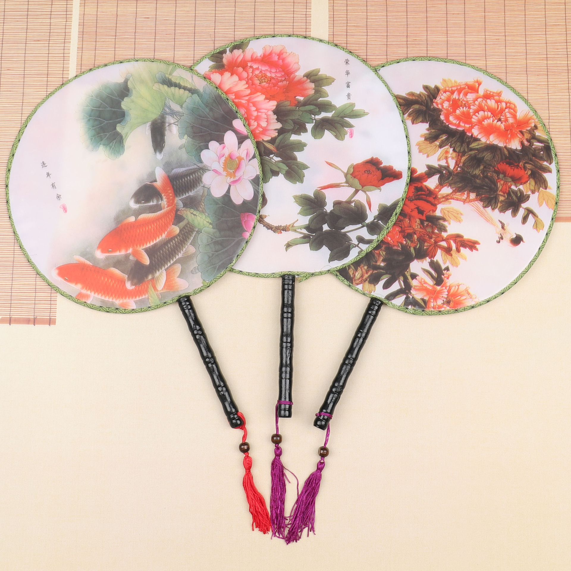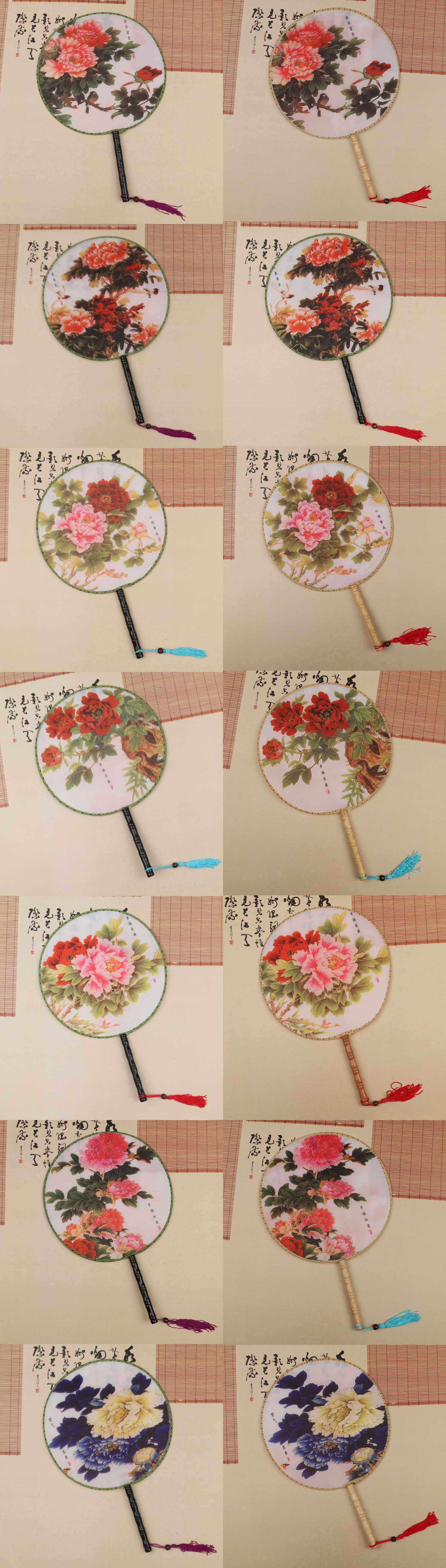团扇批发 古典圆形印花扇子 古风汉服团扇 古装长柄舞蹈表演宫扇