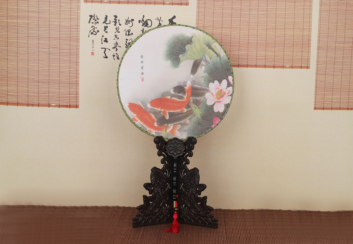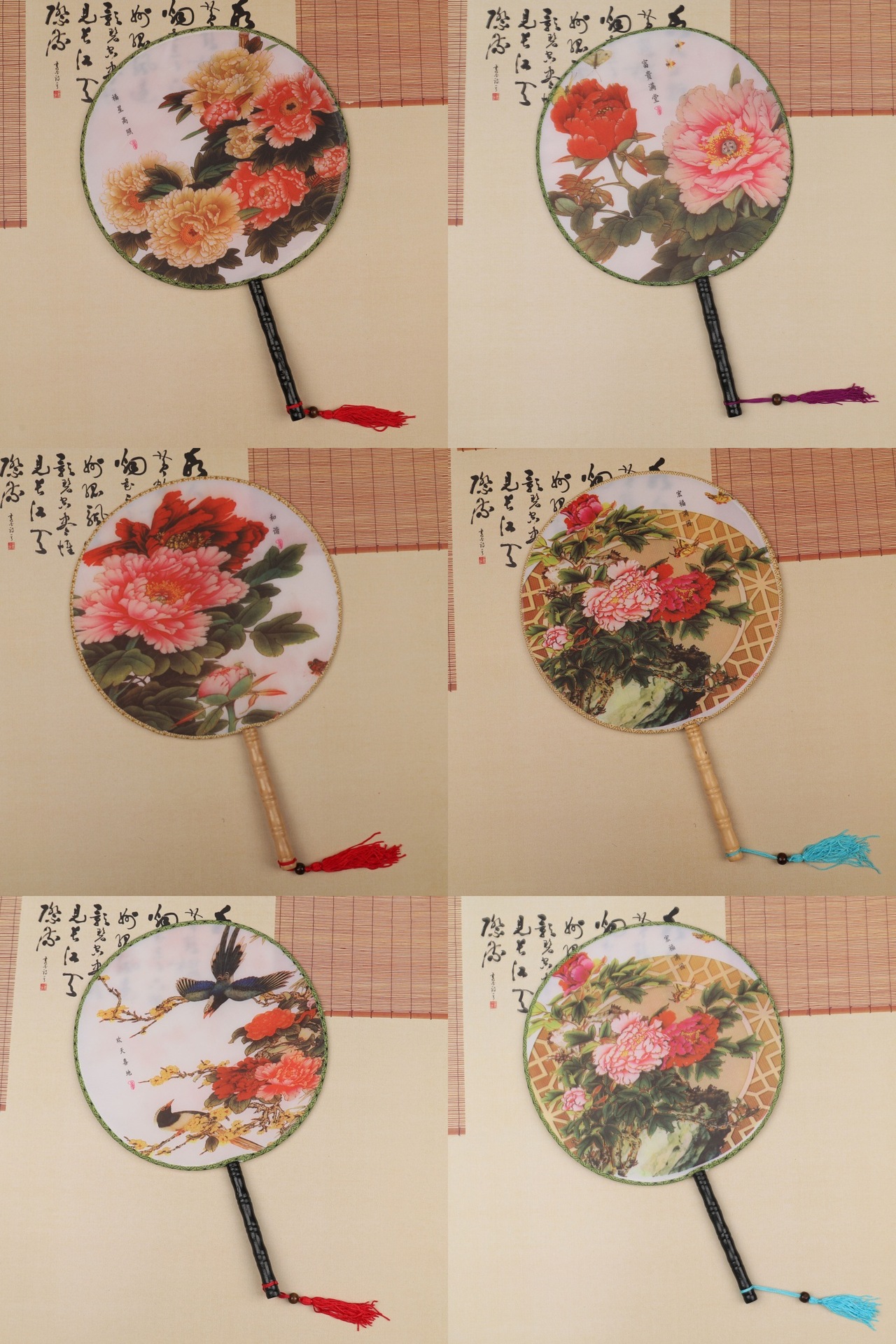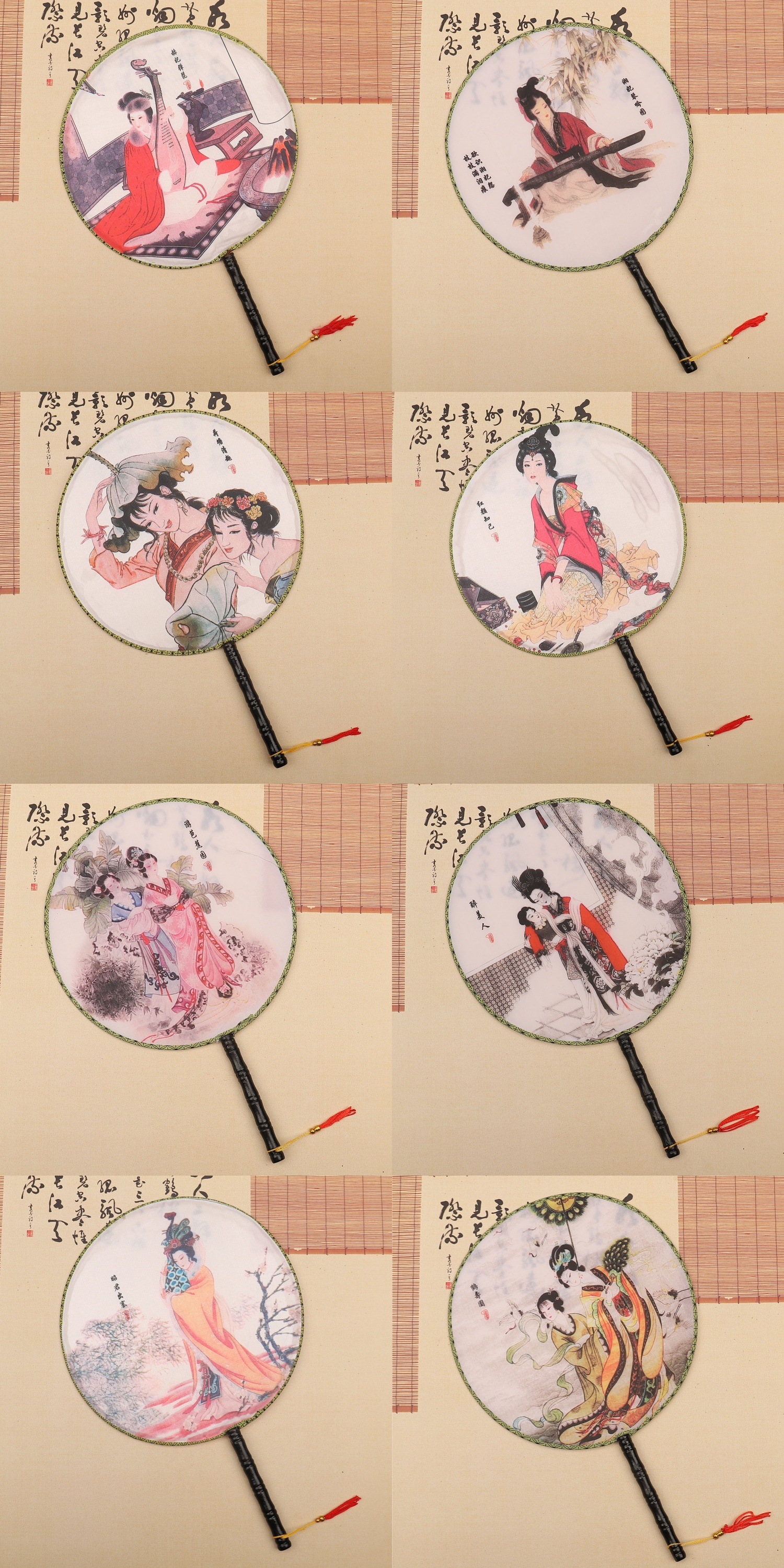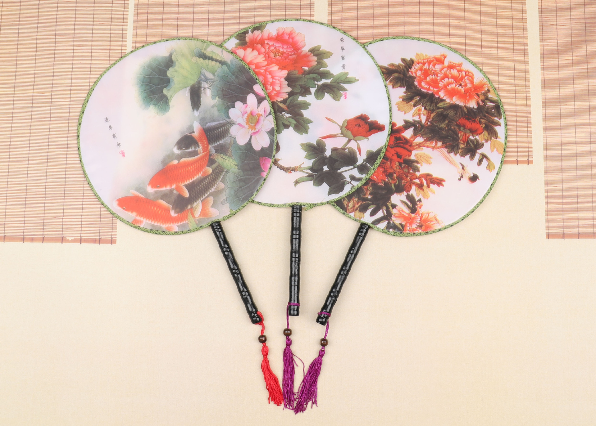 团扇批发 古典圆形印花扇子 古风汉服团扇 古装长柄舞蹈表演宫扇
