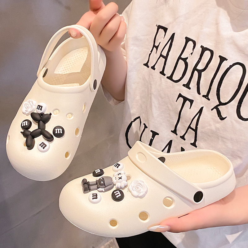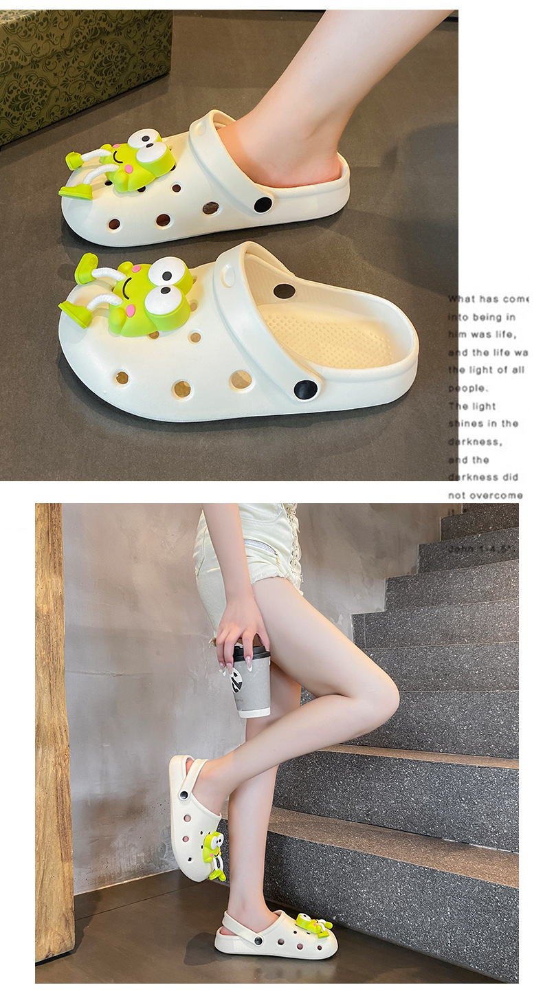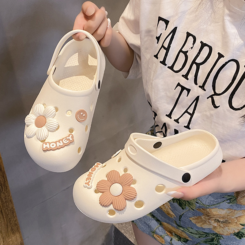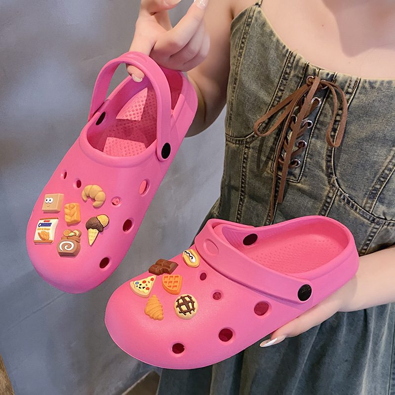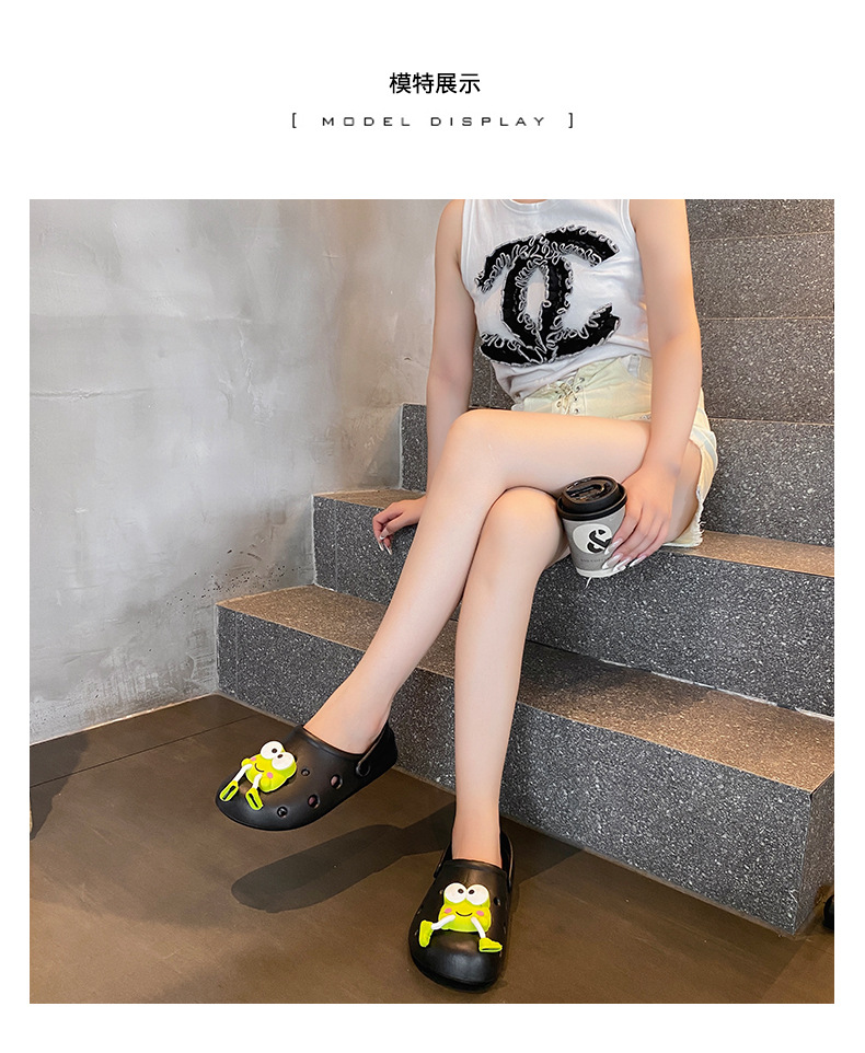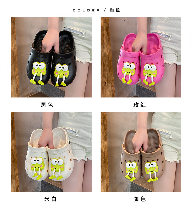 新款洞洞鞋批发女夏季户外穿软底沙滩卡通包头凉拖半拖鞋女款网红