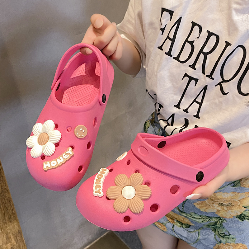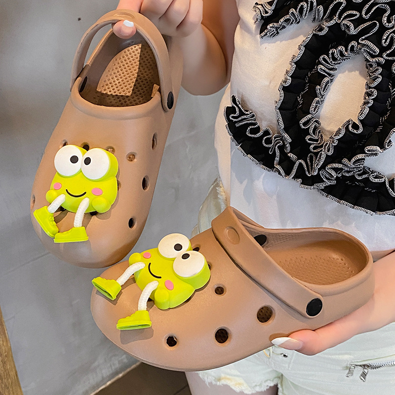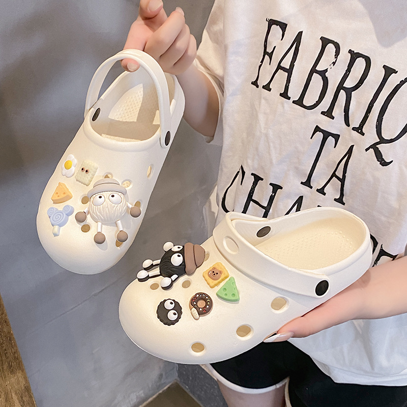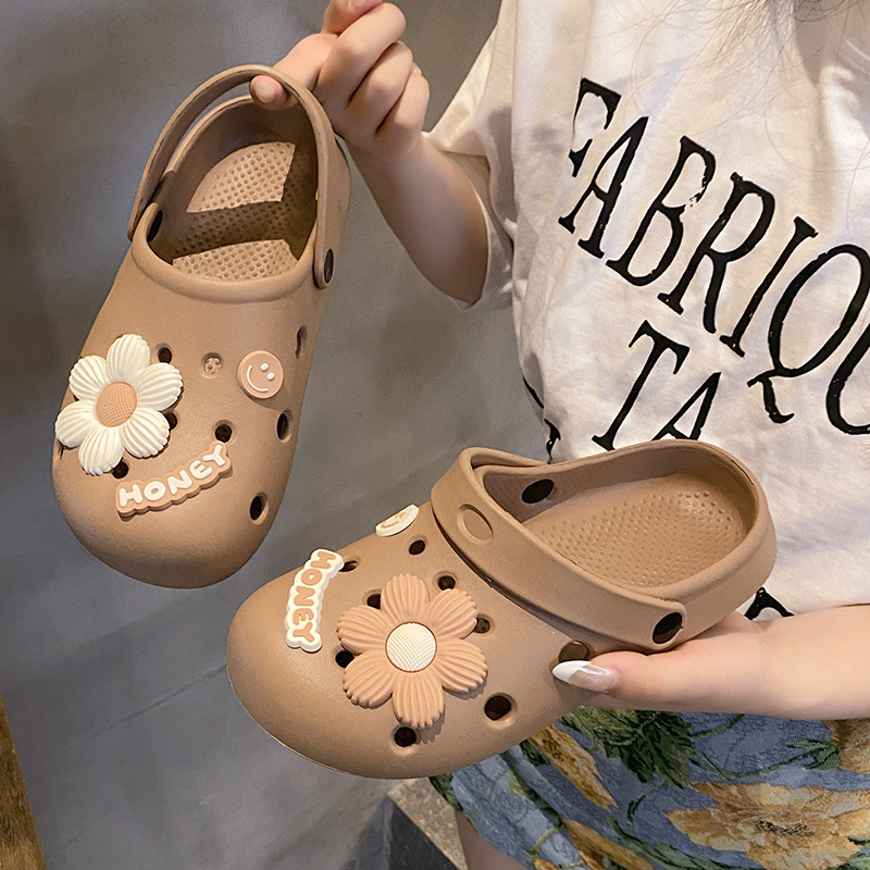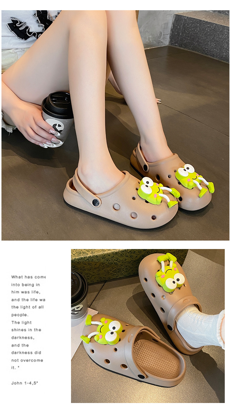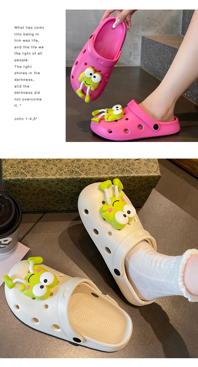 新款洞洞鞋批发女夏季户外穿软底沙滩卡通包头凉拖半拖鞋女款网红