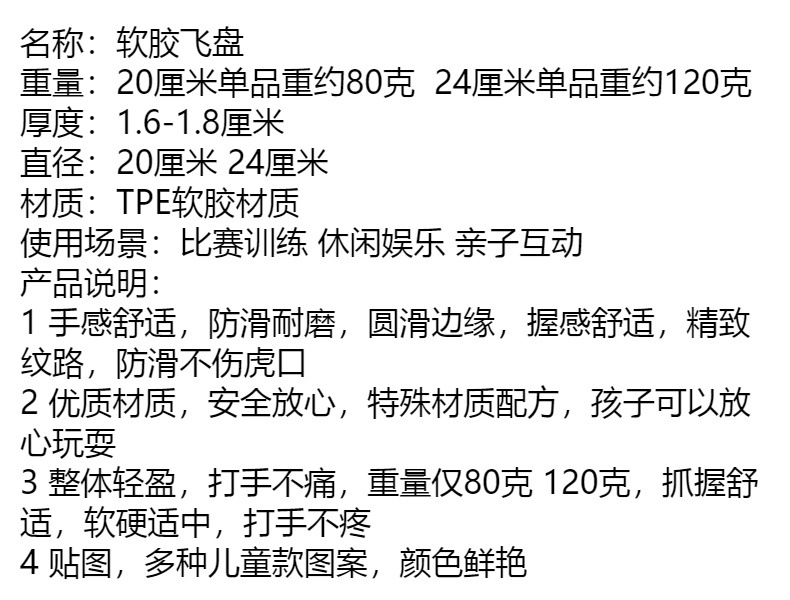 跨境儿童飞盘软胶户外互动亲子回旋手抛卡通飞碟玩具抖音地摊批发