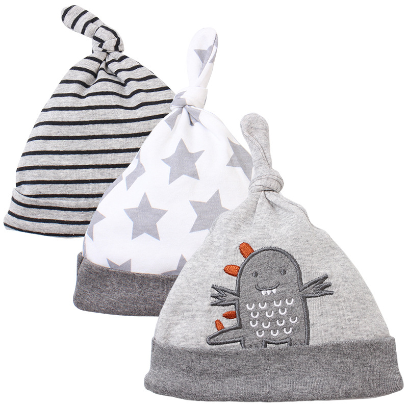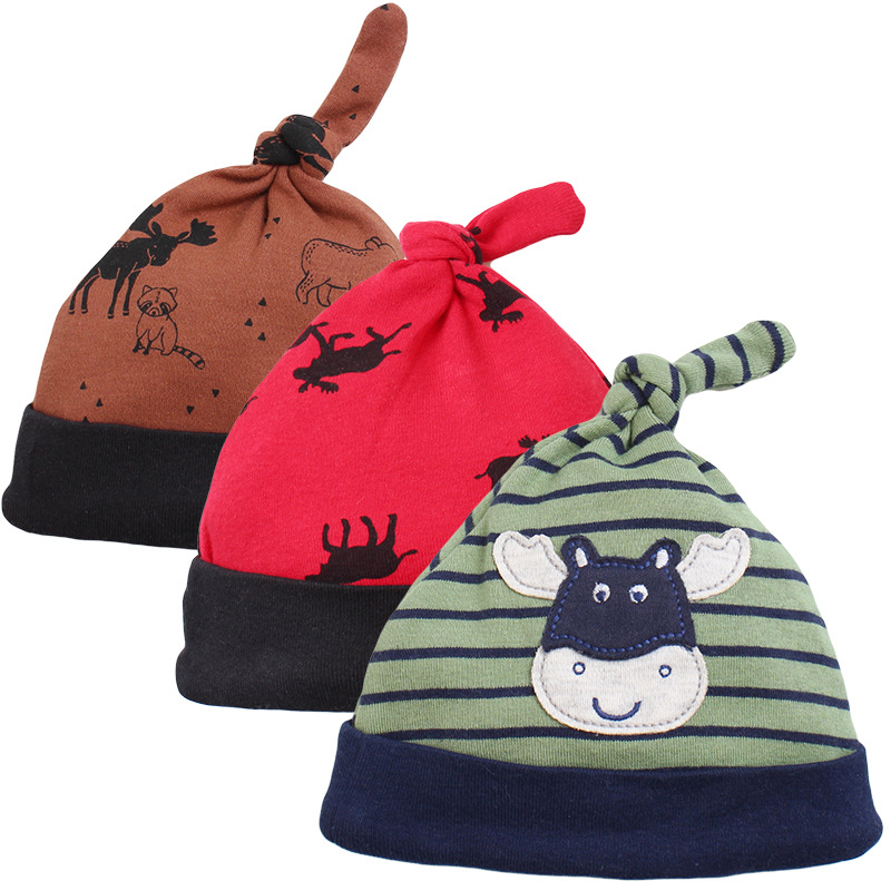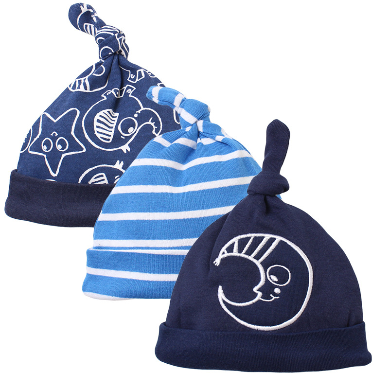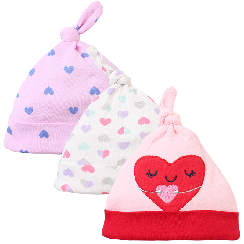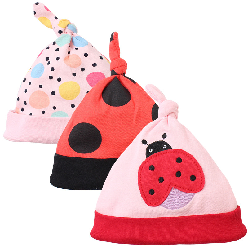三条装精梳棉婴儿啾啾帽胎帽0-6月龄使用宝宝帽子 三条纸卡装