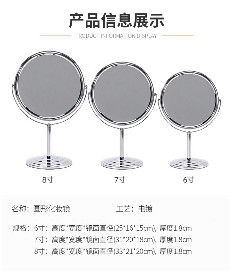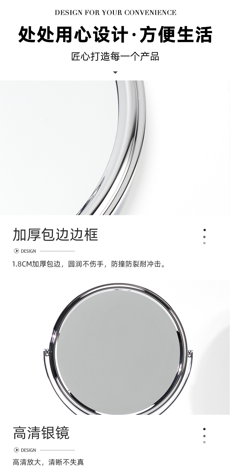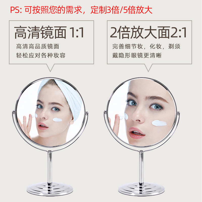 双面高清金属台式化妆镜 酒店浴室自由旋转梳妆镜2倍放大美容镜子