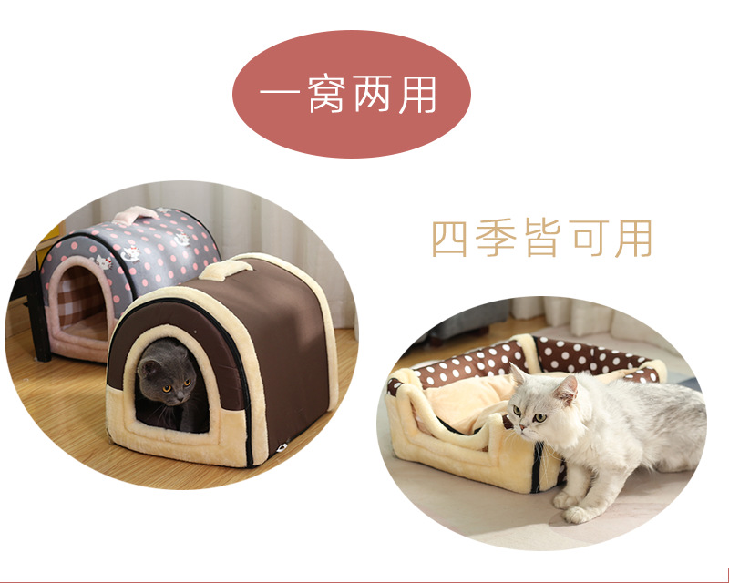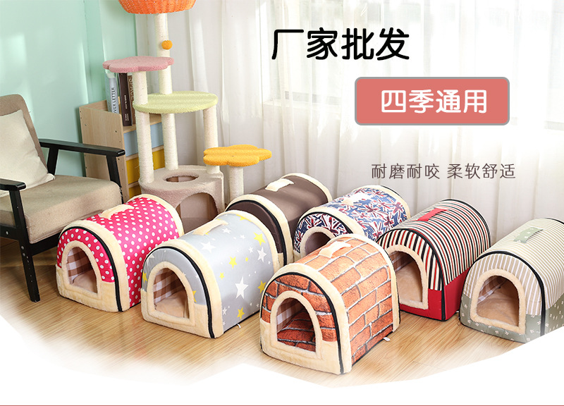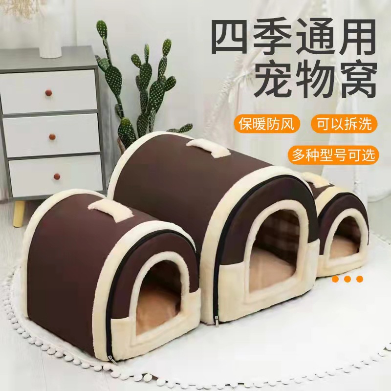 批发秋冬款猫窝狗窝宠物睡窝提手窝四季通用可拆洗宠物床房子狗垫