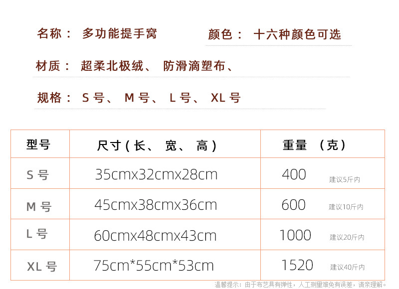 | s number (suitable for within 2.50kg)(S号(适合5斤内)) | USD $3.88 | 9986 piece available |