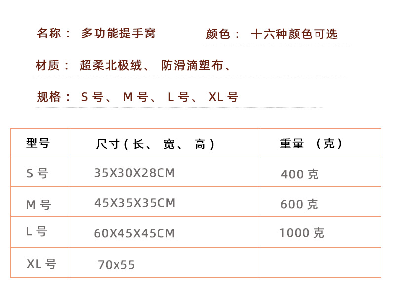 | s number (suitable for within 2.50kg)(S号(适合5斤内)) | USD $3.88 | 9264 piece available |