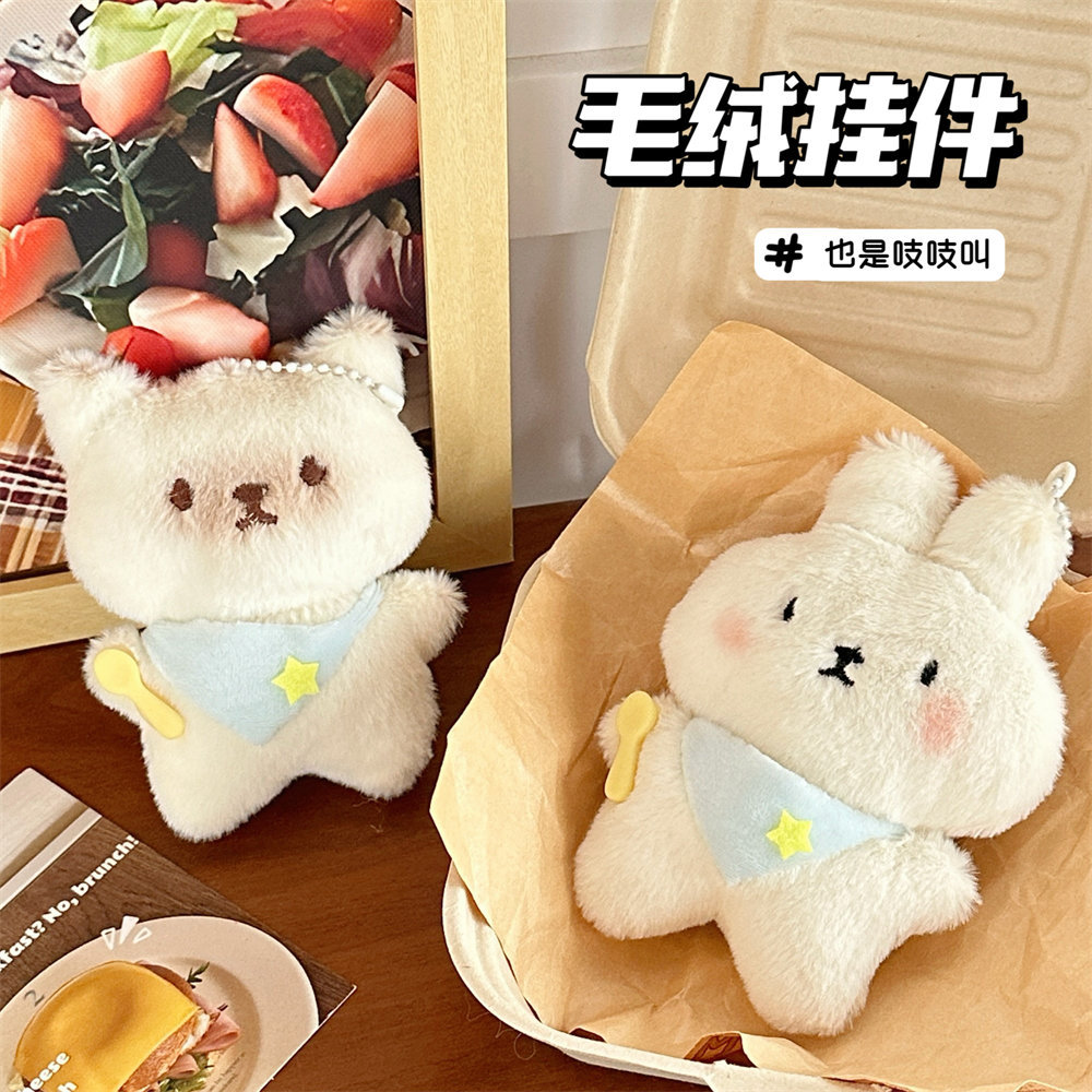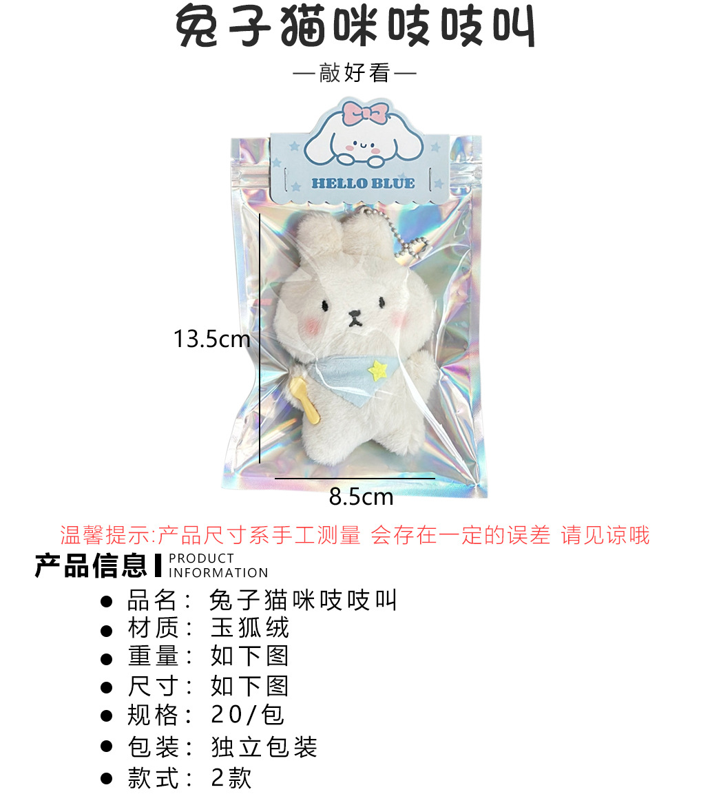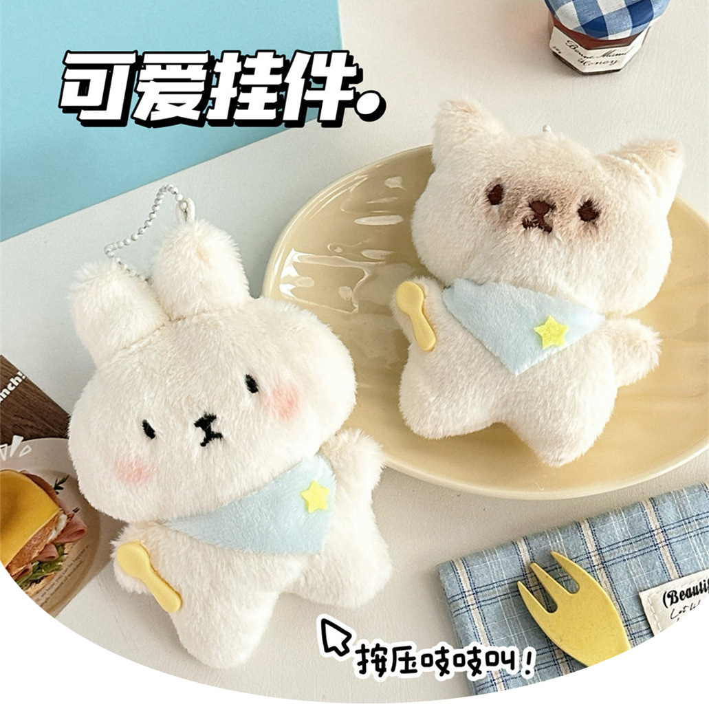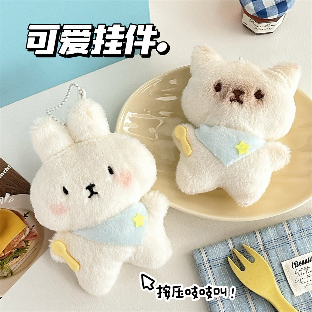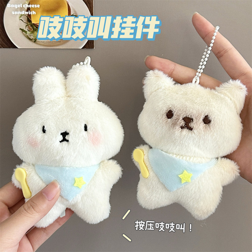 可爱爆款干饭小猫小兔吱吱叫毛绒挂件玩偶钥匙扣挂饰抓娃娃机公仔
