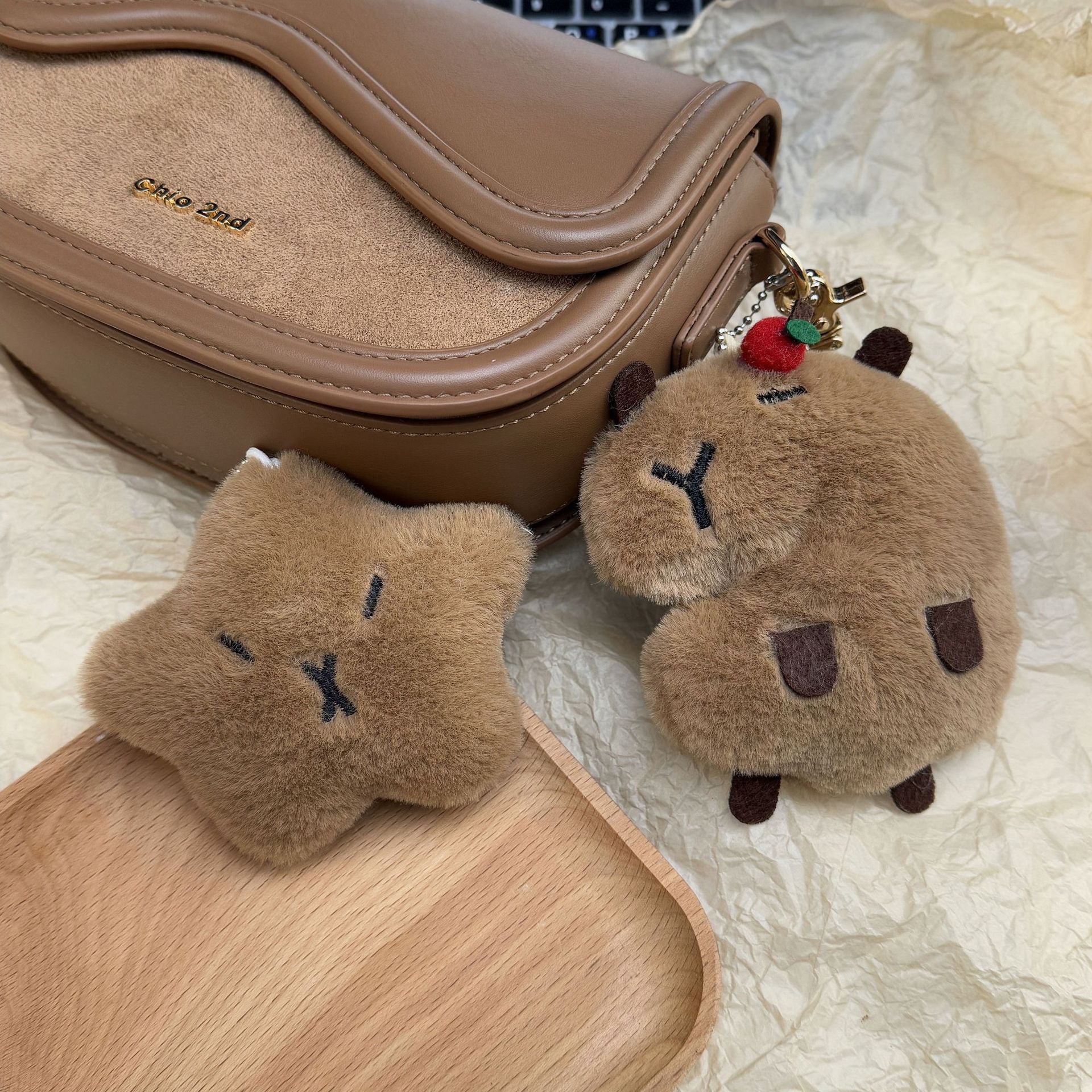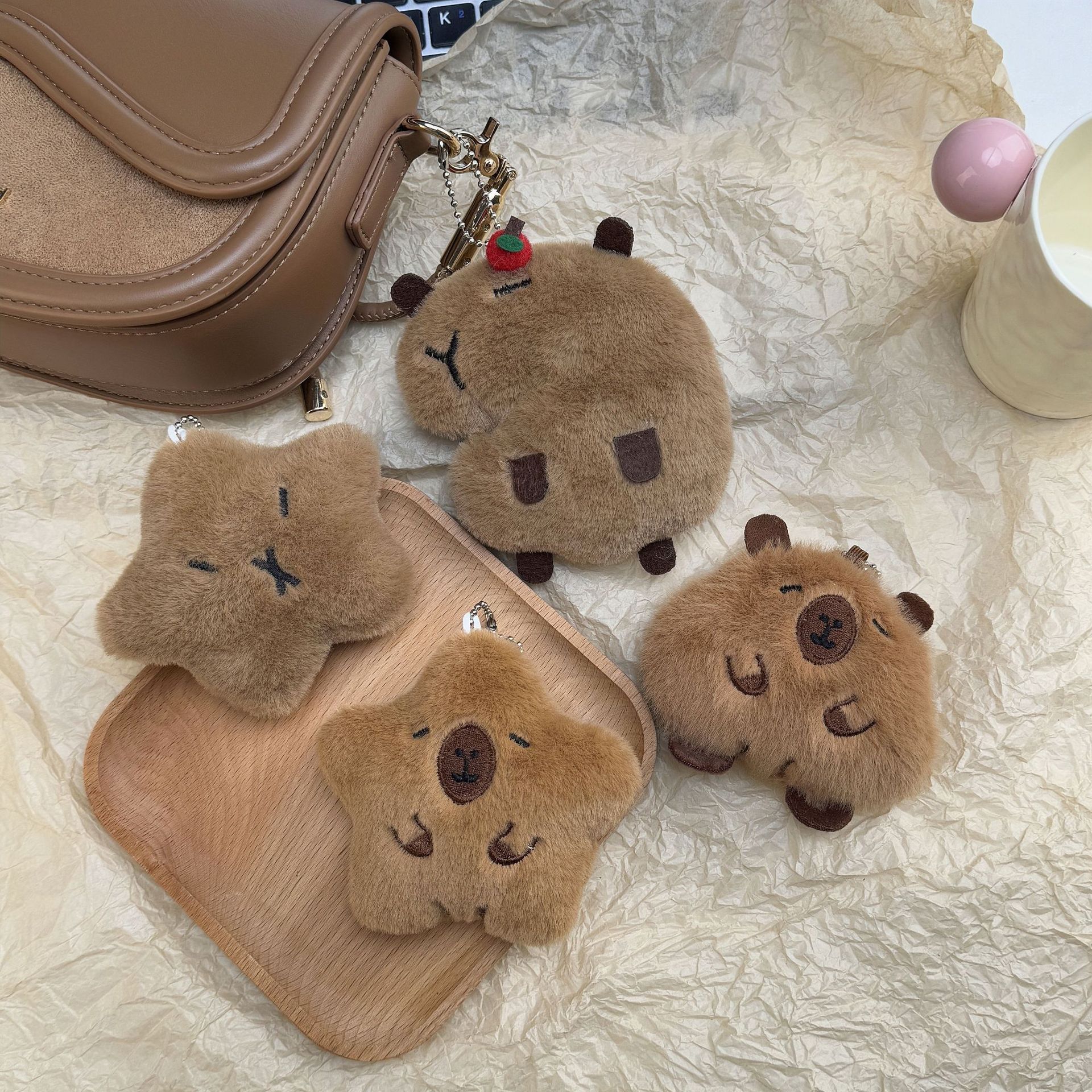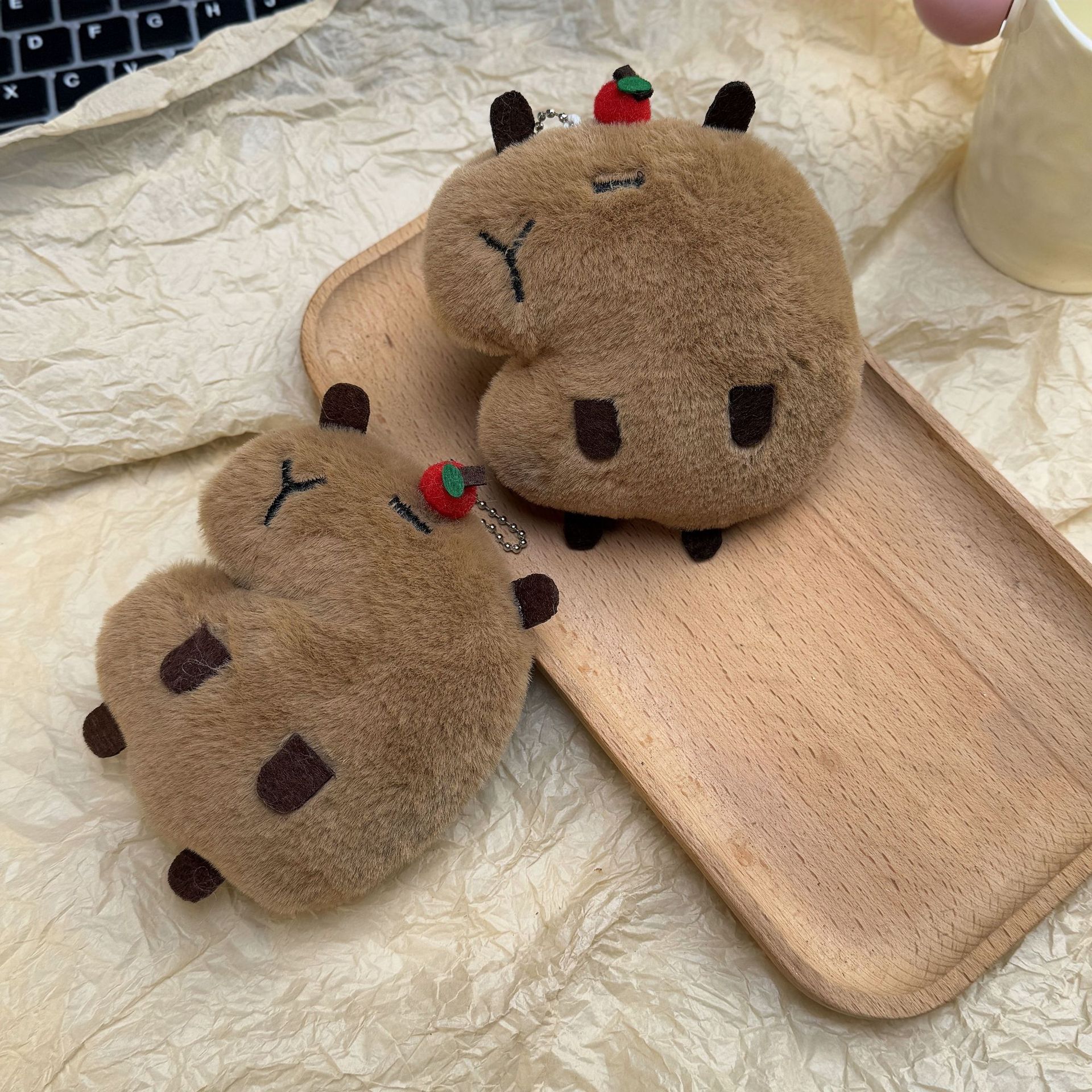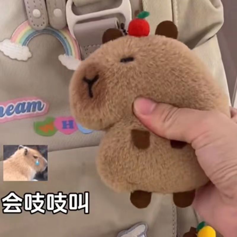 卡皮巴拉毛绒玩偶公仔挂件呆萌豚鼠吱吱叫星星包包钥匙扣挂饰批发