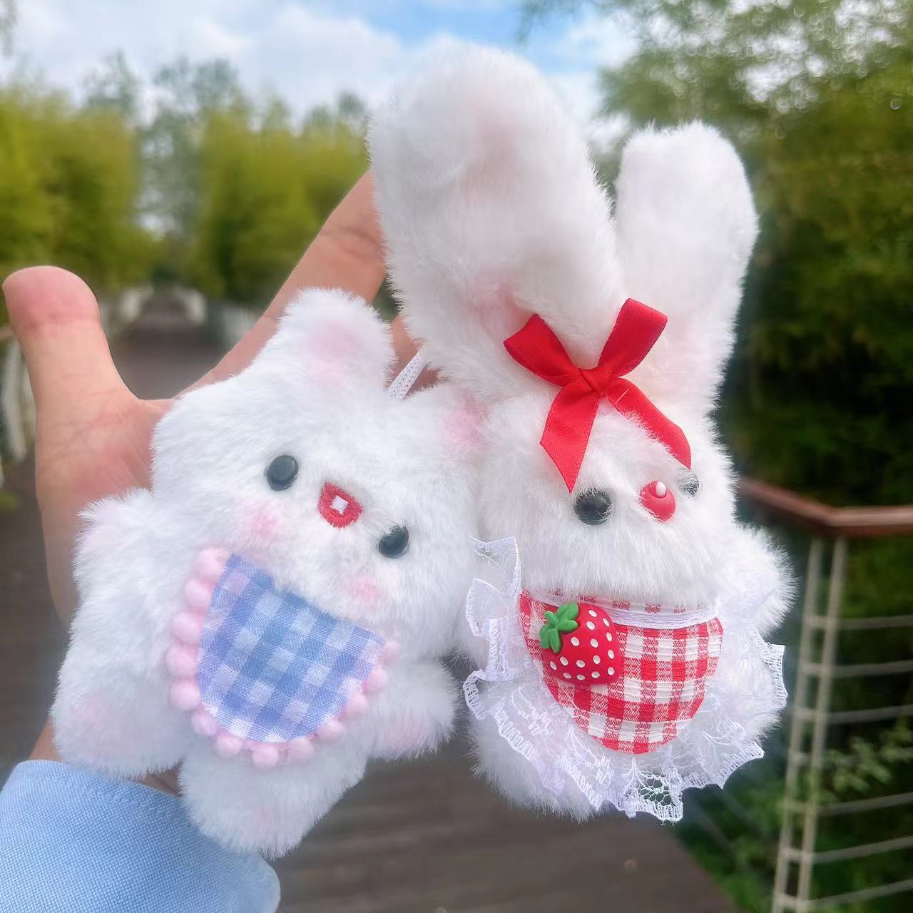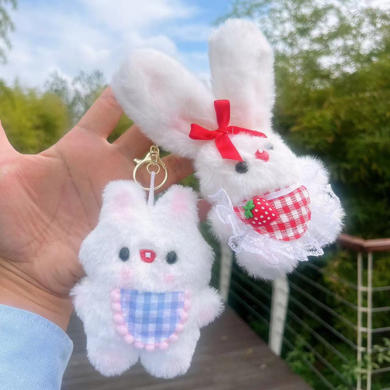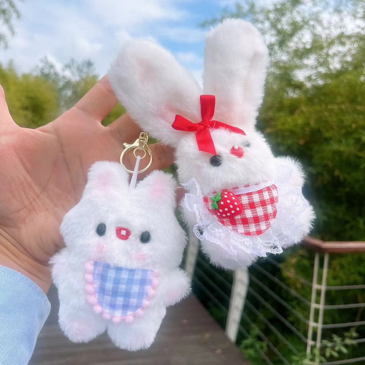 毛绒兜兜兔钥匙扣挂件玩偶可爱缌红围裙小兔毛绒饰品包包吊件玩具