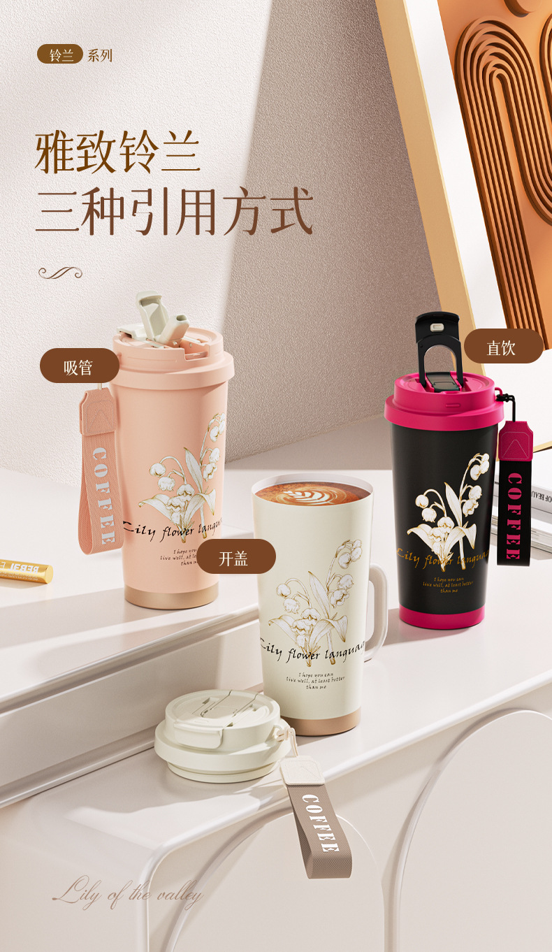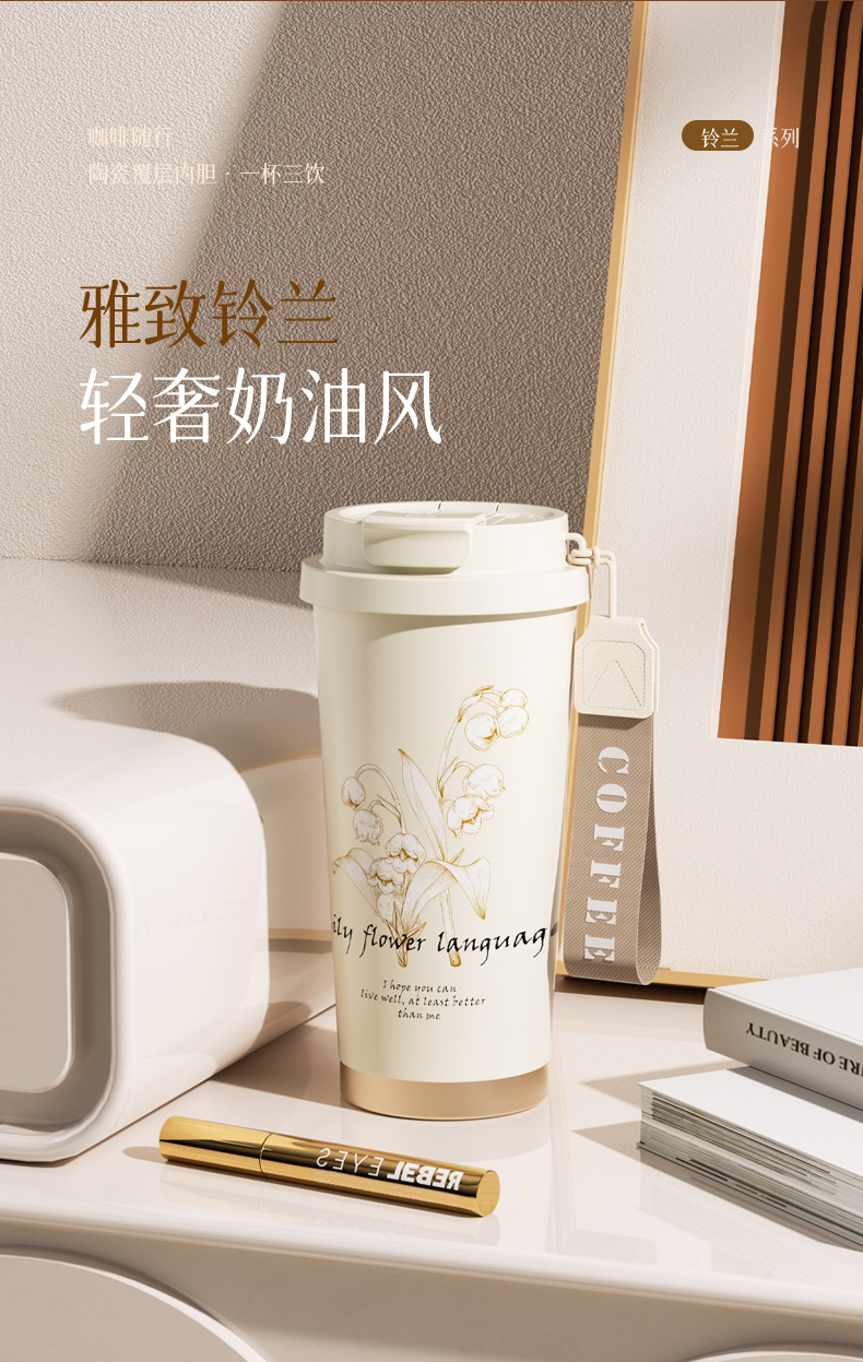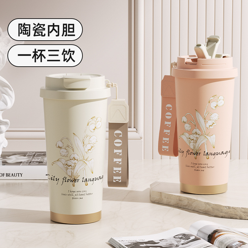 316不锈钢铃兰花保温杯陶瓷内胆咖啡杯家用随手杯车载双饮杯批发