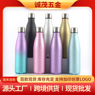 亚马逊车载运动水瓶电镀可乐杯 双层真空保温杯304不锈钢可乐瓶