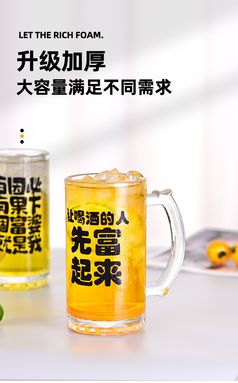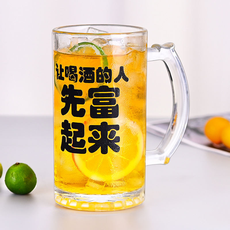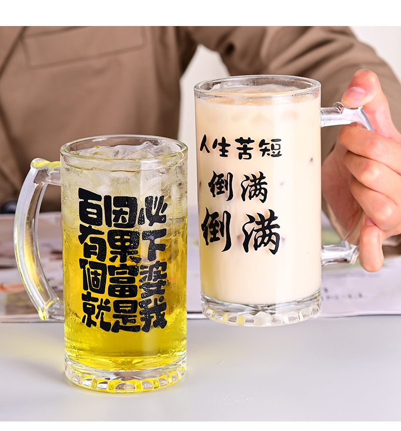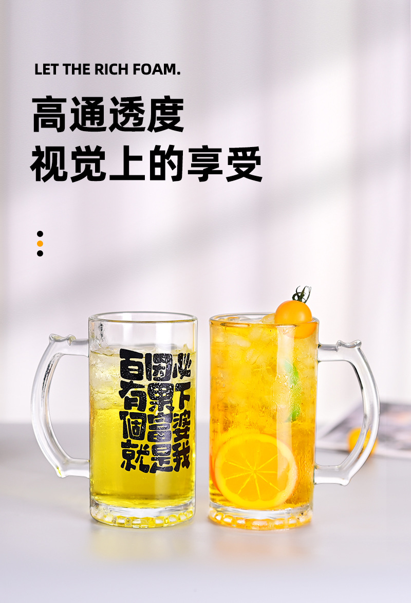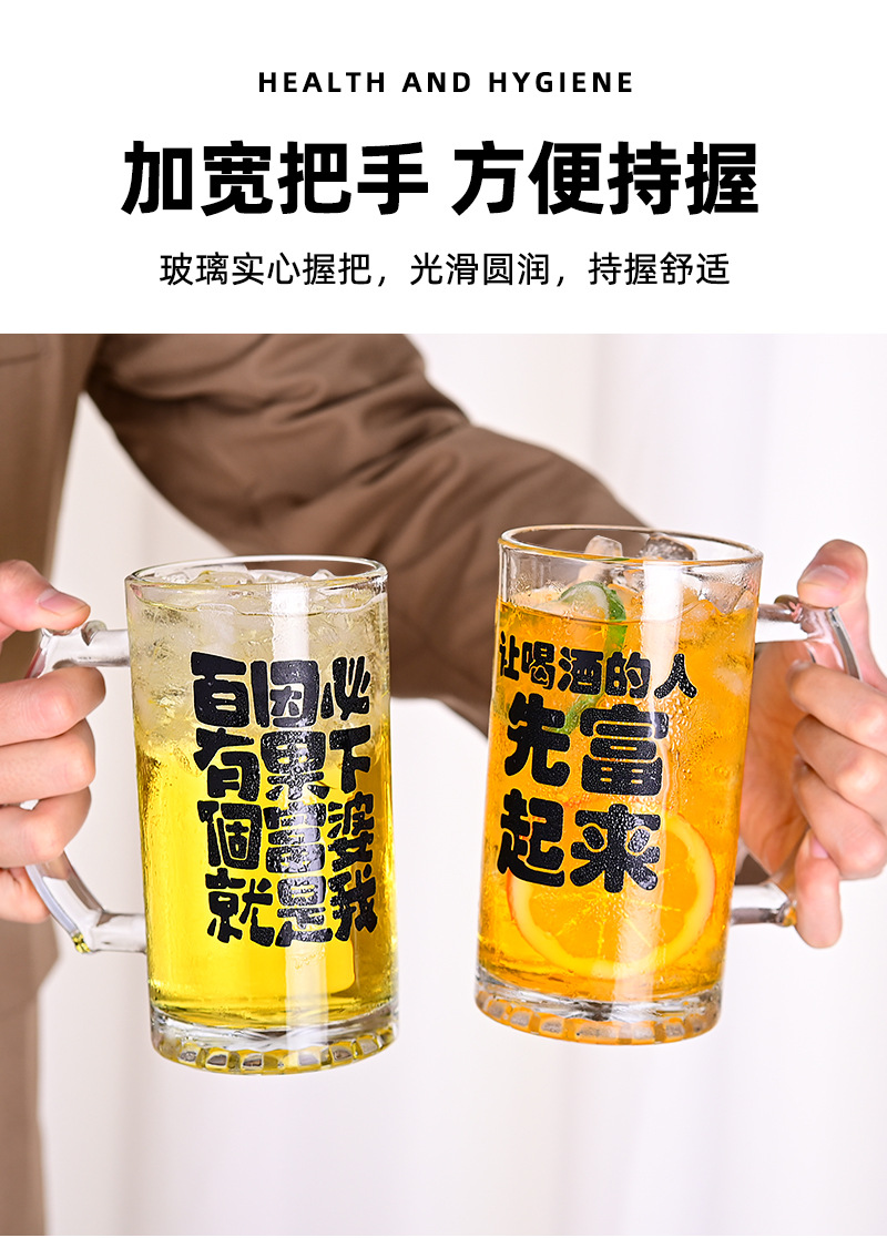 扎啤杯加厚玻璃杯大容量家用玻璃果汁杯礼品批发带把啤酒杯水杯
